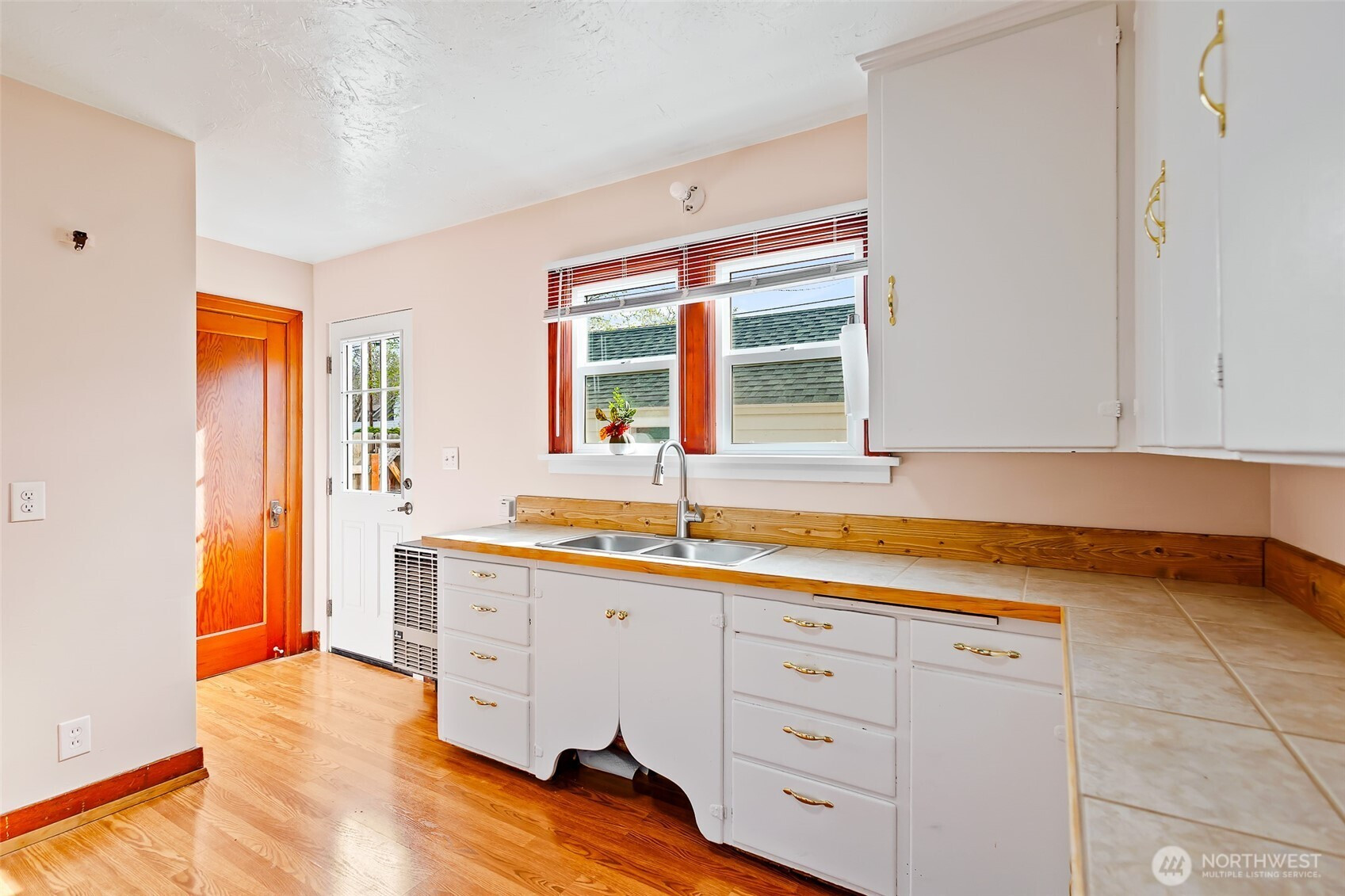 Meticulously kept 1940s home in the heart of Ellensburg! First time on the market in over 30 years, this corner lot property offers exceptional potential. Situated on a large city lot with alley access and detached garage, it provides flexibility for future improvements such as an ADU or larger garage. The detached garage has a 40s style canned fruit cellar and a closet- perfect for additional storage. The garden space is ready for your personal touch. The home features an updated bathroom, updated kitchen counters and sink, new stainless steel appliances, and fresh interior paint. The well-maintained interior reflects pride of ownership throughout. Original 1940s trim and interior doors add timeless character, while the living room, dining room, and primary bedroom showcase original hardwood floors. The exterior was painted in 2023, and the home includes a newer hot water tank for added peace of mind. Ideal for investors or those searching for the perfect starter home, this property is conveniently located near downtown Ellensburg and Central Washington University, offering easy access to local amenities. Close proximity to local schools adds everyday convenience.