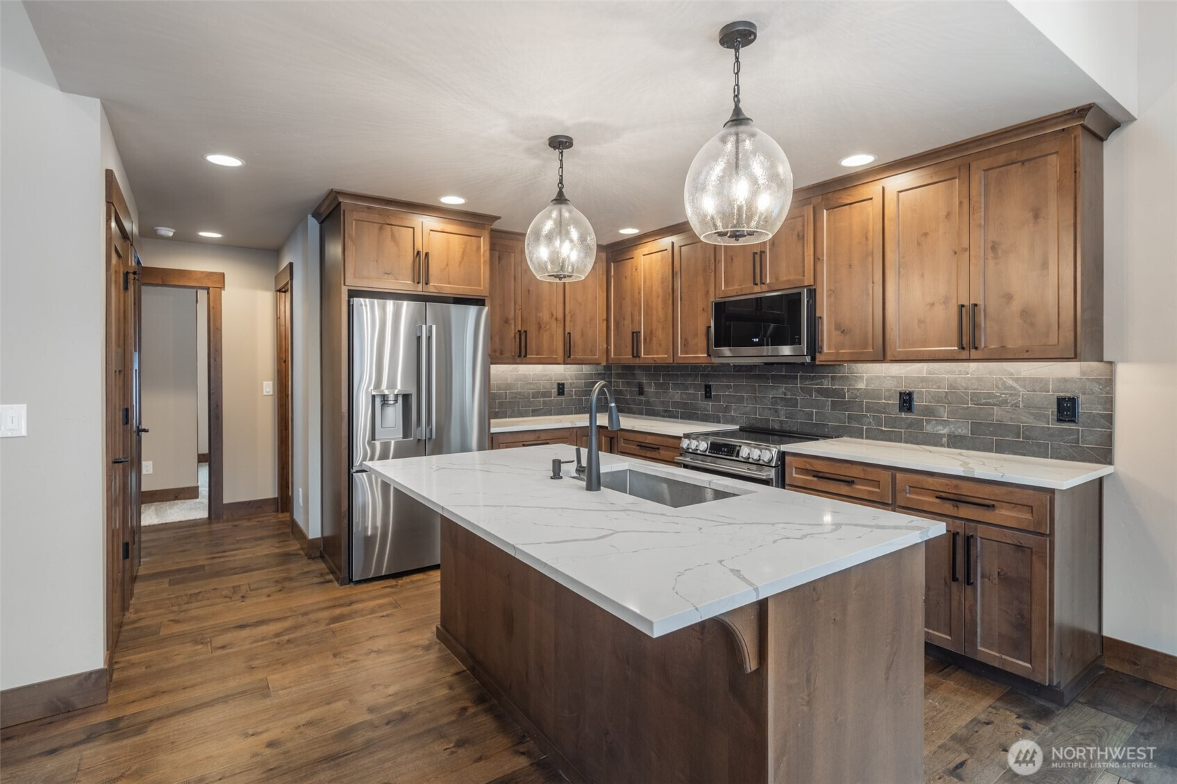 Fantastic location near Lake Cle Elum. This is located in Roslyn Ridge West so you get access to the pool and community center, but it is much more private on a dead end road with other high end homes. Large 1 plus acre lot with room to build a shop! This brand new home offers real hardwood floors, knotty alder trim and cabinets, and all the appliances are included. The great room has soaring vaulted ceilings with lots of windows to let in the natural light or watch it snow in the winter. There is a wood burning fireplace to really get that cabin feel and keep the cabin cozy. The mudroom is extra large and offers tons of storage. Downstairs there are 2 bedrooms and a full bath and upstairs is where the master is located with a walk in closet and beautiful master bathroom with backlit mirrors and a custom vanity. There is also a loft upstairs built for extra sleeping or a 2nd living room. The covered back deck is huge and a great place to entertain or just take in nature. This is a must see!