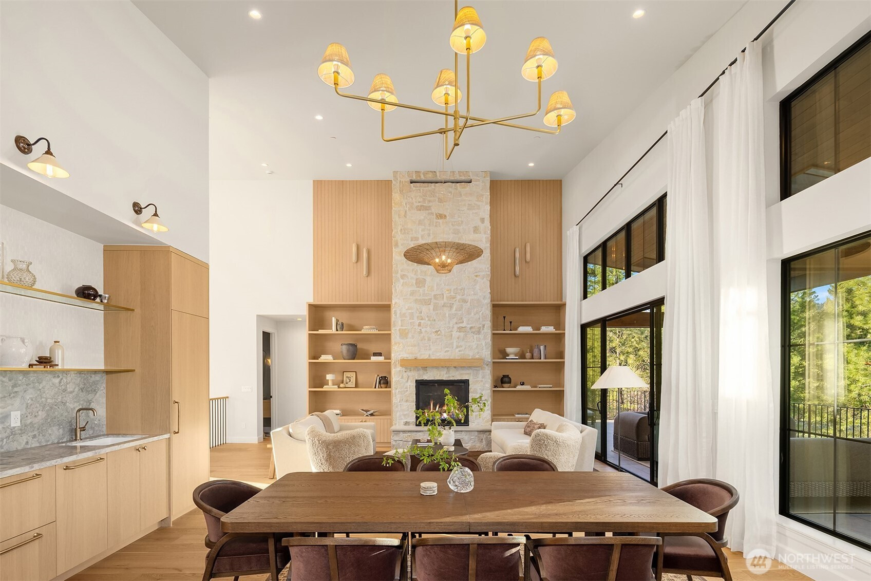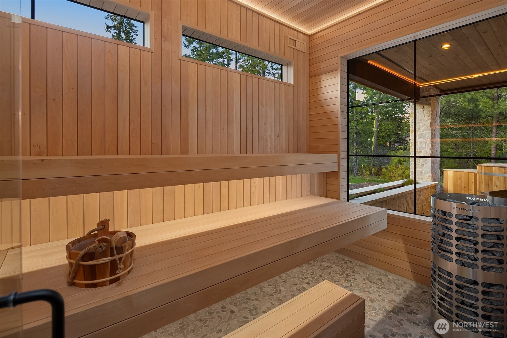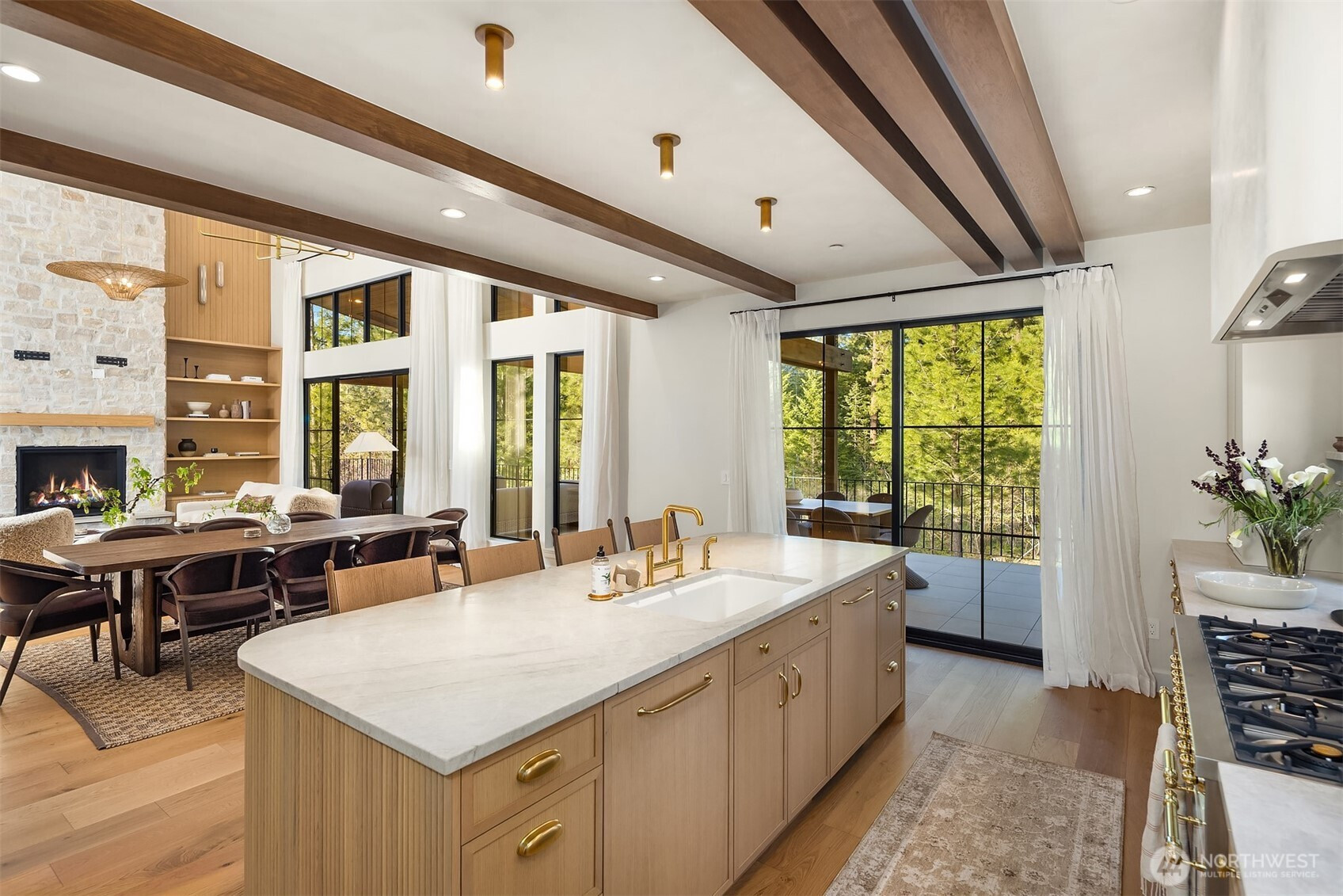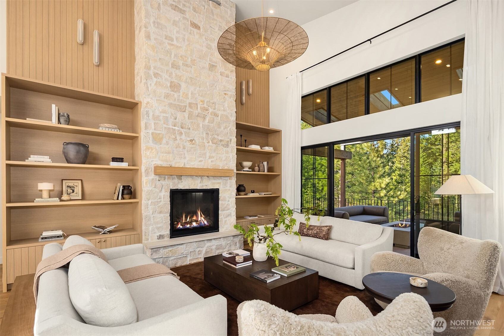 Evoking warmth and refinement through out, this builder’s own 6 bed/6 bath home is a masterpiece that delivers resort spa luxury on your own terms. The cedar-and-stone exterior glows at dusk against a backdrop of the pine trees and sweeping Cascade peaks. Step inside to soaring great room ceilings anchored by the floor-to-ceiling stacked stone fireplace flanked by white oak built-ins + sculptural brass lighting. The chef’s kitchen is a study in considered luxury — custom cabinetry, quartzite slab stone, pot filler, professional range, and a fluted island, all crowned by a custom plaster-finished vent hood that makes clear no detail was an afterthought. The dining room opens through arched passages, with a built-in bar w/wine fridge and custom cabinetry. A lower-level wet bar clad entirely in dramatic black marble — framed by a custom arched surround — sets the tone for serious entertaining. The primary is a true sanctuary of relaxation. Enjoy the cedar Finnish sauna with pebble stone floors, forest-facing glass, gym. Find the hidden office, lounge in the theatre room & more. Step outside to a fire pit lounge, level backyard, a covered deck, hot tub, & easy access to trails. Post Hotel vibes through and through. Walk to the owners-only pool & café, Nelson Farms, and community parks. Every finish detail here was chosen with intention. Every space earns its place. A rare Suncadia offering for the buyer who simply won’t settle. Turn key opportunity, furnishing may convey.