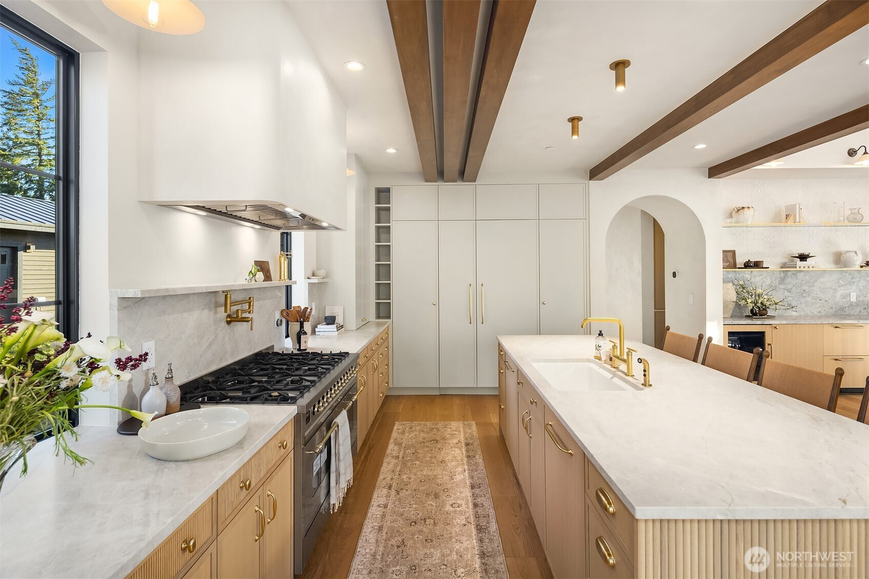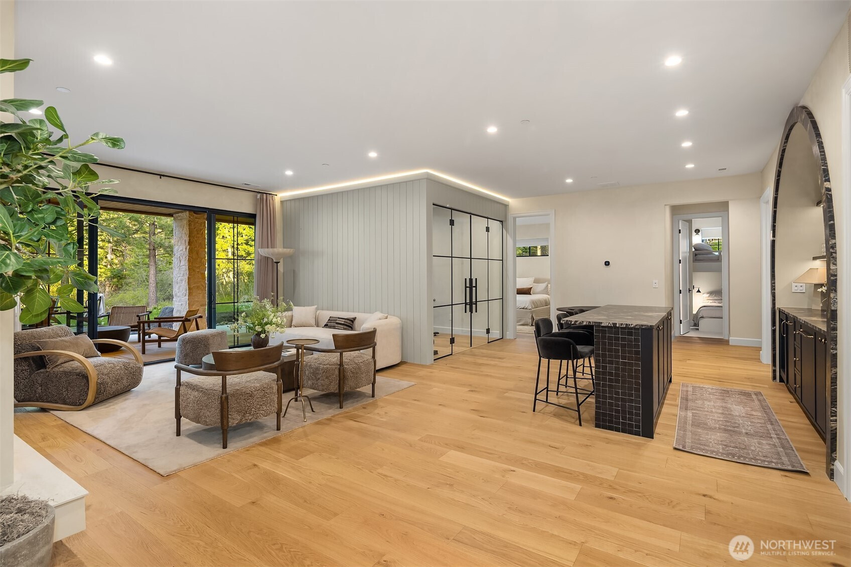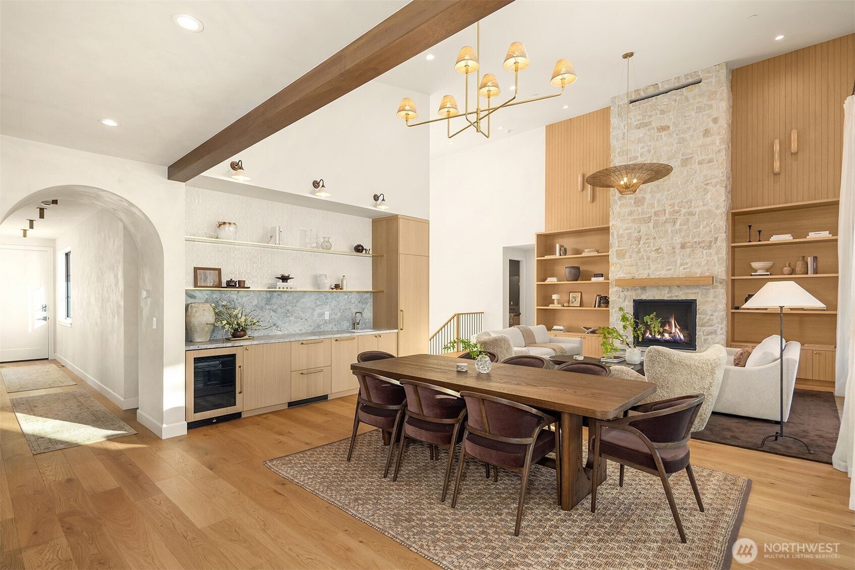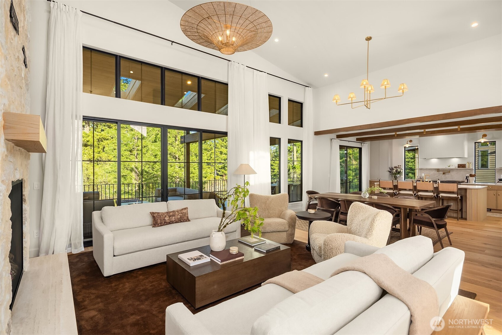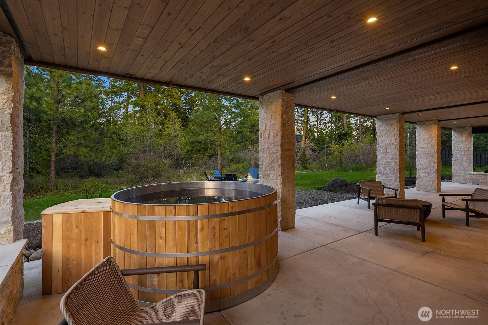 Evoking warmth and refinement through out, this builder’s own 6 bed/6 bath home is a masterpiece that delivers resort spa luxury on your own terms. The cedar-and-stone exterior glows at dusk against a backdrop of the pine trees and sweeping Cascade peaks. Step inside to soaring great room ceilings anchored by the floor-to-ceiling stacked stone fireplace flanked by white oak built-ins + sculptural brass lighting. The chef’s kitchen is a study in considered luxury — custom cabinetry, quartzite slab stone, pot filler, professional range, and a fluted island, all crowned by a custom plaster-finished vent hood that makes clear no detail was an afterthought. The dining room opens through arched passages, with a built-in bar w/wine fridge and custom cabinetry. A lower-level wet bar clad entirely in dramatic black marble — framed by a custom arched surround — sets the tone for serious entertaining. The primary is a true sanctuary of relaxation. Enjoy the cedar Finnish sauna with pebble stone floors, forest-facing glass, gym. Find the hidden office, lounge in the theatre room & more. Step outside to a fire pit lounge, level backyard, a covered deck, hot tub, & easy access to trails. Post Hotel vibes through and through. Walk to the owners-only pool & café, Nelson Farms, and community parks. Every finish detail here was chosen with intention. Every space earns its place. A rare Suncadia offering for the buyer who simply won’t settle. Turn key opportunity, furnishing may convey.