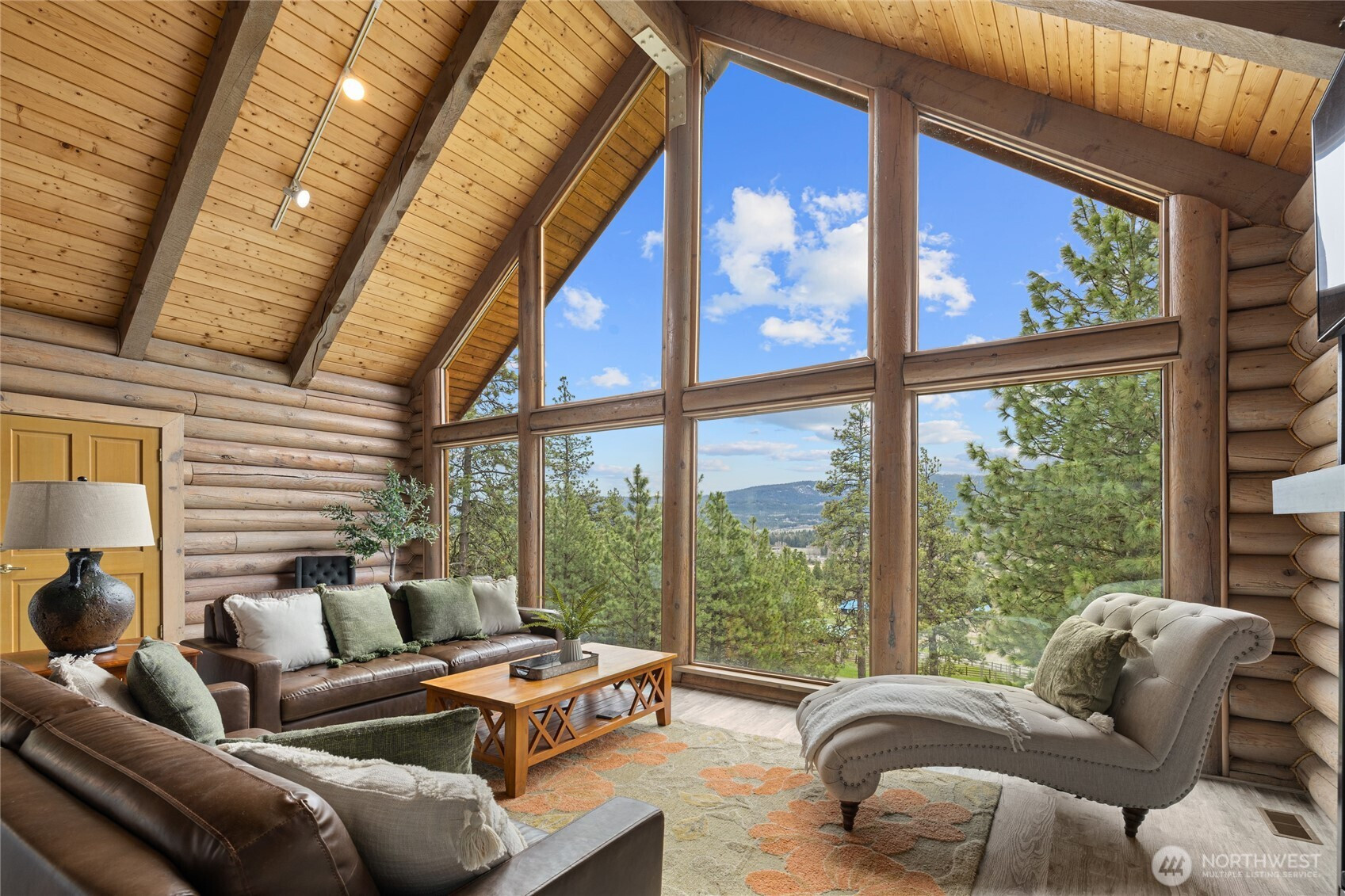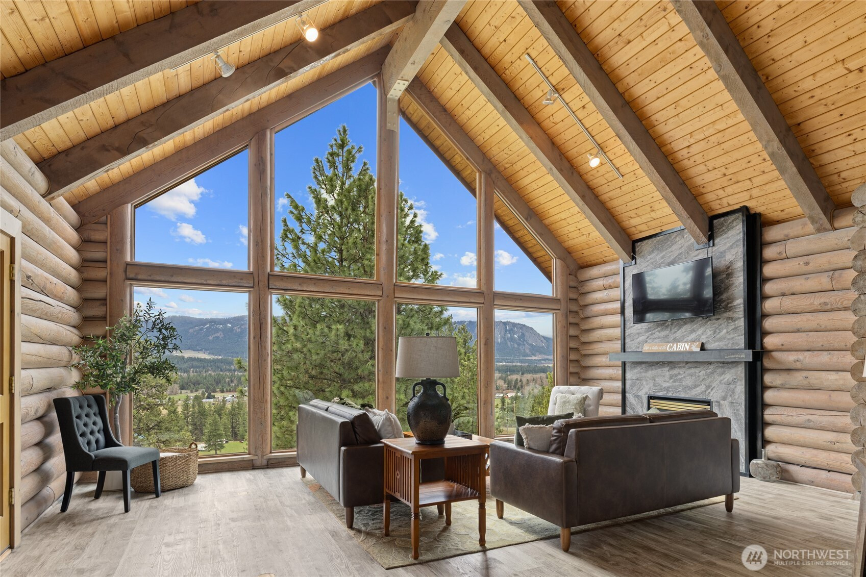 Breathtaking views at an amazing price! This stunning log home on 3 private acres perfectly balances country tranquility with everyday convenience—located mere minutes from Cle Elum. Soaring ceilings and expansive windows bathe the home in natural light, highlighting its warm, inviting interior. The main floor features a spacious primary suite with a gas fireplace, luxurious bath, and generous walk-in closet. The beautifully updated kitchen boasts sleek quartz countertops atop a large gathering island, ideal for entertaining. New LVP flooring throughout adds a touch of modern style and comfort. The finished daylight basement includes two bedrooms, two updated baths, and a generous bonus/media room, while the third-floor loft provides additional sleeping space, an ideal office location, or a cozy retreat. Two fenced areas and well-kept barns make this property a dream for animal lovers. Whether you’re looking for a full-time residence, peaceful getaway, or vacation rental, this mountain retreat offers endless possibilities.