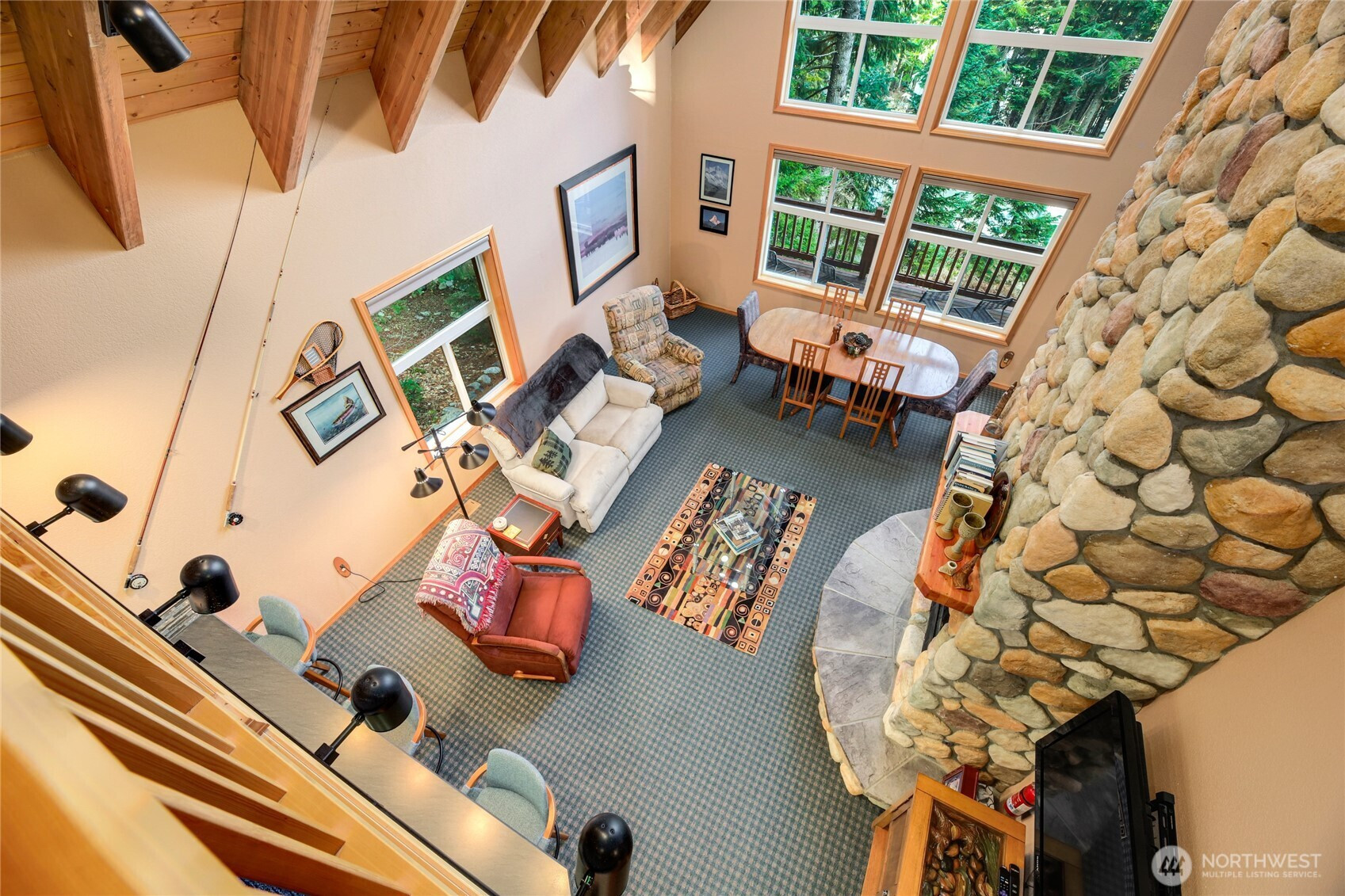 Experience the best of mountain living Snoqualmie Pass has to offer. 3-bed, 2-bath single-family home tucked on a quiet cul-de-sac just a short, easy walk to the chairlift. Updated kitchen with new countertops flows into warm, comfortable gathering spaces ideal for hosting, relaxing, and enjoying time with friends after a day outdoors. A stunning wall of windows floods the vaulted ceiling great room with natural light while showcasing panoramic views of snow-capped peaks and snow-laden evergreens. Hiking, biking, cross-country skiing, and snowshoeing accessible right from your doorstep. This custom architecturally designed home comes furnished and ready for your intended use, perfect for a year-round mountain retreat.