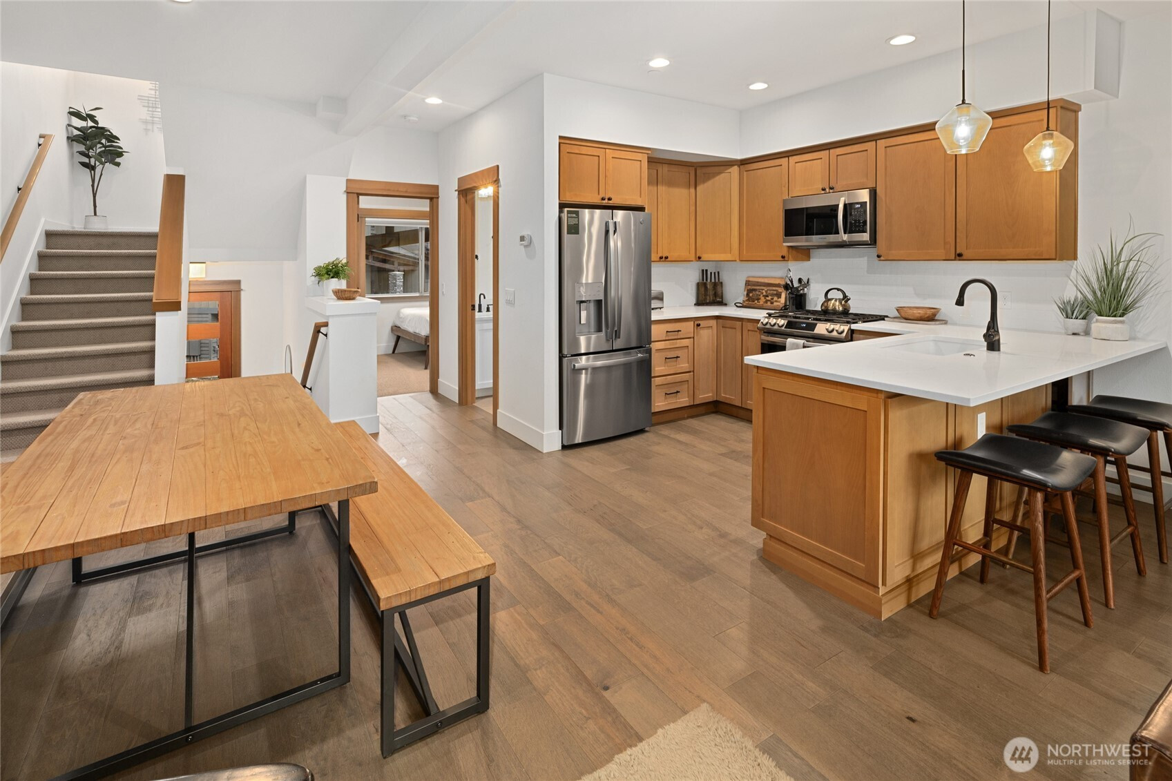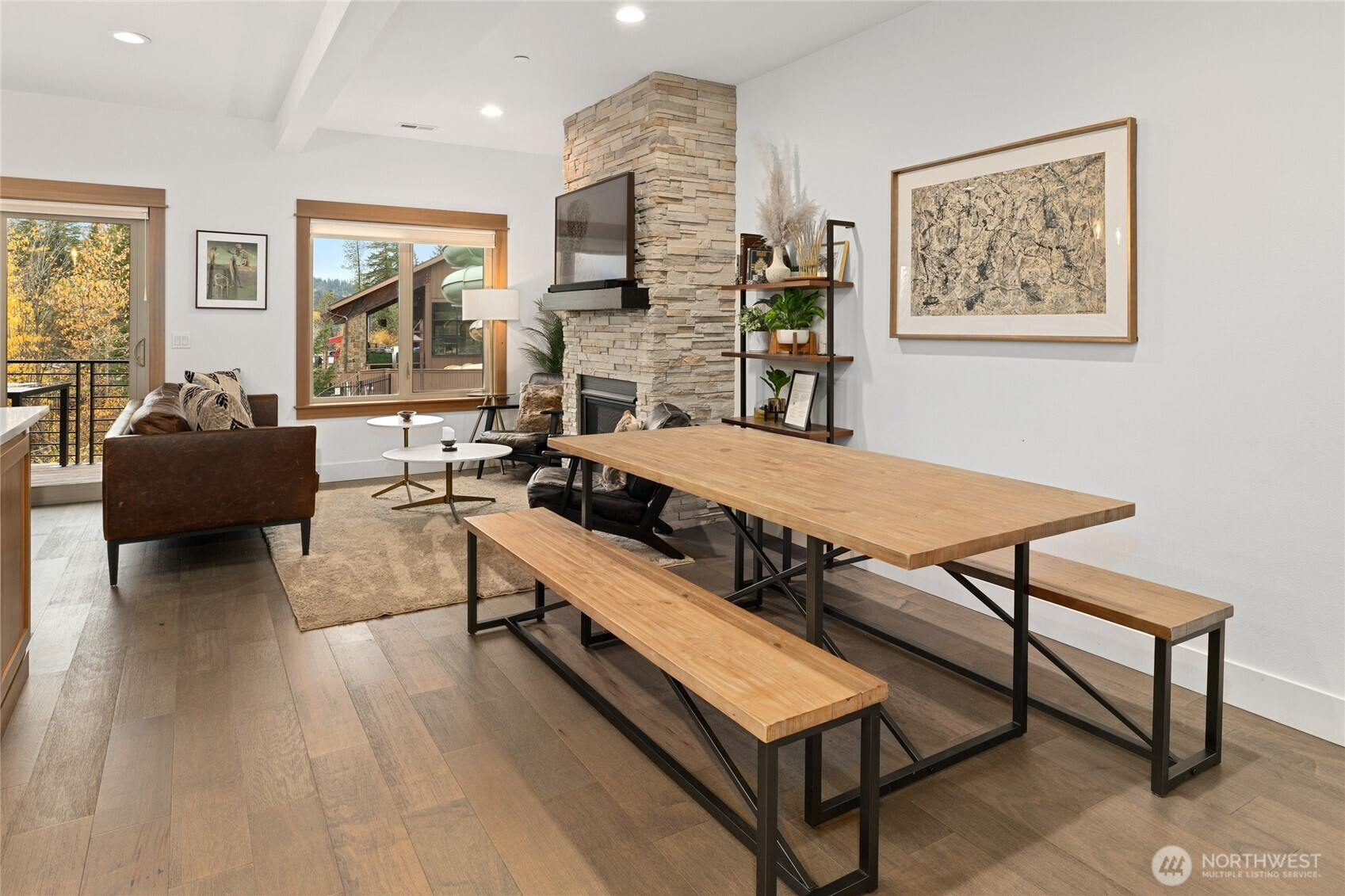 Located in the heart of Suncadia, this beautifully maintained & fully furnished townhouse offers a rare blend of convenience, comfort, & year-round recreation. Just steps away from the Swim & Fitness Center & the soon-to-be-completed Suncadia Social—featuring new dining options, a coffee house, & a grocery market-you will enjoy the benefit of being right where the community gathers. The main level offers an open-concept layout designed for comfort & connection. The living area is warm & inviting & flows easily to the modern kitchen and dining nook. Upstairs, you'll find a spacious suite w/ a private deck, along w/ an additional bedroom. Downstairs is a fun bunkroom that sleeps 6. Garage is set up as a game room w/shuffleboard & darts.