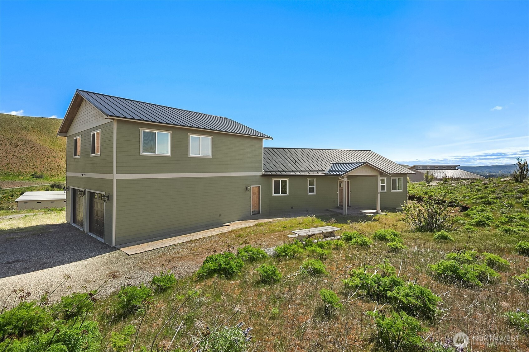 This newly built, stunning home is set on 3.64 picturesque acres in "Deer Valley". With 3,044 square feet of living space, this home captures sweeping mountain & valley views from nearly every angle. Designed with open concept floor plan, the main living area flows seamlessly & is filled with natural light, highlighted by elegant French doors leading to spacious back patio, perfect for entertaining or relaxing in the peaceful surroundings. The kitchen features granite countertops, ample workspace and modern finishes complimented by durable vinyl plank flooring throughout the home. The primary suite offers a private retreat with an ensuite bath, soaking tub, walk in shower & dual sink vanity. Above the garage is a 1,020 square foot attached living space providing excellent potential for income, guests or multi-generational living, complete with its own kitchen, full bath, walk in closet & breathtaking views. Furniture is negotiable, home is move in ready. This property offers room to roam, privacy & versatility in a truly beautiful setting. Tons of space for gardening, 200-300 average days of sunshine per year. There is a fenced-in vineyard area, perfect for the home winemaker. Wine fridge in kitchen awaits your mastery. Extra deep garage, room for all your toys. Yakima river is just below, best Blue Ribbon Fly Fishing in the Pacific Northwest. Located 10-15 minutes from Cle Elum or Ellensburg along Hiway 10, one of the most scenic drives in Eastern Washington.