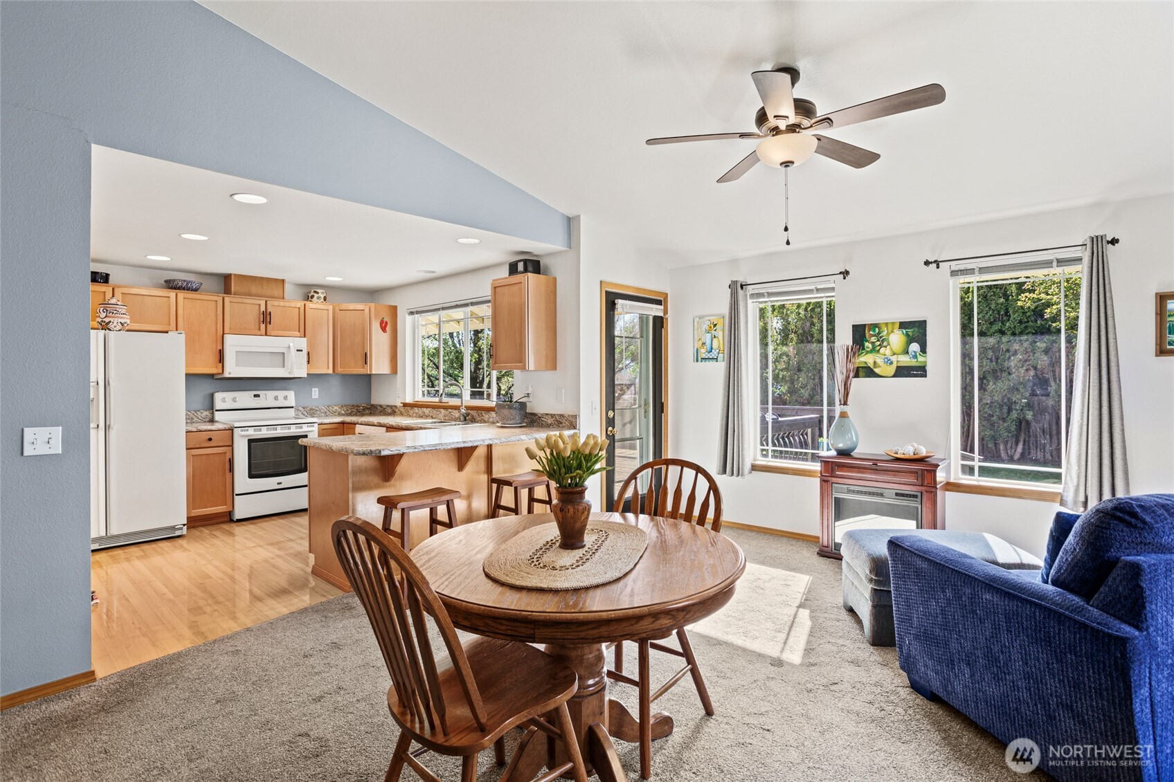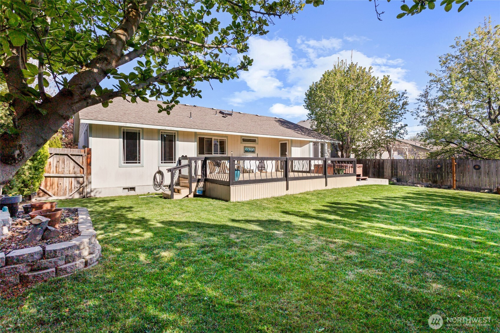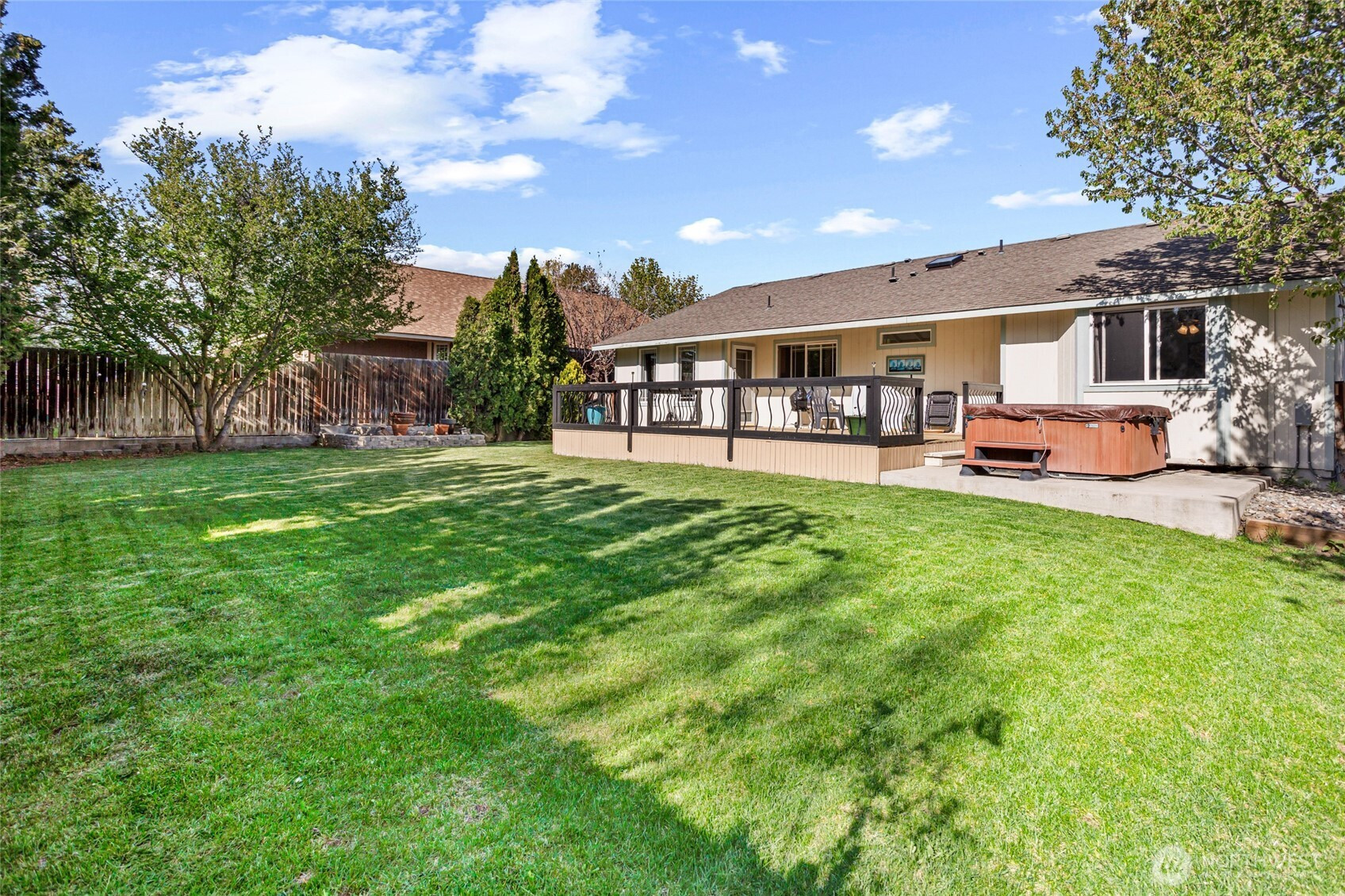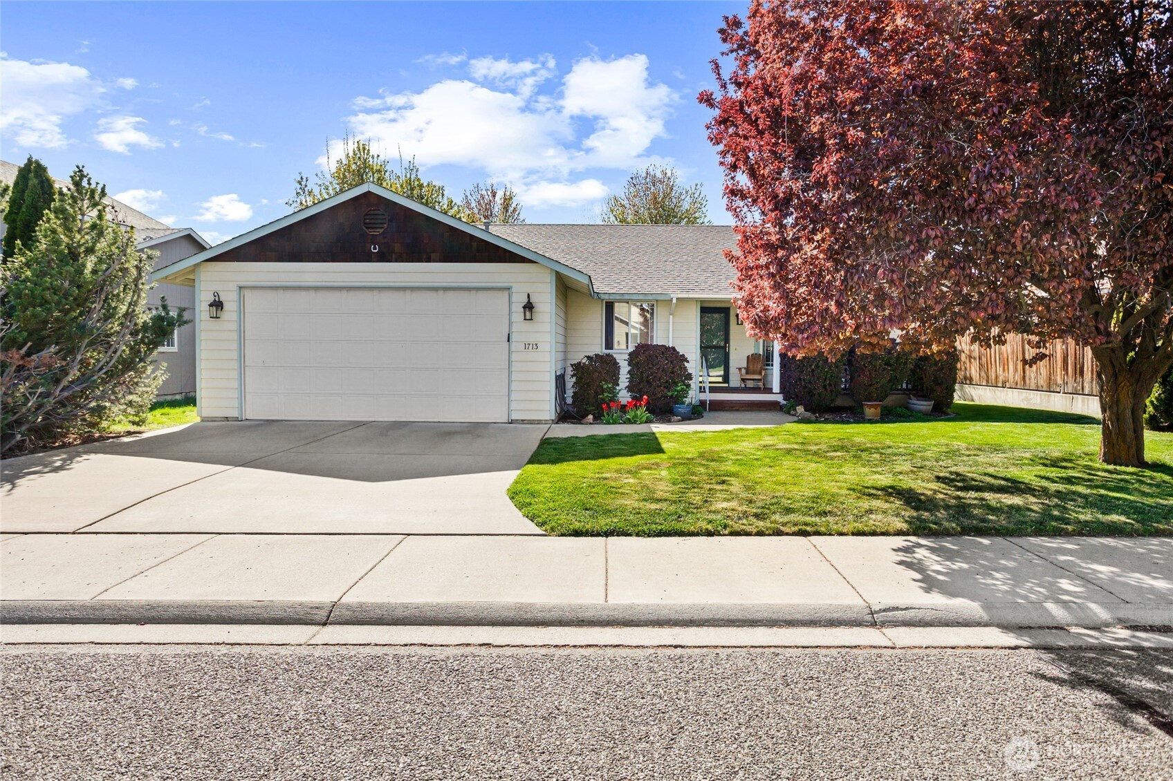 Beautifully maintained and move-in ready, this Ellensburg home offers comfortable, easy living with a thoughtful layout and pride of ownership throughout. Vaulted ceilings in the living room create an open, airy feel, seamlessly connecting to the dining area and kitchen. The kitchen is both functional and inviting, featuring a large peninsula that overlooks the main living spaces, along with a window above the sink bringing in natural light and views of the backyard. A spacious, centrally located utility room adds everyday convenience.The home offers three bedrooms and two full bathrooms, including a primary suite with its own en suite bath. Two additional bedrooms are well-sized and served by a full hallway bathroom, providing flexibility for guests, work-from-home space, or additional living needs. Situated on a quiet dead-end street, the setting provides a sense of privacy while remaining close to town. The backyard is a true highlight—secluded and beautifully maintained with lush lawn, mature landscaping, and a large deck complete with a hot tub, creating an ideal space to relax or entertain. A two-car garage and additional off-street parking - nothing to do but move in and enjoy!