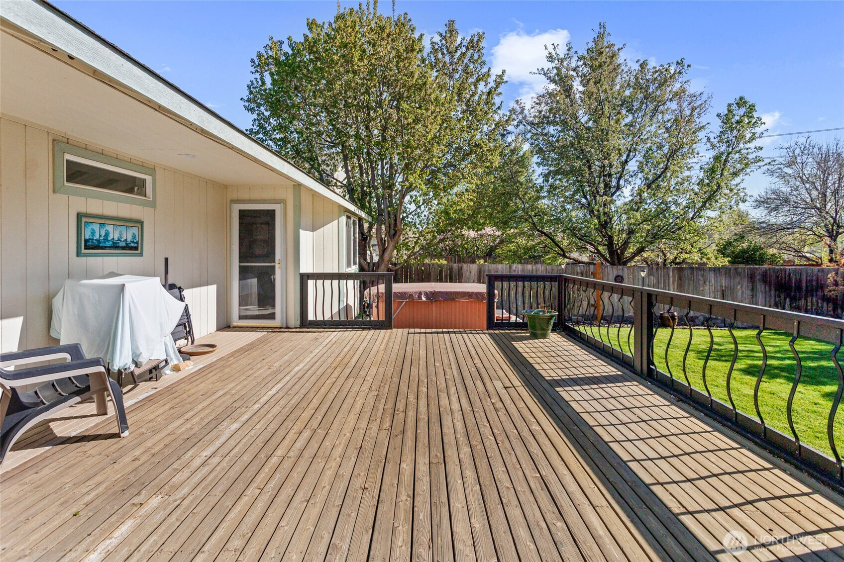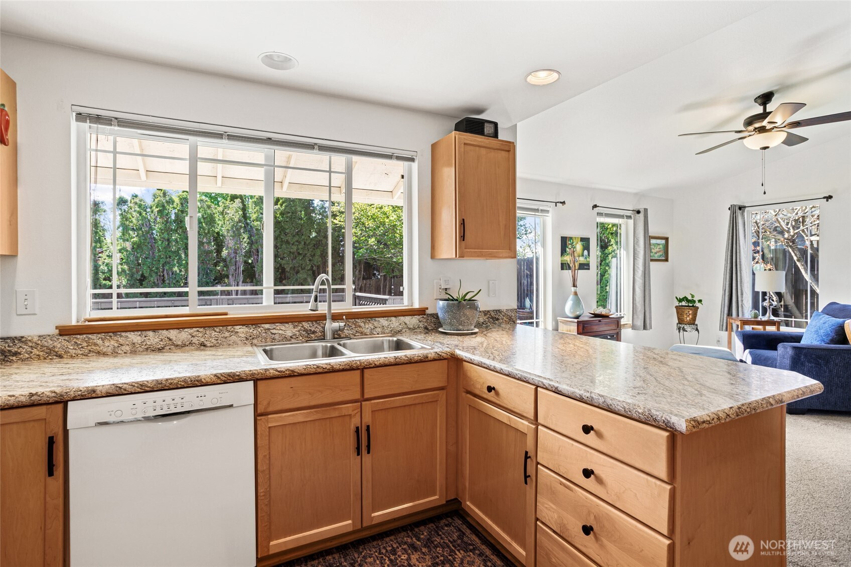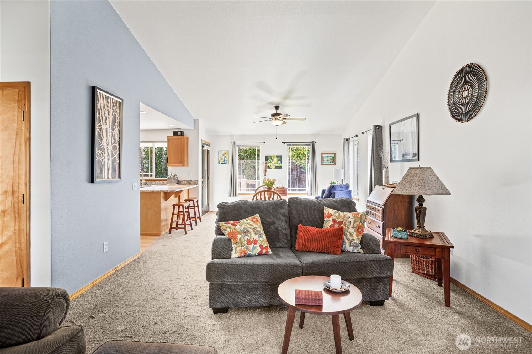 Beautifully maintained and move-in ready, this Ellensburg home offers comfortable, easy living with a thoughtful layout and pride of ownership throughout. Vaulted ceilings in the living room create an open, airy feel, seamlessly connecting to the dining area and kitchen. The kitchen is both functional and inviting, featuring a large peninsula that overlooks the main living spaces, along with a window above the sink bringing in natural light and views of the backyard. A spacious, centrally located utility room adds everyday convenience.The home offers three bedrooms and two full bathrooms, including a primary suite with its own en suite bath. Two additional bedrooms are well-sized and served by a full hallway bathroom, providing flexibility for guests, work-from-home space, or additional living needs. Situated on a quiet dead-end street, the setting provides a sense of privacy while remaining close to town. The backyard is a true highlight—secluded and beautifully maintained with lush lawn, mature landscaping, and a large deck complete with a hot tub, creating an ideal space to relax or entertain. A two-car garage and additional off-street parking - nothing to do but move in and enjoy!