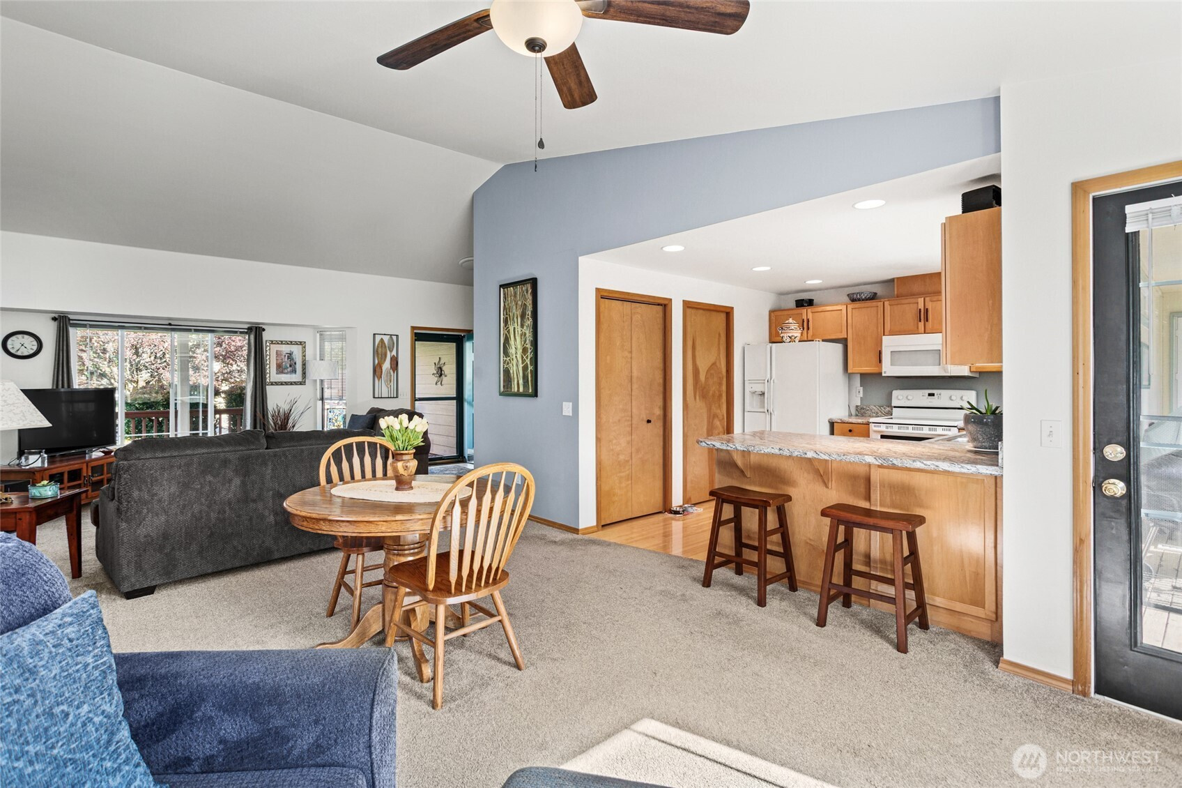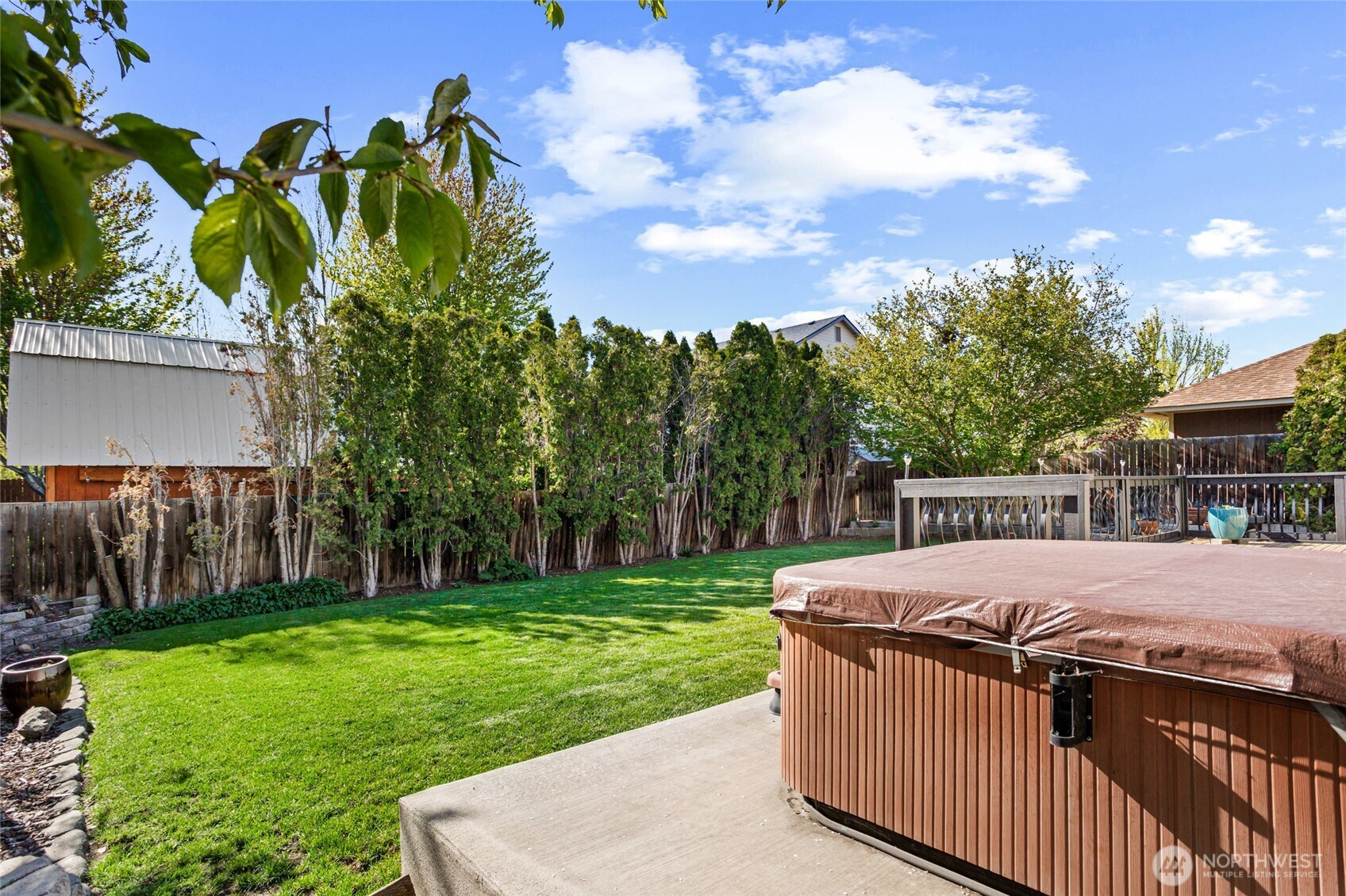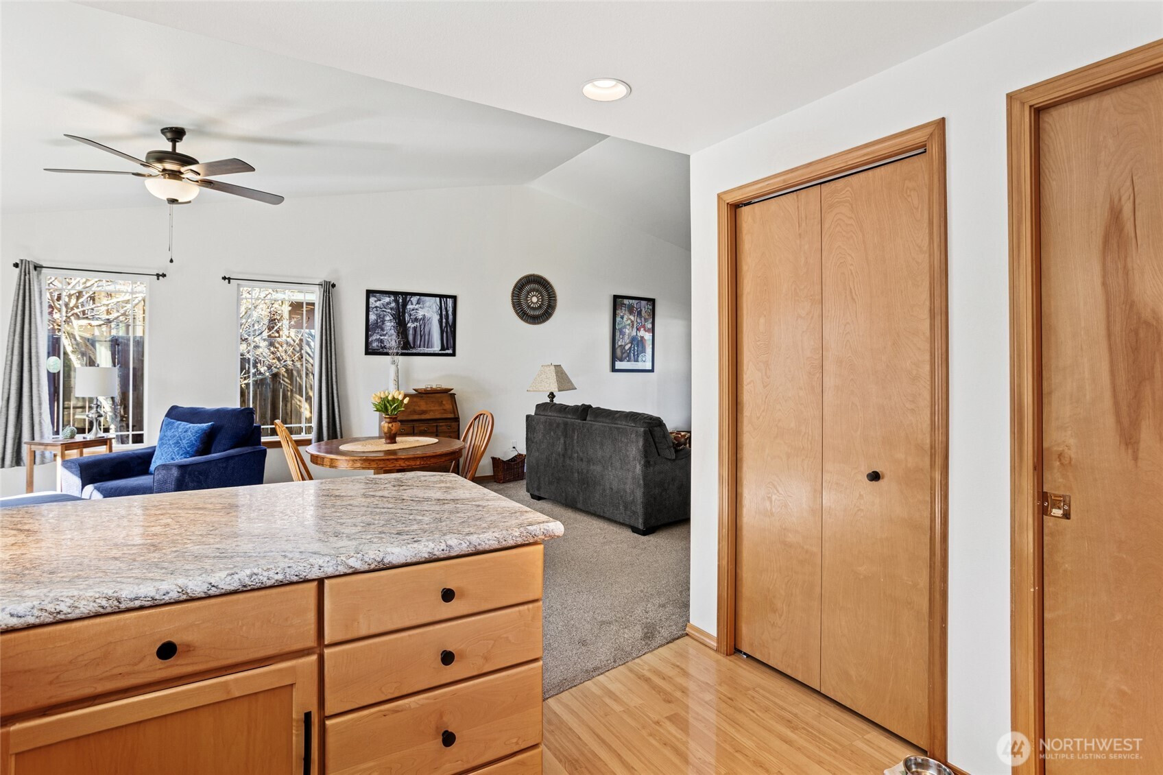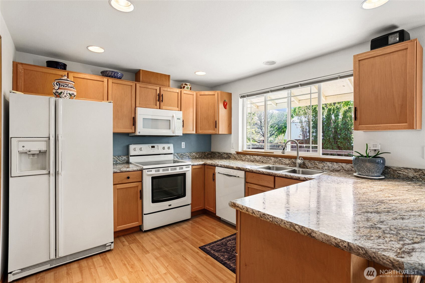 Beautifully maintained and move-in ready, this Ellensburg home offers comfortable, easy living with a thoughtful layout and pride of ownership throughout. Vaulted ceilings in the living room create an open, airy feel, seamlessly connecting to the dining area and kitchen. The kitchen is both functional and inviting, featuring a large peninsula that overlooks the main living spaces, along with a window above the sink bringing in natural light and views of the backyard. A spacious, centrally located utility room adds everyday convenience.The home offers three bedrooms and two full bathrooms, including a primary suite with its own en suite bath. Two additional bedrooms are well-sized and served by a full hallway bathroom, providing flexibility for guests, work-from-home space, or additional living needs. Situated on a quiet dead-end street, the setting provides a sense of privacy while remaining close to town. The backyard is a true highlight—secluded and beautifully maintained with lush lawn, mature landscaping, and a large deck complete with a hot tub, creating an ideal space to relax or entertain. A two-car garage and additional off-street parking - nothing to do but move in and enjoy!