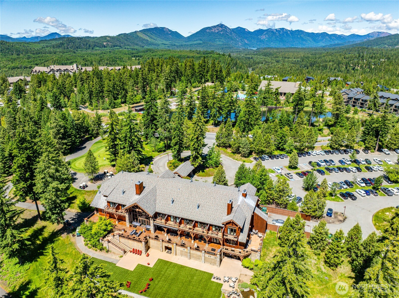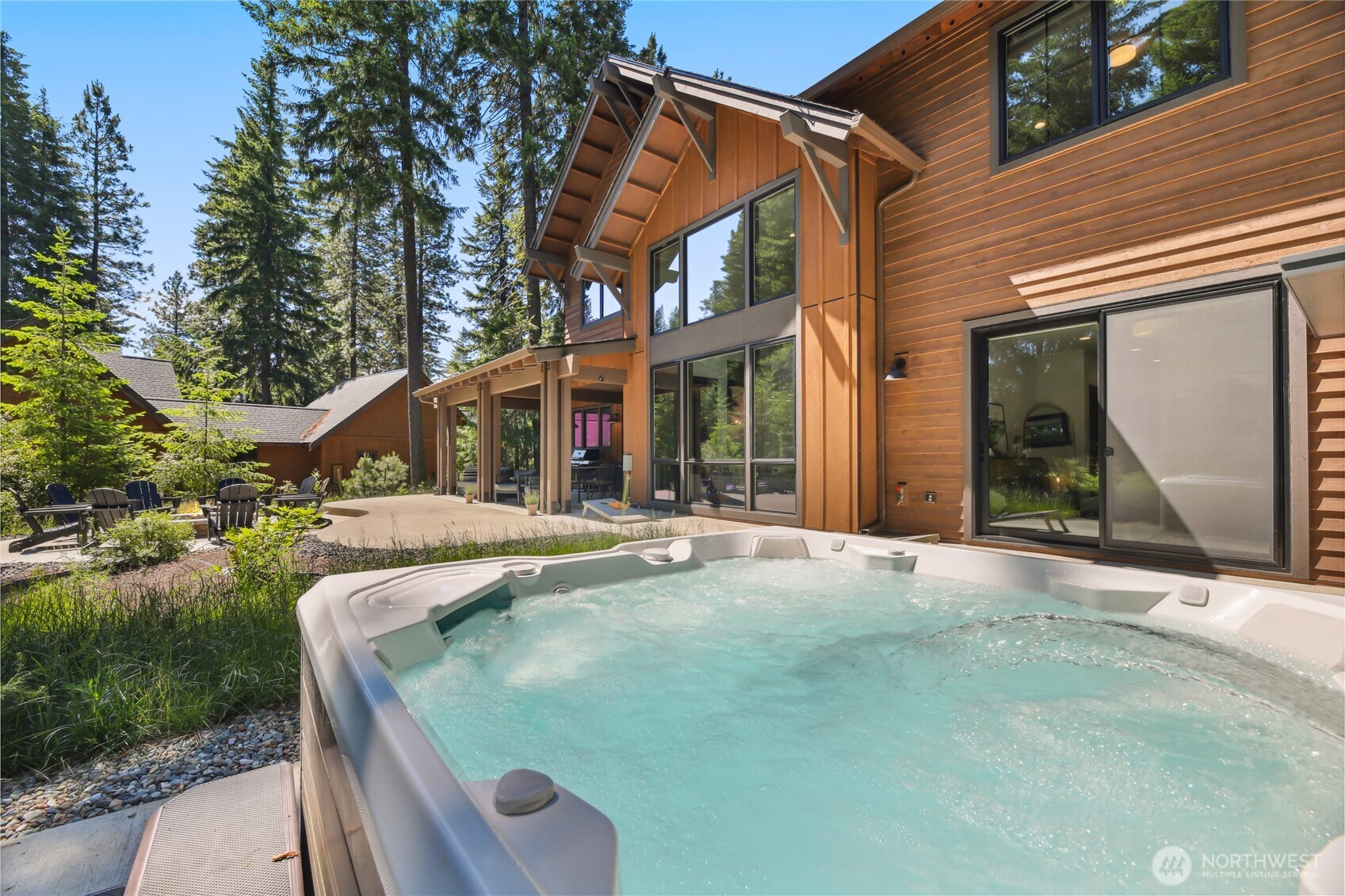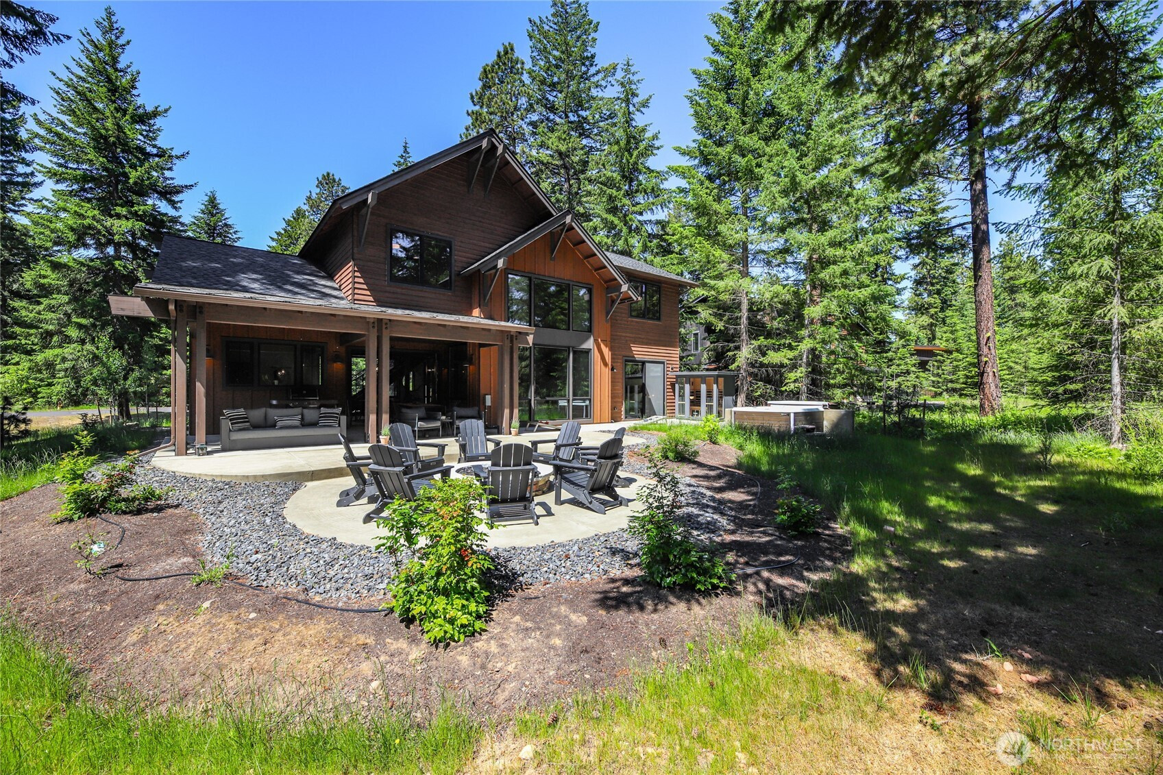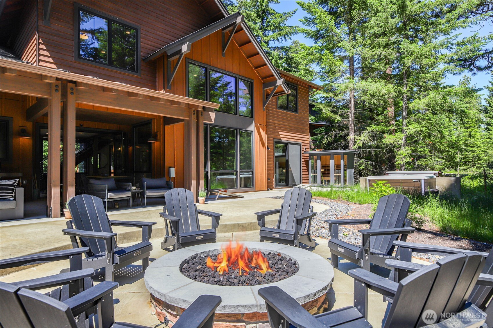 Perfectly positioned along the 7th green of Prospector Golf Course, this exceptional Suncadia retreat offers premier golf frontage in the heart of the community—just moments from the lodge, golf courses, swim and fitness center, and Suncadia Social. Thoughtfully designed with 4 bedrooms, plus an additional fully finished guest suite above the garage, ideal for visitors or multi-generational living. The backyard has been transformed with over $60,000 in upgrades, creating a private wellness escape complete with an infrared sauna, saltwater hot tub, and a beautifully landscaped concrete patio with an outdoor fire pit—perfect for year-round enjoyment. Inside, dramatic north- and south-facing double-height windows flood the home with natural light throughout the day. The open-concept design is tailored for both everyday living and entertaining, highlighted by a gourmet kitchen with soaring ceilings, a walk-in pantry, oversized island with prep sink, and premium finishes throughout. Seamless indoor-outdoor living is achieved through folding doors that open to the expanded patio, offering a true connection to Suncadia’s stunning natural surroundings.
