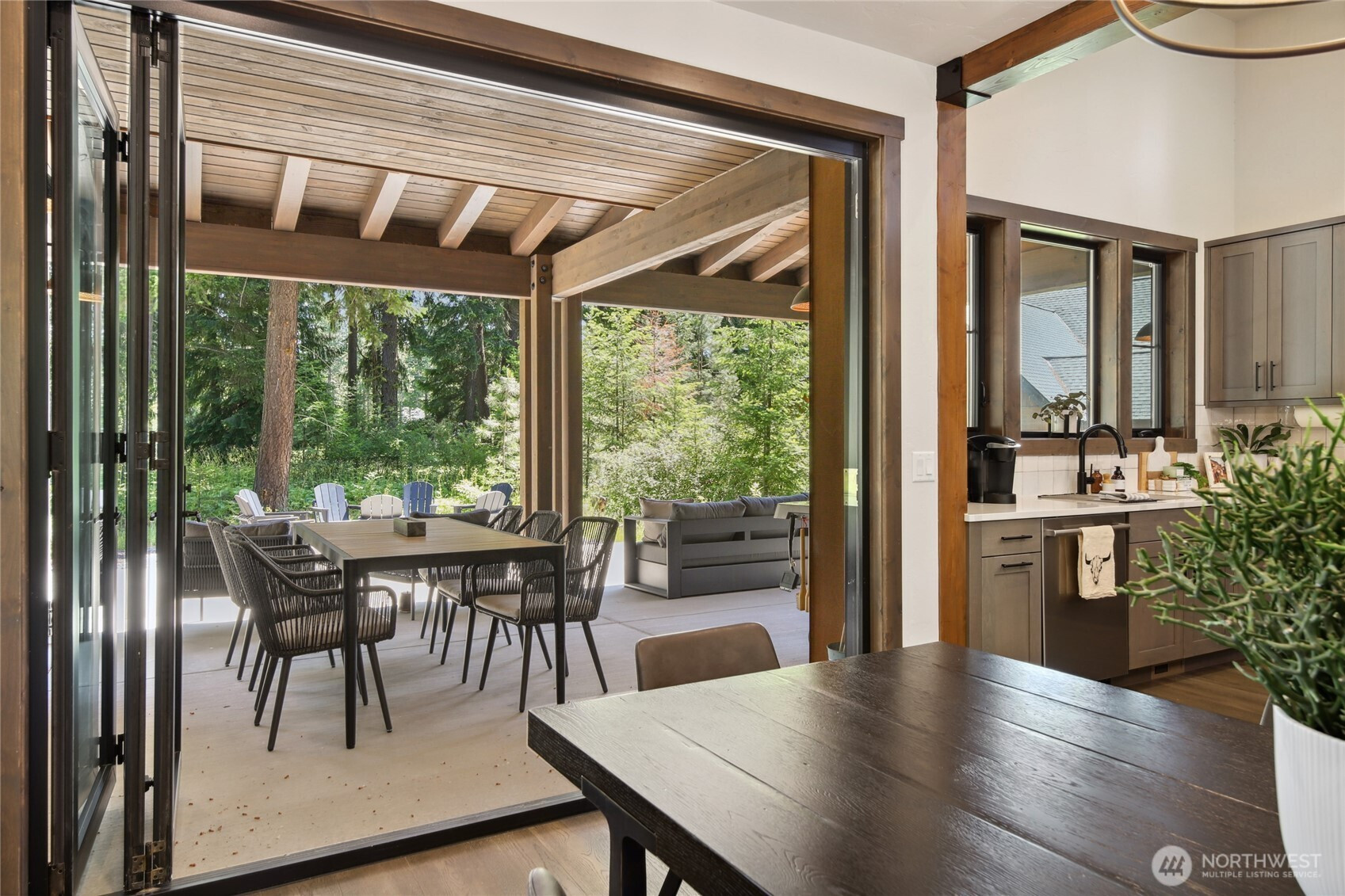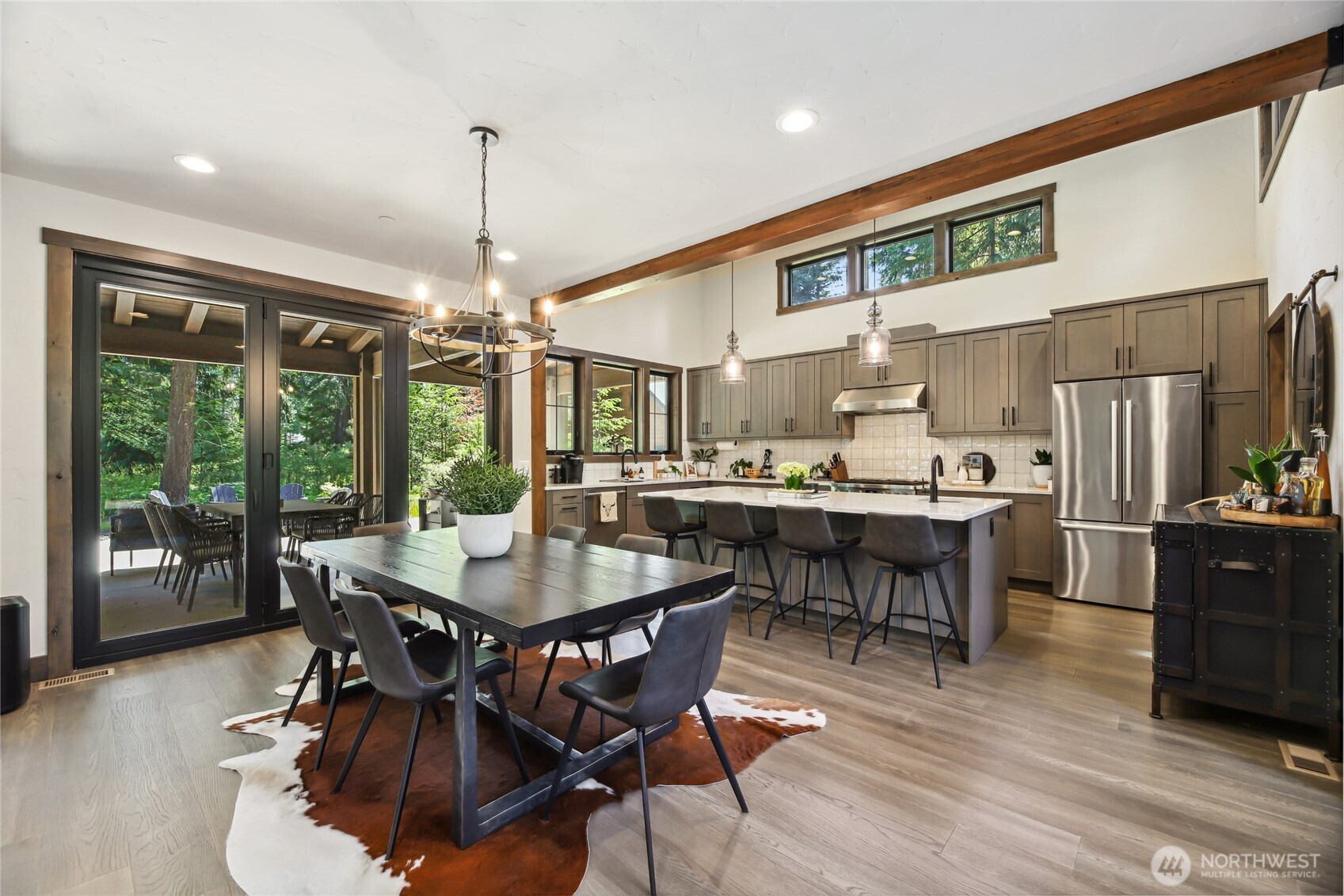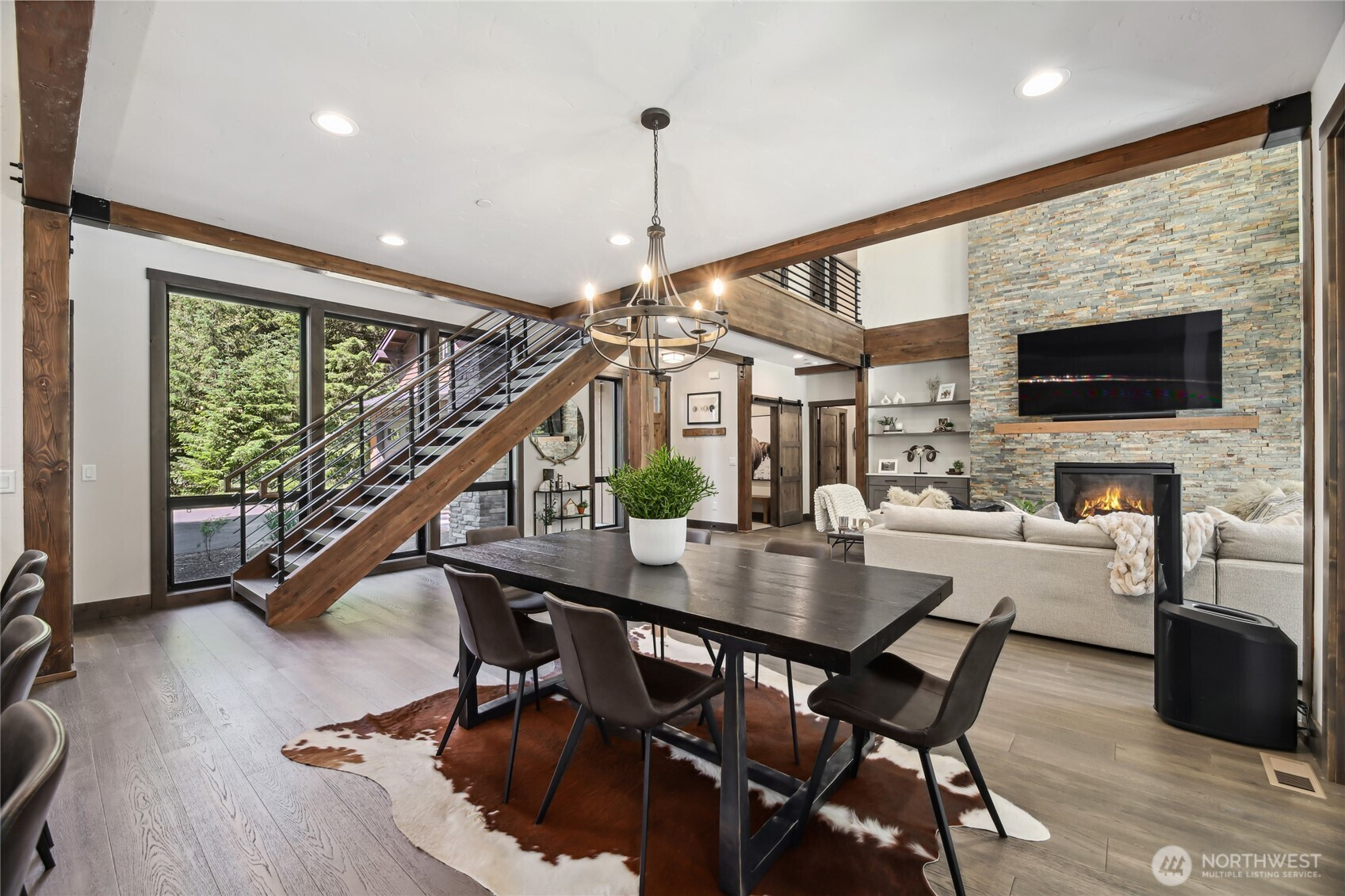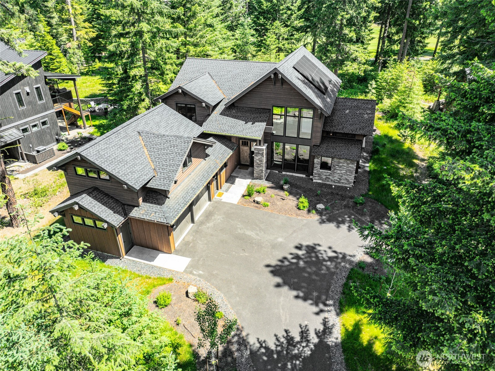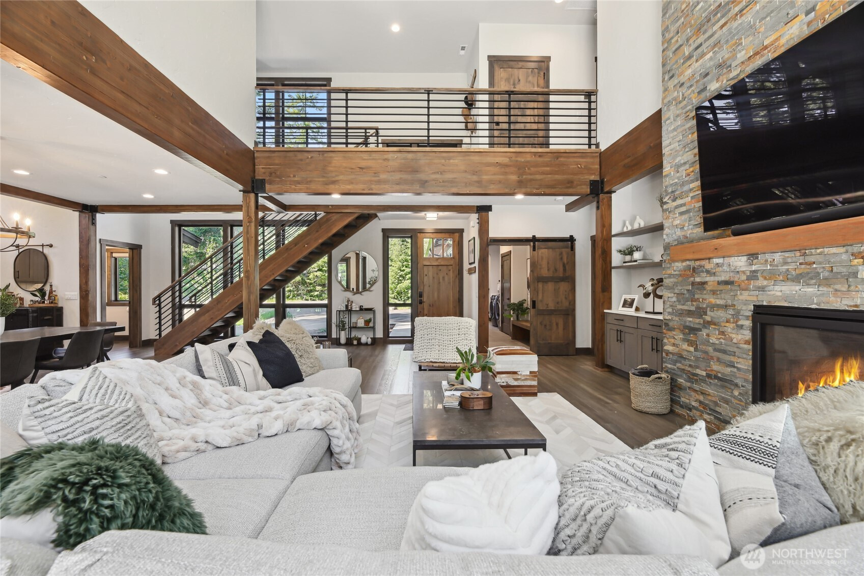 Perfectly positioned along the 7th green of Prospector Golf Course, this exceptional Suncadia retreat offers premier golf frontage in the heart of the community—just moments from the lodge, golf courses, swim and fitness center, and Suncadia Social. Thoughtfully designed with 4 bedrooms, plus an additional fully finished guest suite above the garage, ideal for visitors or multi-generational living. The backyard has been transformed with over $60,000 in upgrades, creating a private wellness escape complete with an infrared sauna, saltwater hot tub, and a beautifully landscaped concrete patio with an outdoor fire pit—perfect for year-round enjoyment. Inside, dramatic north- and south-facing double-height windows flood the home with natural light throughout the day. The open-concept design is tailored for both everyday living and entertaining, highlighted by a gourmet kitchen with soaring ceilings, a walk-in pantry, oversized island with prep sink, and premium finishes throughout. Seamless indoor-outdoor living is achieved through folding doors that open to the expanded patio, offering a true connection to Suncadia’s stunning natural surroundings.