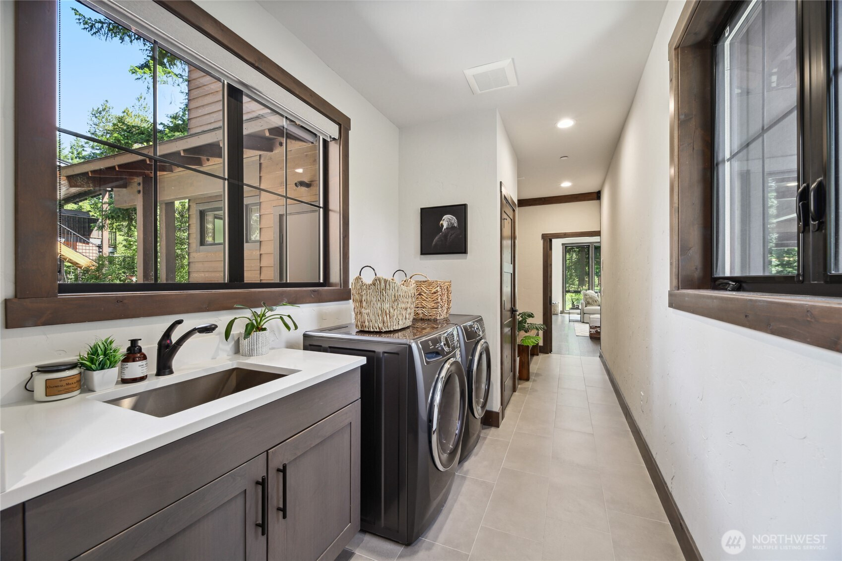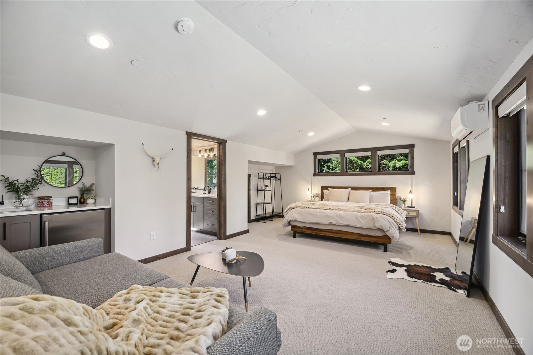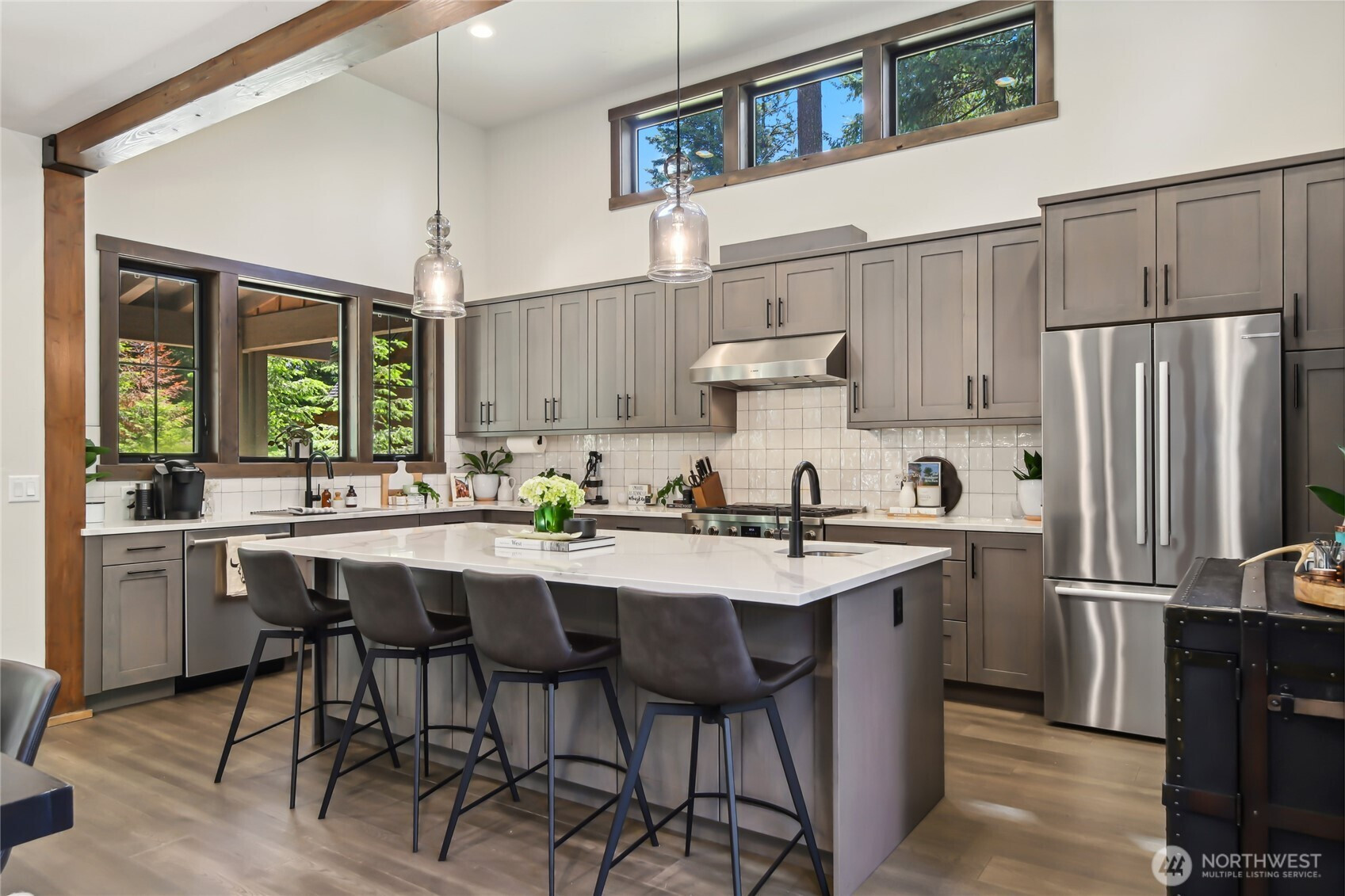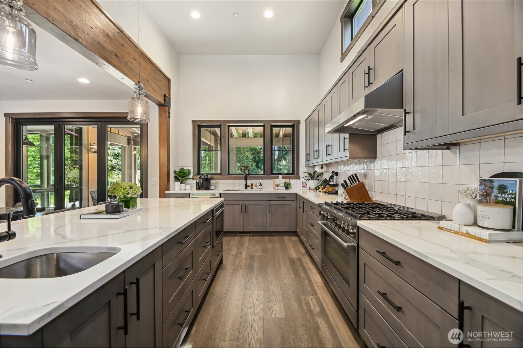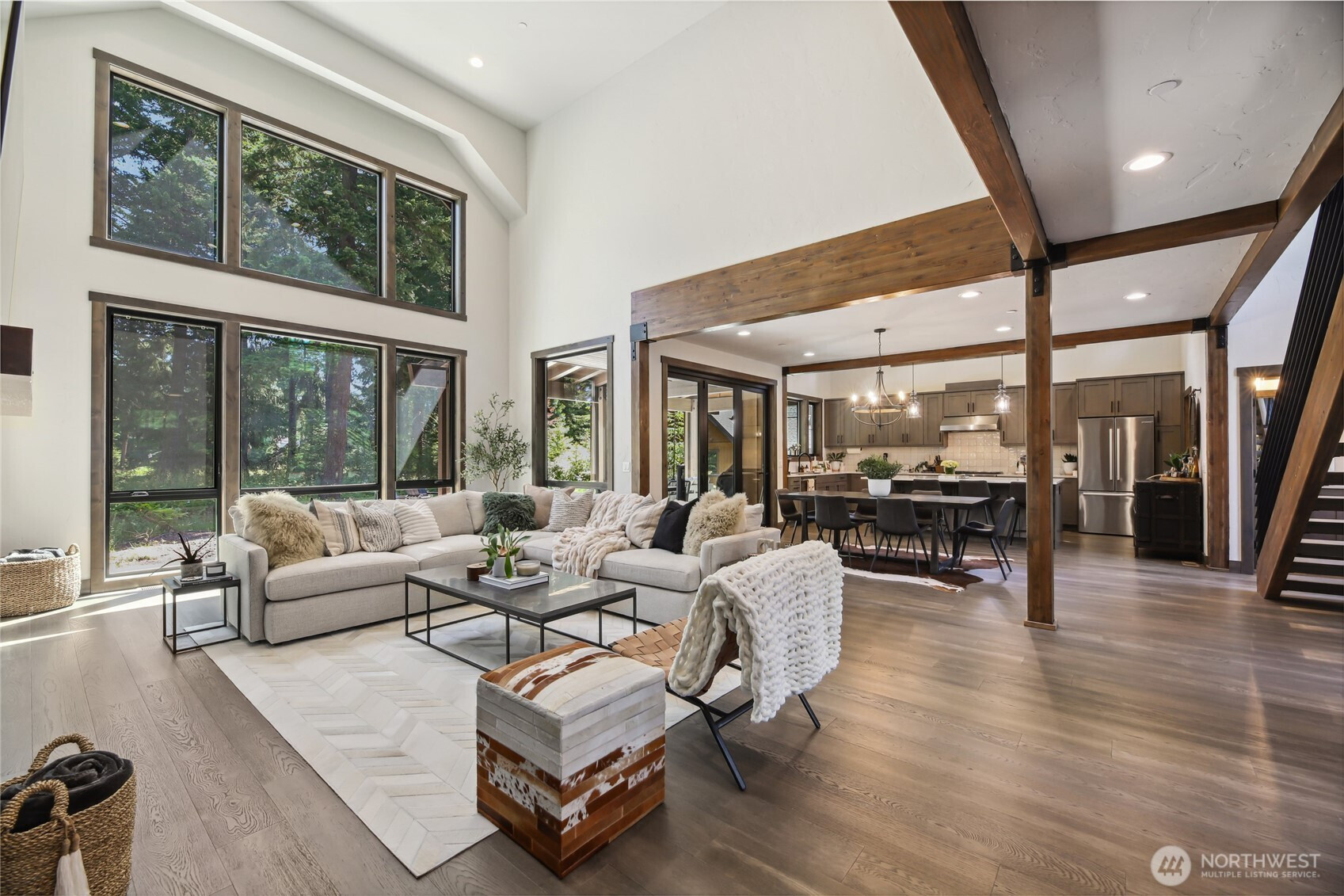 Perfectly positioned along the 7th green of Prospector Golf Course, this exceptional Suncadia retreat offers premier golf frontage in the heart of the community—just moments from the lodge, golf courses, swim and fitness center, and Suncadia Social. Thoughtfully designed with 4 bedrooms, plus an additional fully finished guest suite above the garage, ideal for visitors or multi-generational living. The backyard has been transformed with over $60,000 in upgrades, creating a private wellness escape complete with an infrared sauna, saltwater hot tub, and a beautifully landscaped concrete patio with an outdoor fire pit—perfect for year-round enjoyment. Inside, dramatic north- and south-facing double-height windows flood the home with natural light throughout the day. The open-concept design is tailored for both everyday living and entertaining, highlighted by a gourmet kitchen with soaring ceilings, a walk-in pantry, oversized island with prep sink, and premium finishes throughout. Seamless indoor-outdoor living is achieved through folding doors that open to the expanded patio, offering a true connection to Suncadia’s stunning natural surroundings.