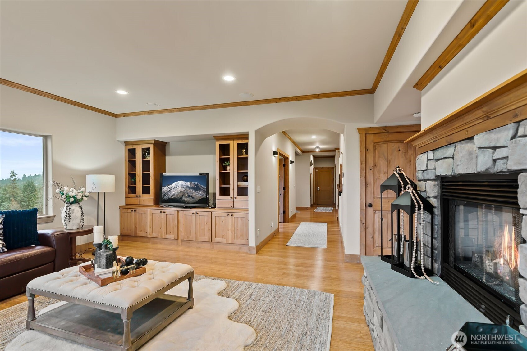 Tucked into the coveted Westside Heights community w/sweeping views of the Stuart Mountain range & set on 3 private ac, this home blends luxury, comfort, & the ultimate mountain living experience. Thoughtful upgrades incl whole-house audio, security system, central vacuum, granite countertops, bamboo flooring, knotty alder cabs & doors, & stunning glass-panel fireplace. Beautiful furnishings make this truly turn-key. Upper level ft. spacious bonus rm perfect for guests/game nights, & daylight basement offers additional bedrooms, media rm, & large rec rm. Easily sleep 18 or more people, making it ideal for hosting, multi-generational stays, or vacation living. Ample room for RV parking. You simply have to experience this property in person!