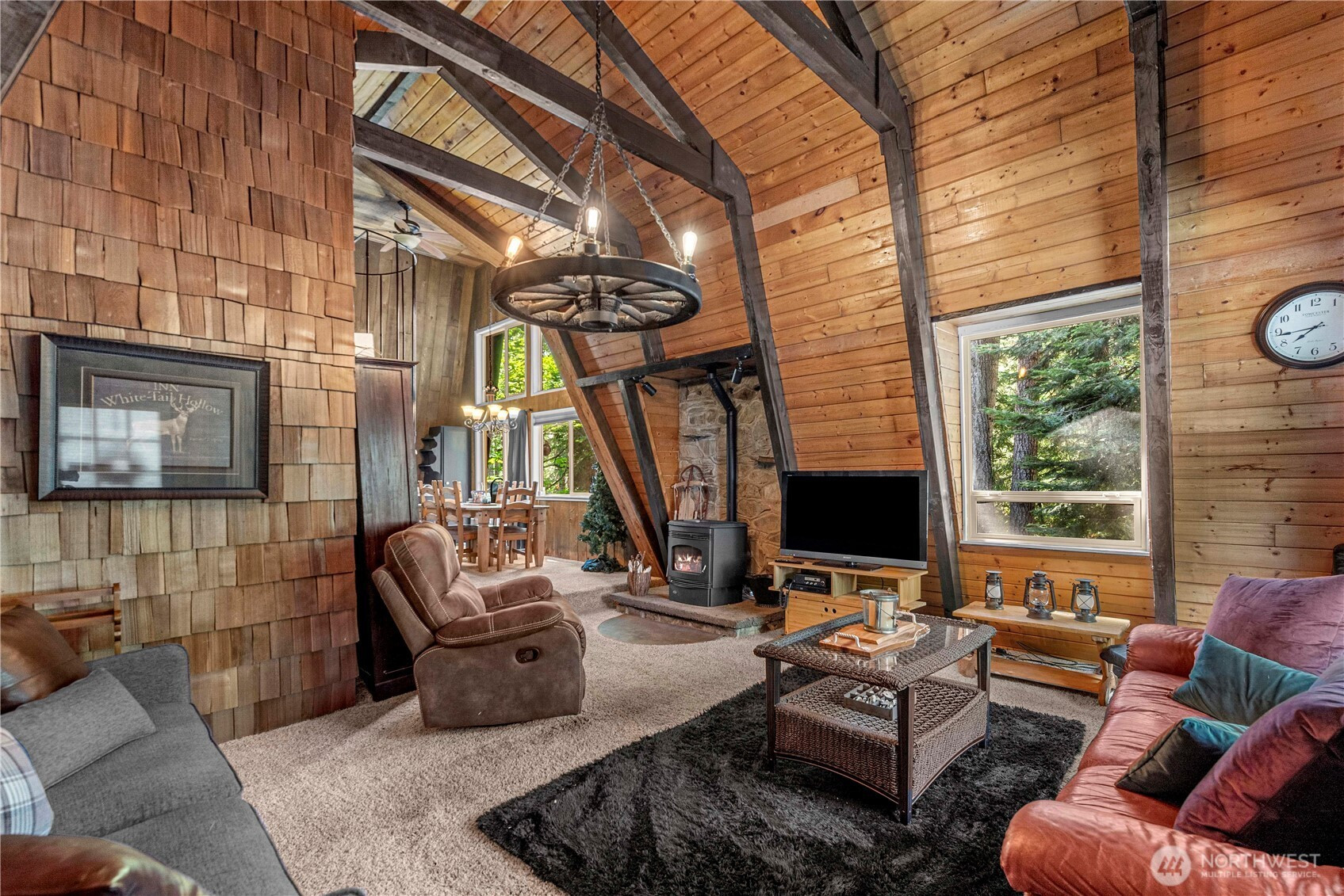 Welcome to this secluded mountain retreat offering the perfect blend of privacy & comfort. Charming cabin featuring vaulted ceilings w/exposed beams, cozy pellet stove & sliding glass door that opens up to a spacious deck w/hot tub. Thoughtfully designed layout includes 2 inviting bedrooms and a full bath on the main floor, while a loft & add'l bedroom upstairs provide ample space. Extra storage beneath deck for all your gear. As part of the Pineloch Sun community, you'll enjoy access to Lake Cle Elum's beach, a welcoming lodge, seasonal swimming pool and sports courts. Enjoy endless trails, a snowmobiling haven, boating & more! 15 min drive to Roslyn & Suncadia. Fully turn-key. Your next adventure awaits!