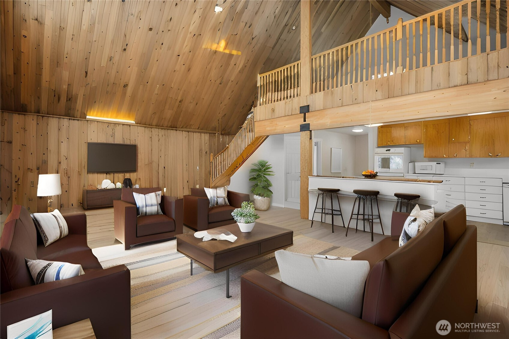 Beautiful 1,728 square foot 1 bedroom/1 bath with a large loft/flex room on a double lot with a 3 bedroom septic in Pine Glen Estates. The property features spacious entertaining area with a large wrap around deck that looks out to the creek, a cozy wood fireplace, and large windows that flood the home with natural light and vaulted ceilings.2 outbuildings and a playhouse and lots of parking for guests. Located in the Pine Glen community, this home offers easy access to year-round recreation. With Lake Easton State Park just minutes away for boating, fishing, and hiking. In the winter, enjoy quick access to Snoqualmie Pass for skiing and snowboarding. Year round access.
