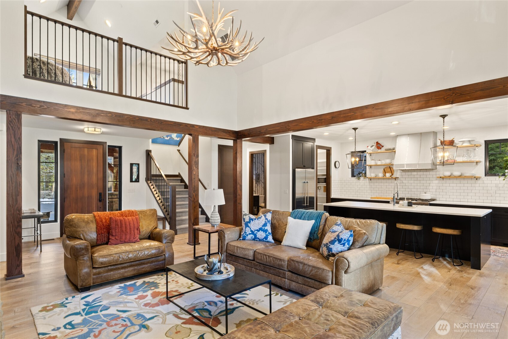 Perfectly positioned along the 4th fairway of Rope Rider Golf Course on a quiet cul-de-sac, this retreat built by Merle Custom Homes enjoys rare privacy with peaceful golf course frontage and a protected view corridor of mature forest. Vaulted ceilings and exposed timber beams welcome you into a light-filled, open-concept design that flows effortlessly from the chef’s kitchen and walk-in pantry to inviting indoor and outdoor living spaces. The covered patio, built-in outdoor kitchen, expanded entertainment terrace, fire pit set away for evenings under the stars, and premium hot tub create a private outdoor sanctuary for year-round enjoyment. The main-floor primary suite offers comfort and convenience, while a versatile loft provides flexible space for media, office, or future enclosure. A bonus room over the garage and main-level library or office add functionality for guests, remote work, or recreation. The finished garage with epoxy floors, wood detailing, storage, and EV charging serves equally well for vehicles, gear, or gathering space. Enjoy immediate access to Suncadia’s paved trail system, golf, dining, and resort amenities. Pre-inspected and meticulously maintained by full-time owners, this home offers ideal sun exposure, exceptional privacy, and effortless move-in readiness. An ideal basecamp for four-season Suncadia living.