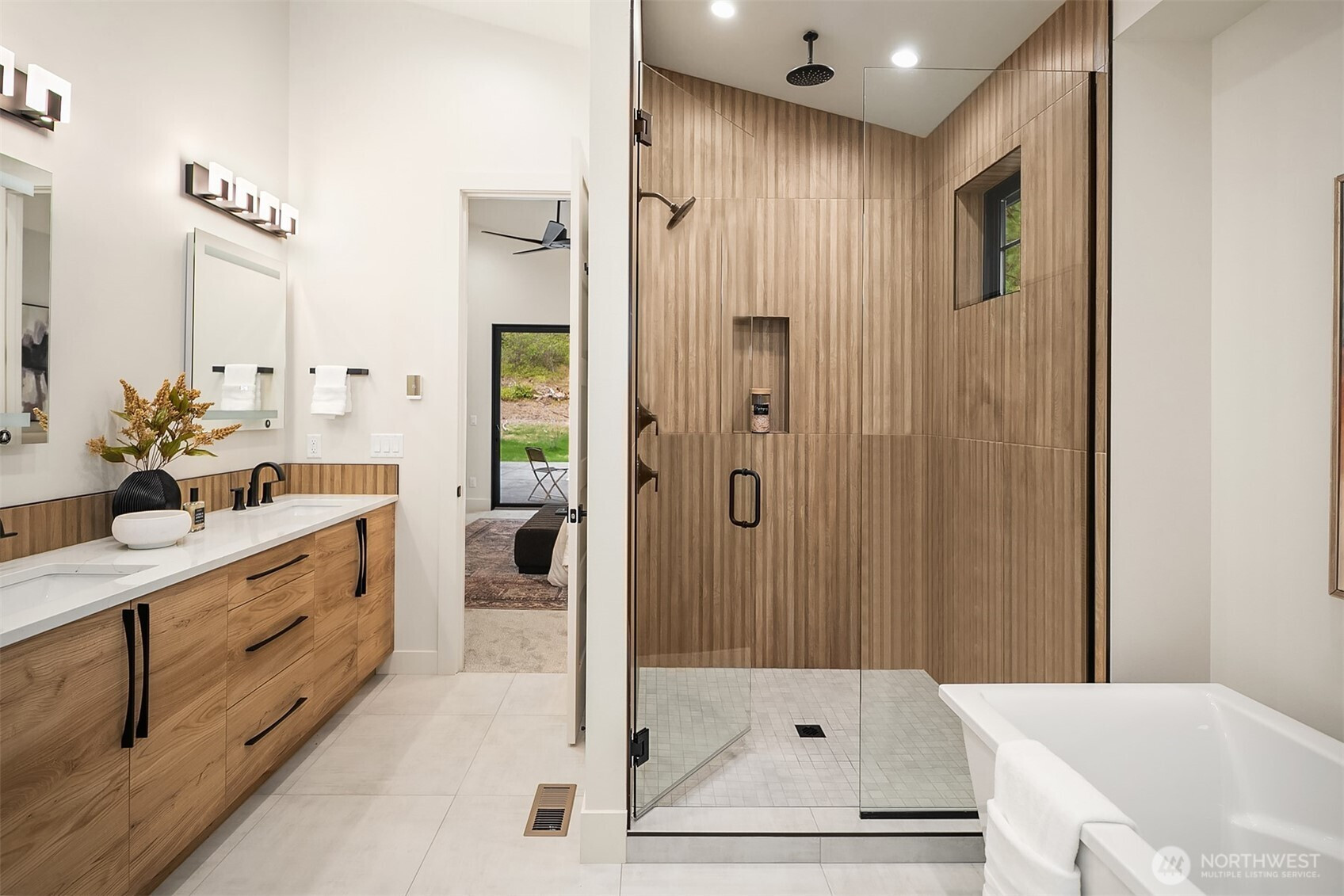 Just completed in the gated community of Nelson Ridge within Suncadia. Home features five bedrooms and five bathrooms. Beautiful mountain-inspired architecture complemented by contemporary finishes, including an expansive great room with vaulted ceilings, exposed beams, a stone fireplace, and refined wood shelving. The kitchen is equipped with a spacious island topped with quartz countertops and professional-grade Thermador appliances. Spa- like primary bathroom with soaking tub and heated tile floors. Upstairs features 2 - ensuite guest rooms. Additional amenities include an oversized 3-car garage, a covered patio w/gas fire pit, pre wired for hot tub. Convenient access to community attractions such as Nelson Farm and new bike track.