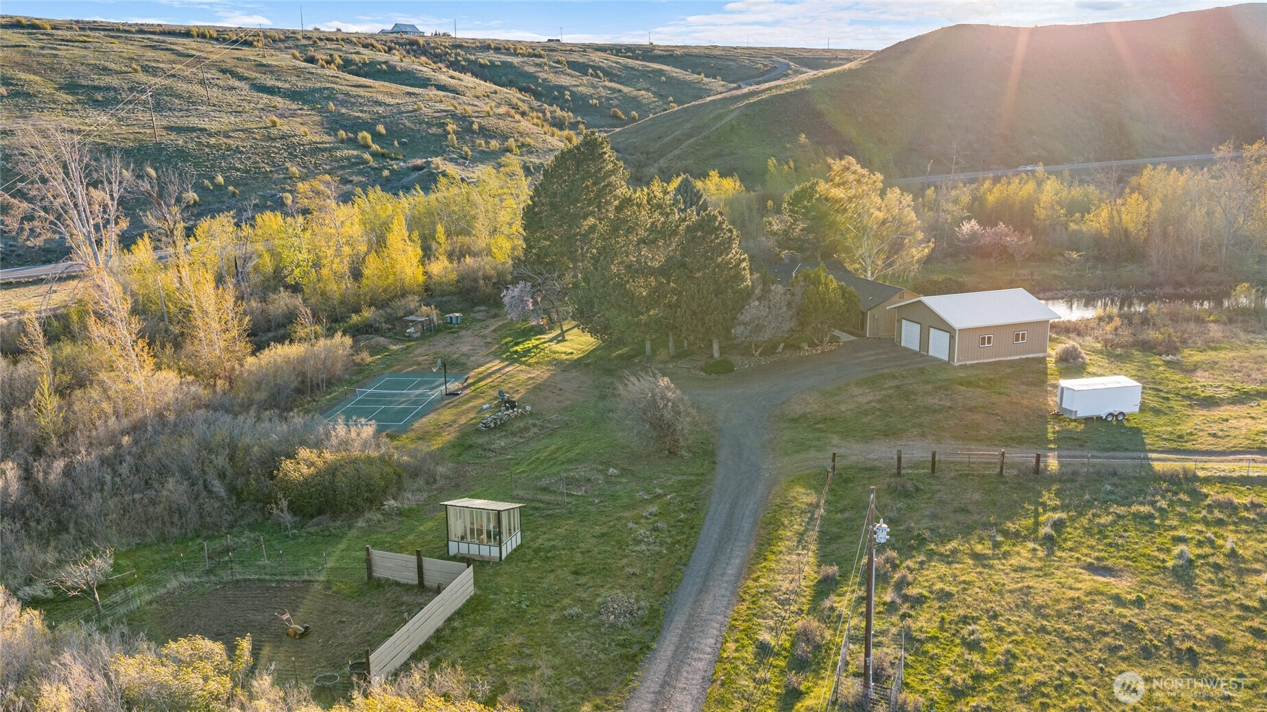 Welcome to your 23.8-acre private oasis. This charming 2-bedroom, 1.75-bath home offers a bright, inviting interior with skylights in the main living area and kitchen, filling the space with natural light. Enjoy peaceful views of the serene pond and the soothing sounds of a nearby creek. The thoughtfully updated kitchen features granite countertops, brand new stove/range and other newer appliances, freshly painted cabinetry, ceramic tile flooring, and a dedicated dining area. Beautiful oak and bamboo flooring run throughout the home, while a custom stonework wall and cozy pellet stove create a warm and welcoming focal point. Both the kitchen and primary bedroom open to a spacious deck surrounded by mature trees—perfect for seamless indoor-outdoor living. A private flex room with French doors and backyard access offers versatile space for a home office, guest retreat, or library, complete with built-in bookcases. The laundry area includes a brand-new washer and dryer along with convenient pantry storage. Outdoors, the property truly shines with 21 fruit and nut trees (including pear, apple, plum, and walnut), a sprinkler system, garden space, dog run, pickleball/basketball court, and a custom greenhouse. An additional 9.2 acres of open land provides endless possibilities for grazing, recreation, or expansion. A 2-car garage with insulated storage completes this exceptional property—offering the perfect blend of comfort, functionality, and peaceful country living.
