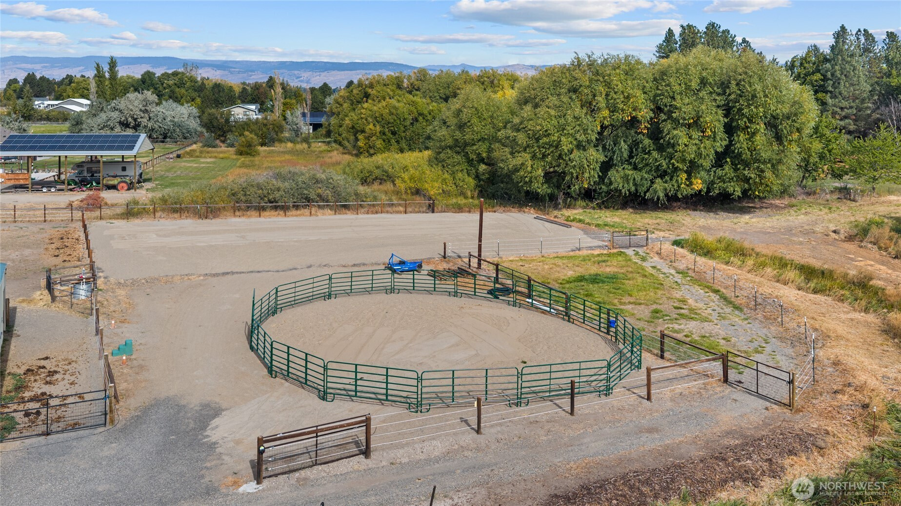 Private yet convenient and perfect for HORSES & Hobbies! This 3BR/2BA home on 3.5 irrigated acres, blends comfort & function. Great room w/gas fireplace flows into the upgraded kitchen w/NEW cabinets, quartz counters, open shelving details, tile floors, walk-in pantry + NEW large laundry/mudroom w/storage cabinets. Wide hall leads to 3 spacious bedrooms & baths stylishly updated with custom tile. Primary bathroom with tile floor & wall tile adding custom details along with new double vanity, walk-in tile shower & luxury soaking tub. Large spare bedrooms and upgraded hallway full bath. OUTSIDE you will find a large, protected patio with a private hot tub. Separate wind protected raised garden area ... your own 'farm to table' setup! Attached 2-car garage with shelving. Home stays comfortable with FA Heat & AC. DREAM 50x60 (3,000SF) heated SHOP/BARN w/200-amp power & office area. There are 3 run out stalls and a tack area along the east side of the shop in addition to hay storage. The land is well laid out - divided into 4 fenced areas (1 paddock area and 3 irrigated pastures), an outdoor arena, round pen and a shelter barn. There are fruit trees and plenty of space to keep the chicken happy. Sunrise-to-sunset valley views. Convenient to town & 10 minutes to both I-90 exits!