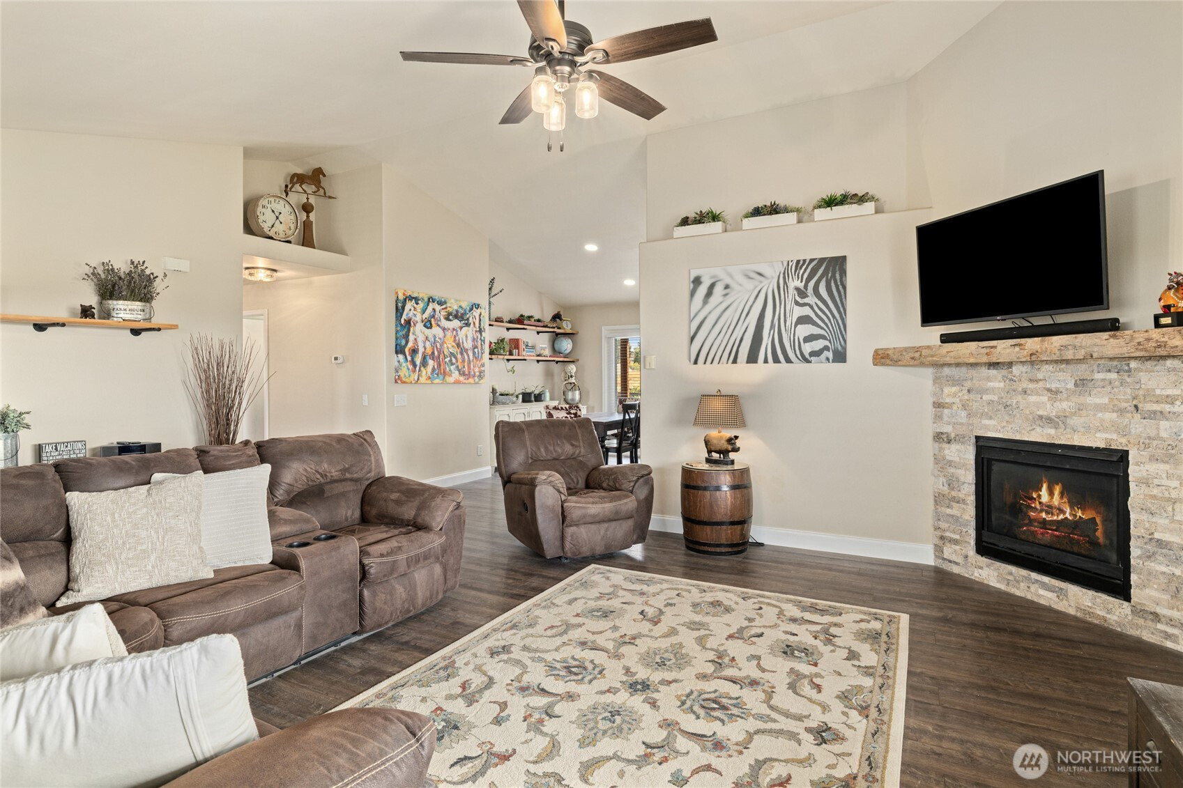 Private yet convenient and perfect for Hobbies and HORSES! This 3BR/2BA home on 3.5 acres, blends comfort & function. Great room w/gas fireplace flows into the NEW kitchen w/new cabinets, quartz counters, tile floors, walk-in pantry & NEW large laundry/mudroom w/cabinetry. Wide hall leads to 3 spacious bedrooms & baths stylishly updated with custom tile. Large, protected patio w/hot tub & separate protected raised garden area. Attached 2-car garage, FA Heat & AC. Dream 50x60 (3,000SF) heated shop w/200-amp power & office plus 3-stalls w/tack area, hay storage, paddock off the stalls. Outdoor arena, round pen & irrigated pasture. Fruit Trees. Sunrise-to-sunset valley views. Convenient to town & 10 minutes to both I-90 exits!