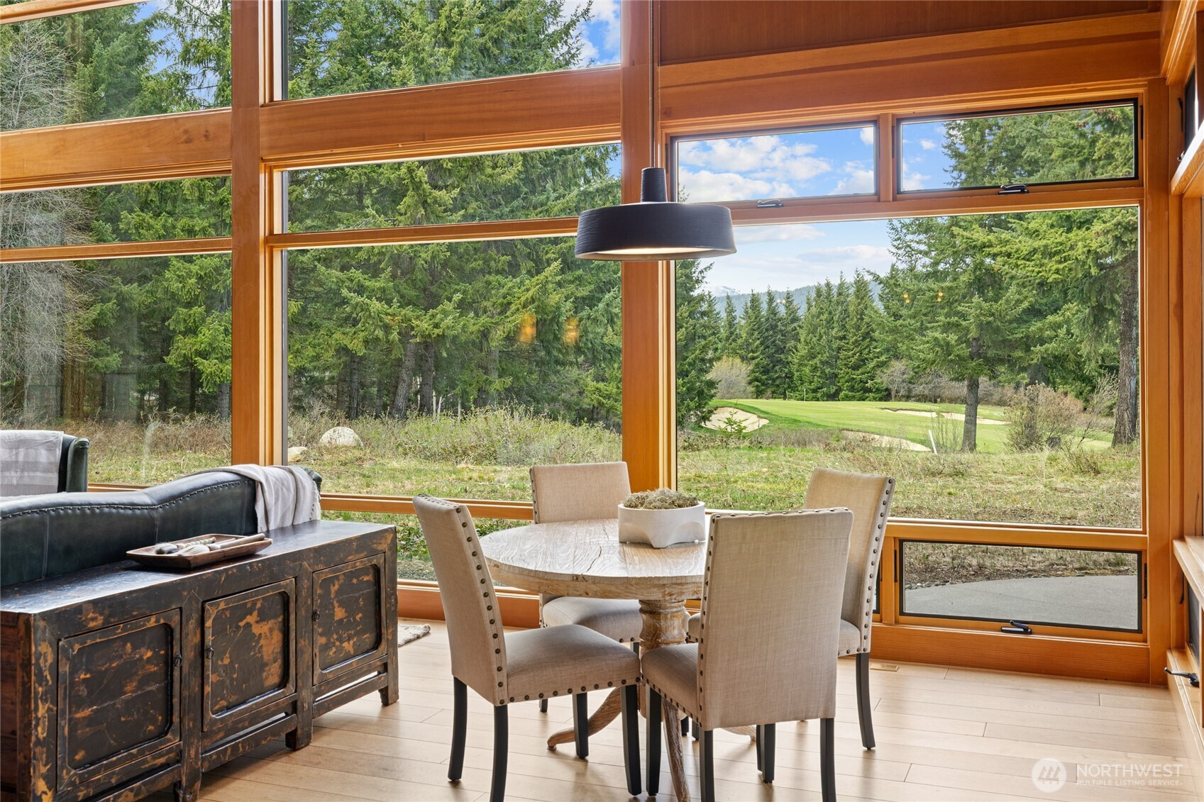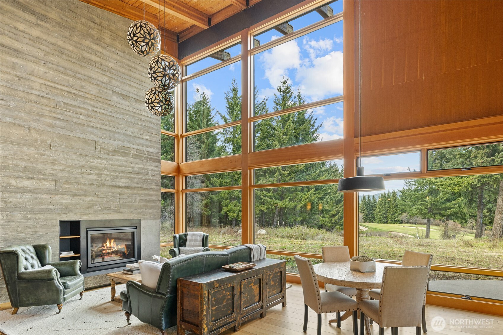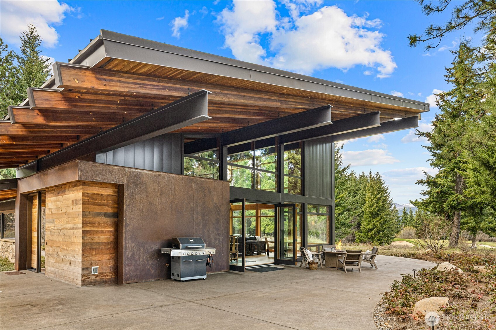 250 Leaden Queen Lane is a stunning mountain-modern retreat overlooking Tumble Creek’s 9th fairway, thoughtfully designed by Coates Design and built by Brock Smith Custom Homes. The home blends eco-luxury construction with dramatic steel-beam vaulted ceilings, expansive window walls, radiant in-floor heating, and seamless indoor-outdoor living through a striking NanaWall glass system. A showpiece chef’s kitchen with a custom zinc island, Monogram appliances, wet bar, and covered outdoor entertaining patio anchors the home’s refined lifestyle appeal. Additional standout features include a detached guest house, temperature-controlled wine room, EV-ready garage, solar panels, and spa-inspired designer finishes throughout. Set within the gated Tumble Creek community, the property offers direct access to championship golf, trails, clubhouse amenities, private beach access, and the full Suncadia resort lifestyle.