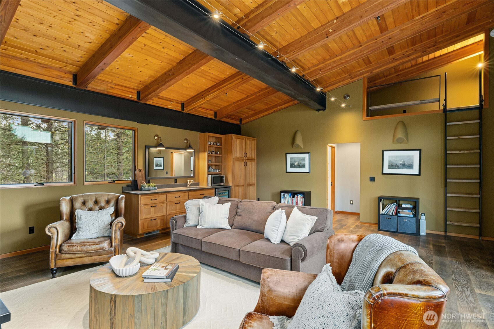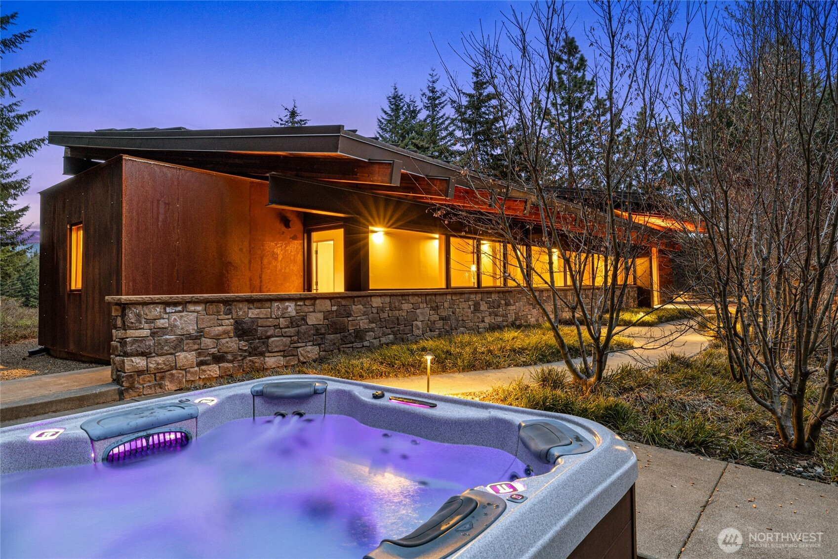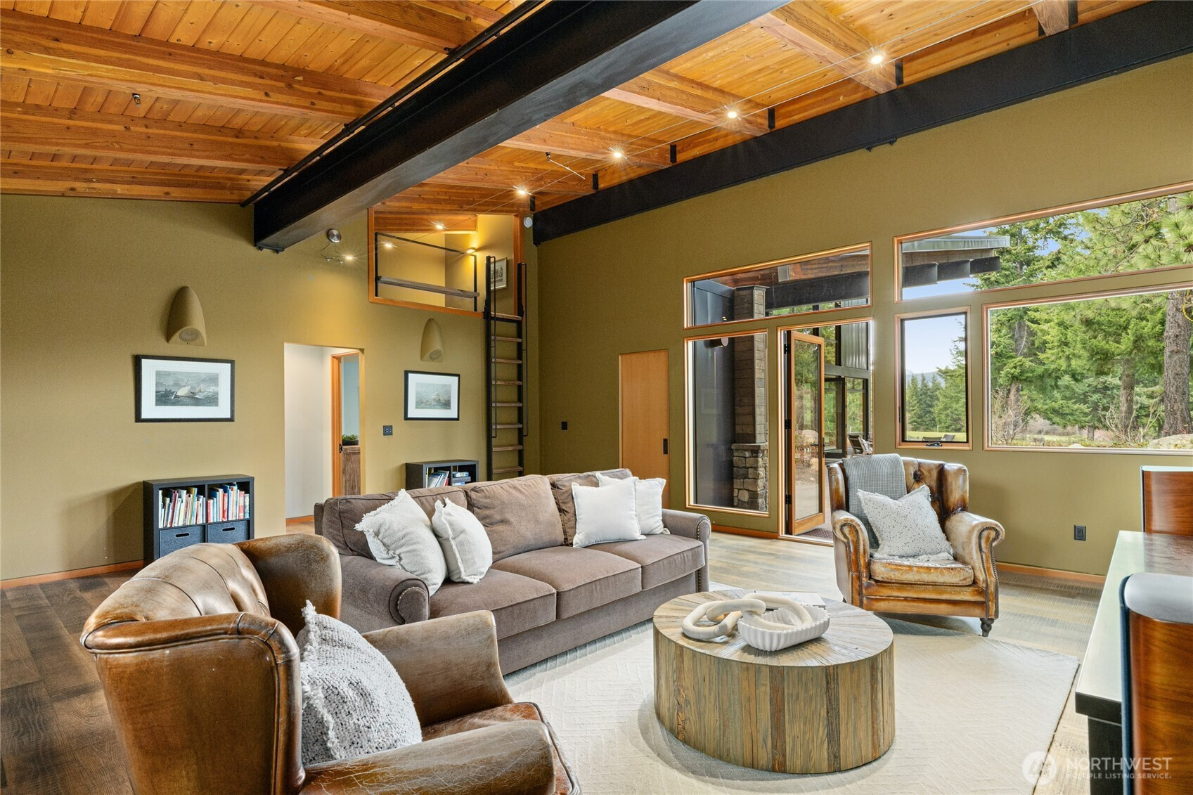 250 Leaden Queen Lane is a stunning mountain-modern retreat overlooking Tumble Creek’s 9th fairway, thoughtfully designed by Coates Design and built by Brock Smith Custom Homes. The home blends eco-luxury construction with dramatic steel-beam vaulted ceilings, expansive window walls, radiant in-floor heating, and seamless indoor-outdoor living through a striking NanaWall glass system. A showpiece chef’s kitchen with a custom zinc island, Monogram appliances, wet bar, and covered outdoor entertaining patio anchors the home’s refined lifestyle appeal. Additional standout features include a detached guest house, temperature-controlled wine room, EV-ready garage, solar panels, and spa-inspired designer finishes throughout. Set within the gated Tumble Creek community, the property offers direct access to championship golf, trails, clubhouse amenities, private beach access, and the full Suncadia resort lifestyle.