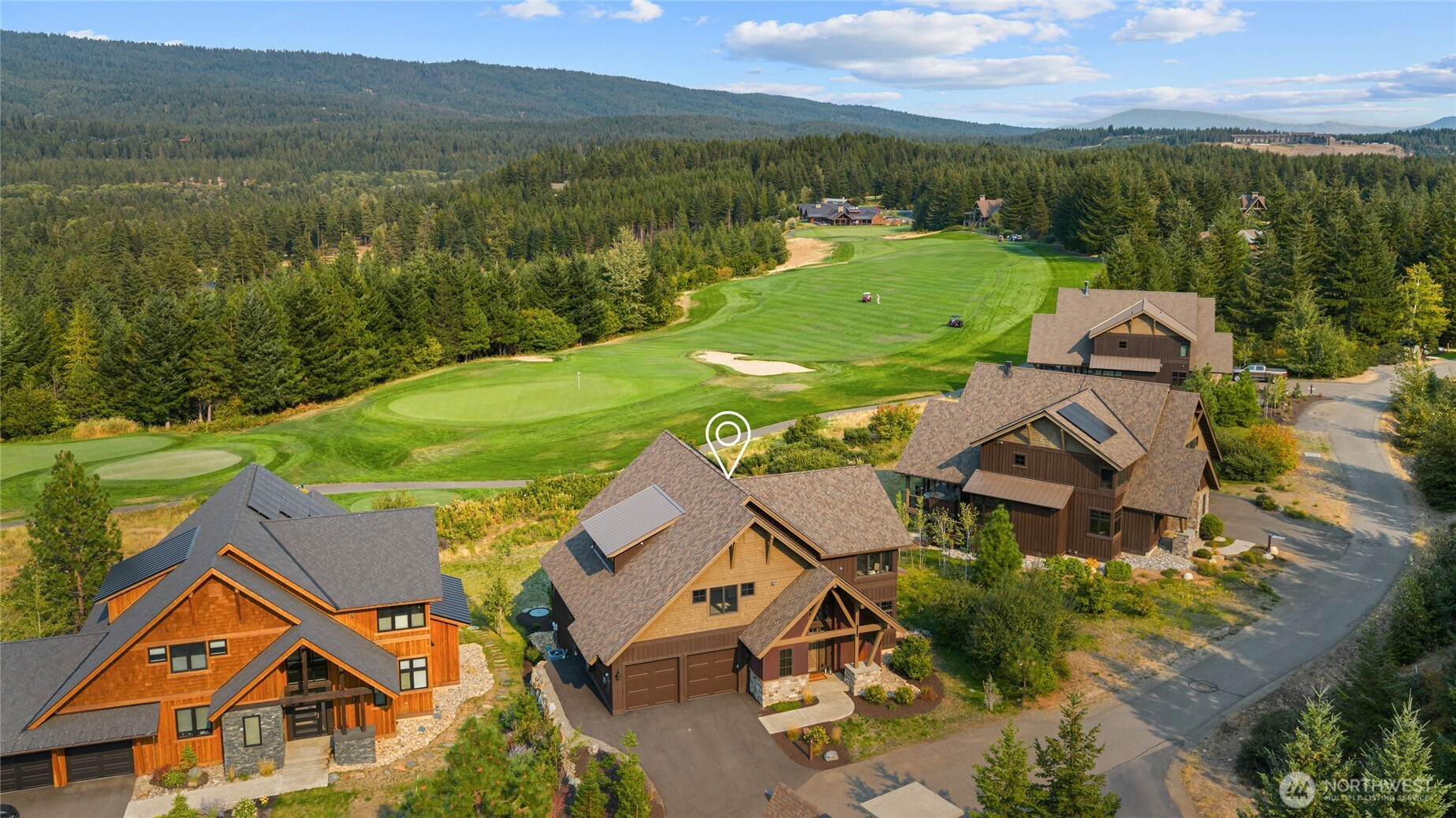 Exquisite Swiftwater Custom Home overlooking the 10th hole of the award-winning Tumble Creek Golf Club. Vaulted entry with exposed beams opens to a great room with stone fireplace and expansive windows. Chef’s kitchen features honed granite counters, large island, and commercial-grade appliances. Main-floor primary suite includes a spa-like bath with walk-in rain shower and heated floors. Upstairs offers 3 bedrooms with ensuite baths while the lower level includes a wet bar, bonus room, and bunk room. Outdoor living shines with a covered patio, built-in BBQ, gas fireplace, firepit and hot tub. All just a short cart ride to Tumble Creek amenities—Great House, pool, tennis, and pickleball. Just 80 miles from Seattle and Bellevue.