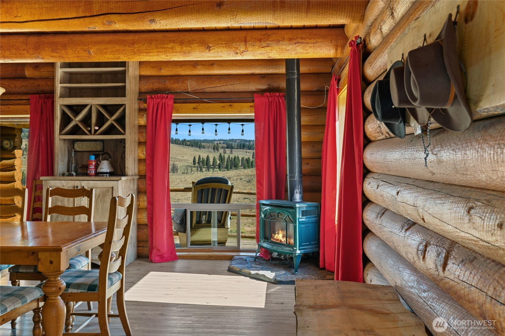 Incredible log home with sweeping views of rolling hills out of nearly every window. If you're looking for privacy and elbow room, you'll find it here, with more than 9 acres to play with. Soaring 25 ft ceilings, cozy fireplaces at every turn and a chef's dream kitchen. Two primary bedrooms and a large-sized guest room. Loft makes a perfect reading nook. Live off the grid in confidence with new solar panels and new generator and propane; well water with new pump. New metal roof. Starlink installed for high-speed internet. Tons of space for all your toys, RV parking, ATV's etc. Newly built horse stables and pen, plenty of space for a hobby farm, chickens and goats. Newly grated outdoor ice rink for winter fun. Don't miss this opportunity!