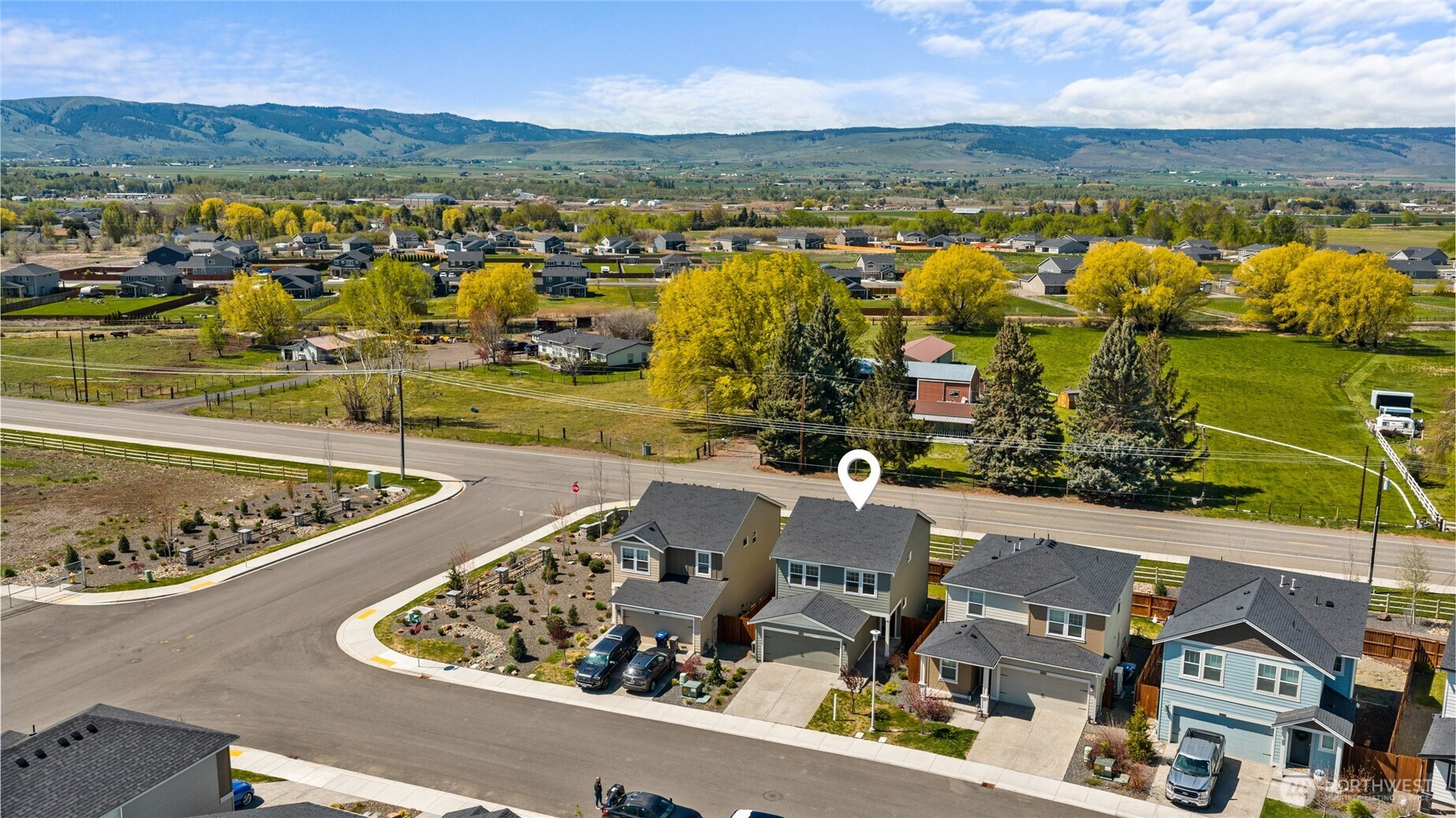 Welcome home to Black Horse at Whiskey Creek, where rural tranquility meets everyday convenience. Nestled in the Kittitas Valley just minutes from downtown Ellensburg and with quick access to I-90, you get the peace of wide-open spaces with easy connectivity. This thoughtfully designed popular Laurel floorplan built in 2022, has 3 bedrooms/2.5 baths, set on a level, fully fenced lot with an open layout, tech niche, solid quartz countertops, full-height tile backsplash, stainless undermount sink, stainless steel appliances, gas cooktop, garage freezer and heat pump for year-round comfort. Enjoy all the benefits of nearly new construction with two-car garage and relax in the newly landscaped backyard as you watch spectacular sunsets. Whether you're a first-time buyer, investor (rentals allowed), or looking to downsize, this home checks every box. Community amenities include a park, paved roads, sidewalks, walking trails, and streetlights, all just 3.8 miles from CWU, local dining, shops, and endless outdoor recreation.