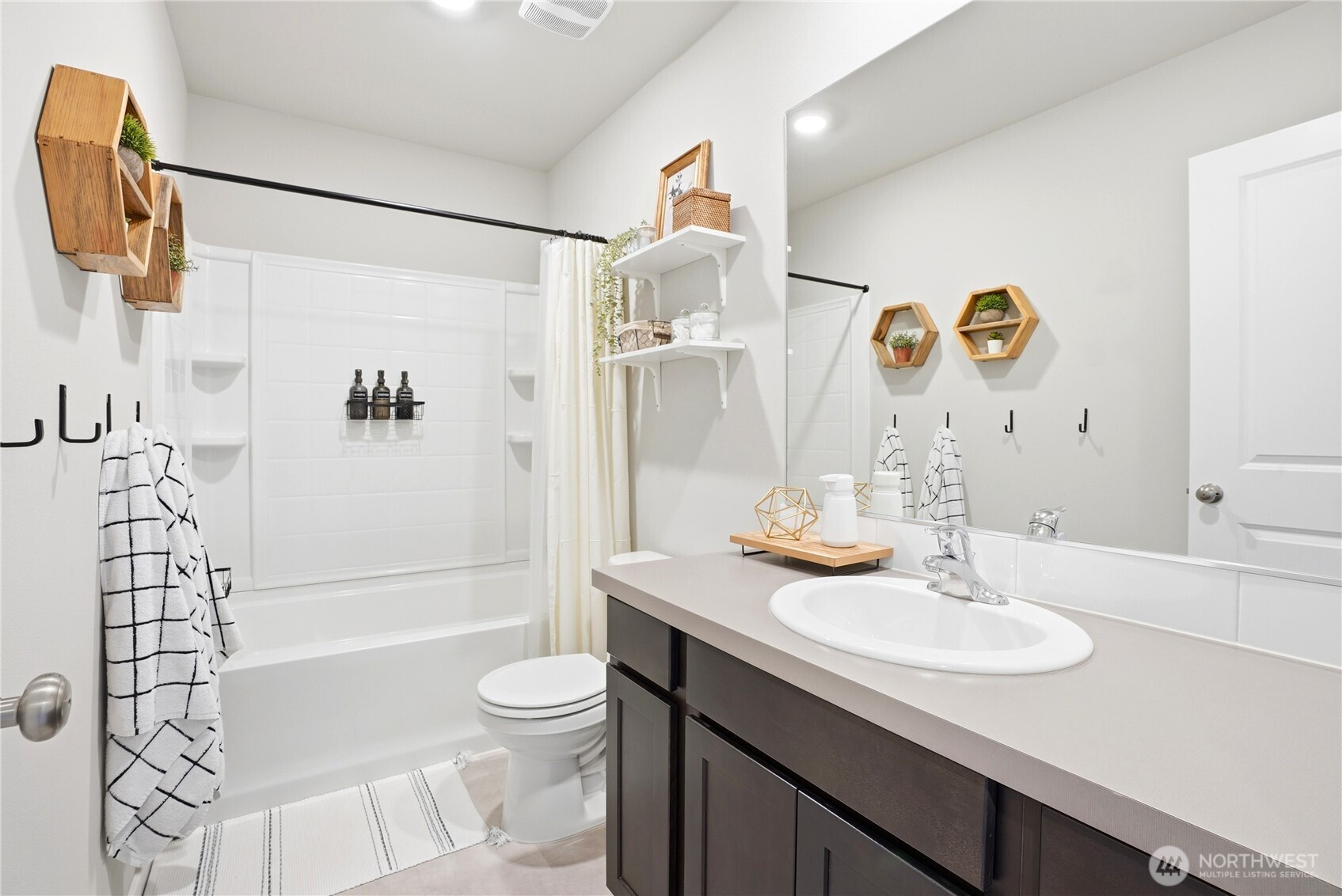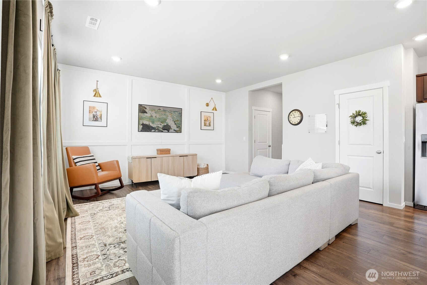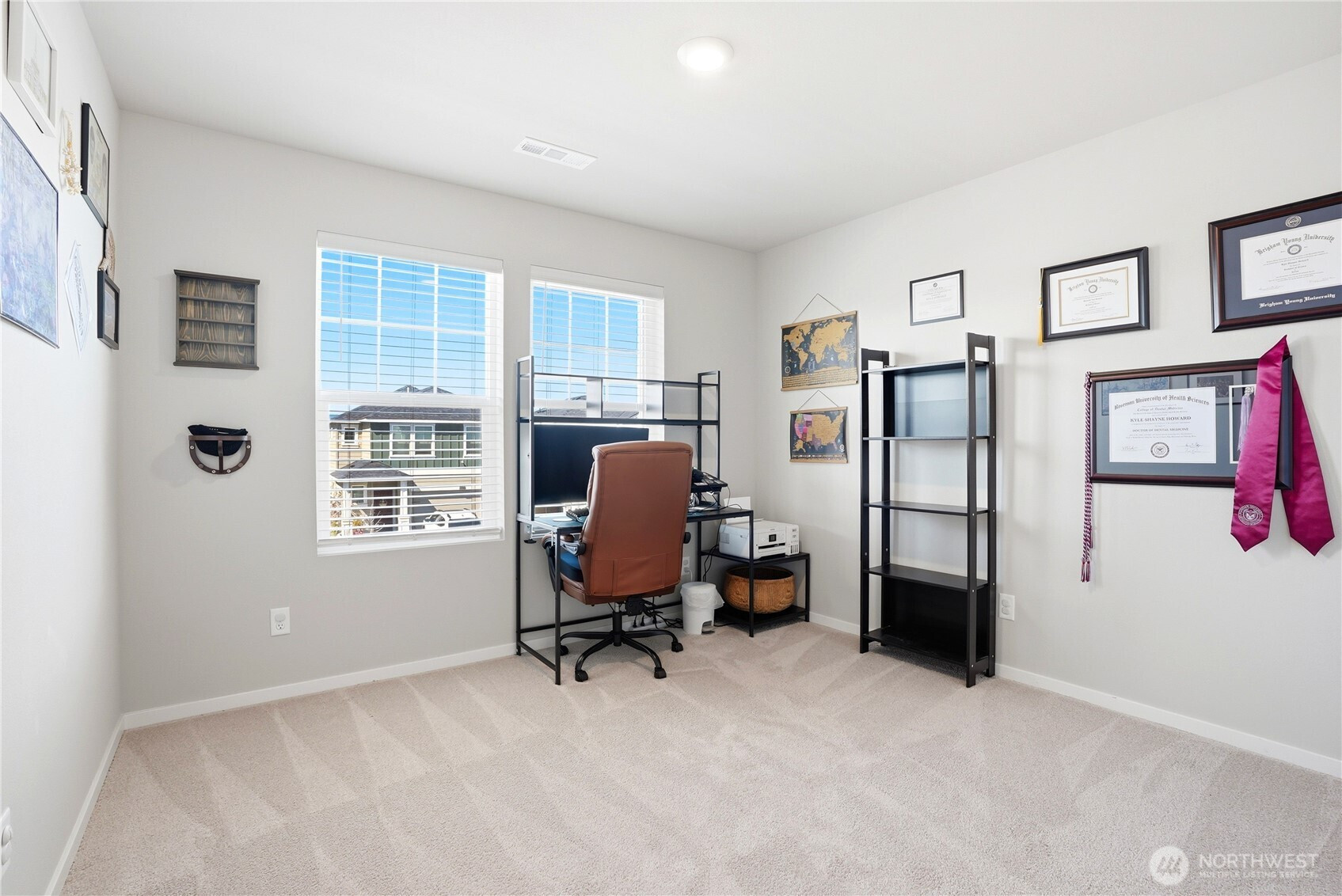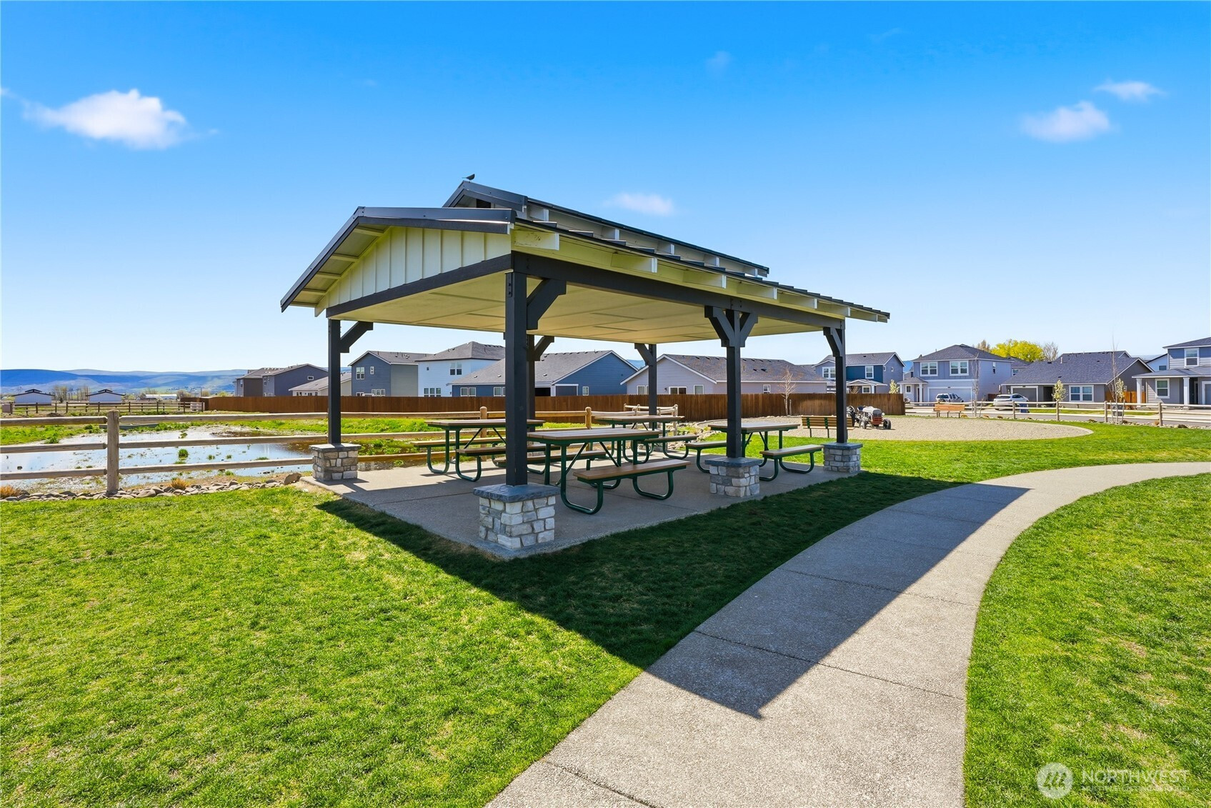 Better than new and the photos prove it. This 2022 DR Horton home in Phase 1 of Black Horse at Whiskey Creek has the finishes the newest builds left behind, plus the character the owners brought with them. Step inside to a welcoming entryway with board and batten detail, warm laminate hardwood floors, and a staircase that flows effortlessly into the open living space. The main level is bright and airy with 9-foot ceilings, a stylish living room featuring a custom shiplap accent wall, and a kitchen equipped with a gas stove, quartz countertops, and tile backsplash — the upgrades that matter. Upstairs, the primary suite is a true retreat with a designer board and batten feature wall, carpet, and plenty of natural light. Every room in this home has been thoughtfully cared for and tastefully finished. Move-in ready means actually ready — all appliances included, garage door opener installed, yard fully fenced and landscaped. The neighborhood does the rest: playground, paved paths, and irrigation water all covered through a low $86/month HOA.