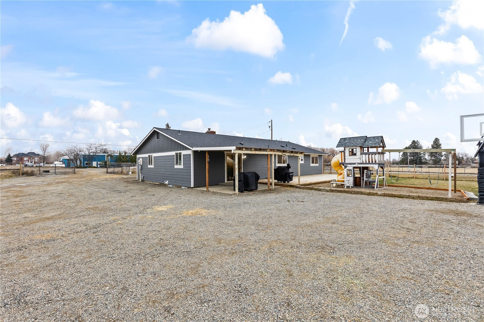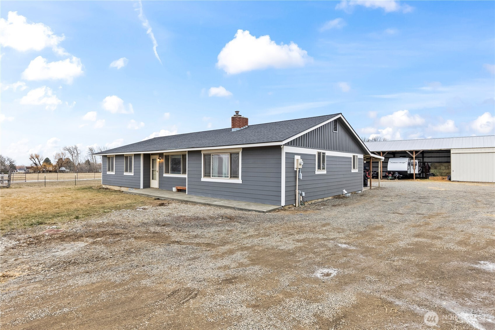 This well-maintained country property offers the perfect blend of privacy and convenience, located close to town on 3 usable acres. The home features 3 bedrooms and 2 bathrooms with a detached garage, plus a 24x24 utility building and an additional 36x24 covered storage area, providing excellent space for equipment, toys, or projects. The fully fenced pasture is ready for horses or other animals. Inside, the beautifully remodeled kitchen features custom cabinetry and opens seamlessly to a comfortable, open floor plan.. An additional living or bonus room off the dining area offers flexible space for an office, playroom, or second living area. Outside, enjoy inviting outdoor living areas, brand new Hardie Plank siding, fresh exterior paint, a welcoming front porch with plenty of space to enjoy. This is a rare opportunity to enjoy updated country living with room to spread out while staying close to town.