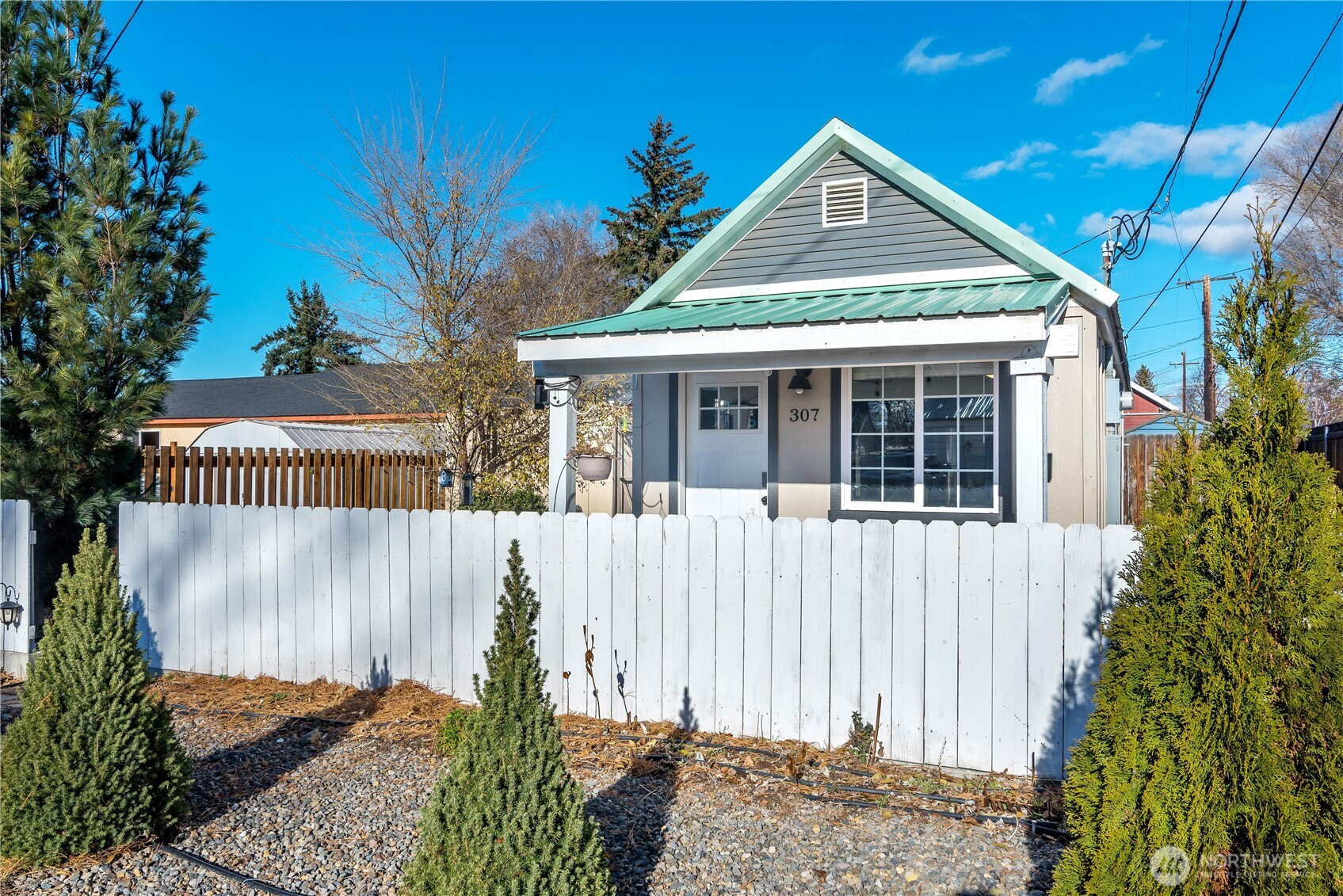 Welcome to this picture-perfect 1-bedroom, 1-bath home that combines cozy living with modern touches. Inside, enjoy a refreshed interior with stainless steel appliances, an all-in-one washer/dryer, and inviting finishes that make the space feel bright and comfortable. A flagstone pathway leads you to the welconing covered front porch—ideal for relaxing and taking in the quiet neighborhood feel Out back, unwind around the firepit, make use of the convenient storage outbuilding, and appreciate the fenced yard with room for outdoor enjoyment. With driveway parking and a low-maintenance layout, this adorable home is ideal for those looking for simplicity, charm, and easy living right in the heart of Kittitas.