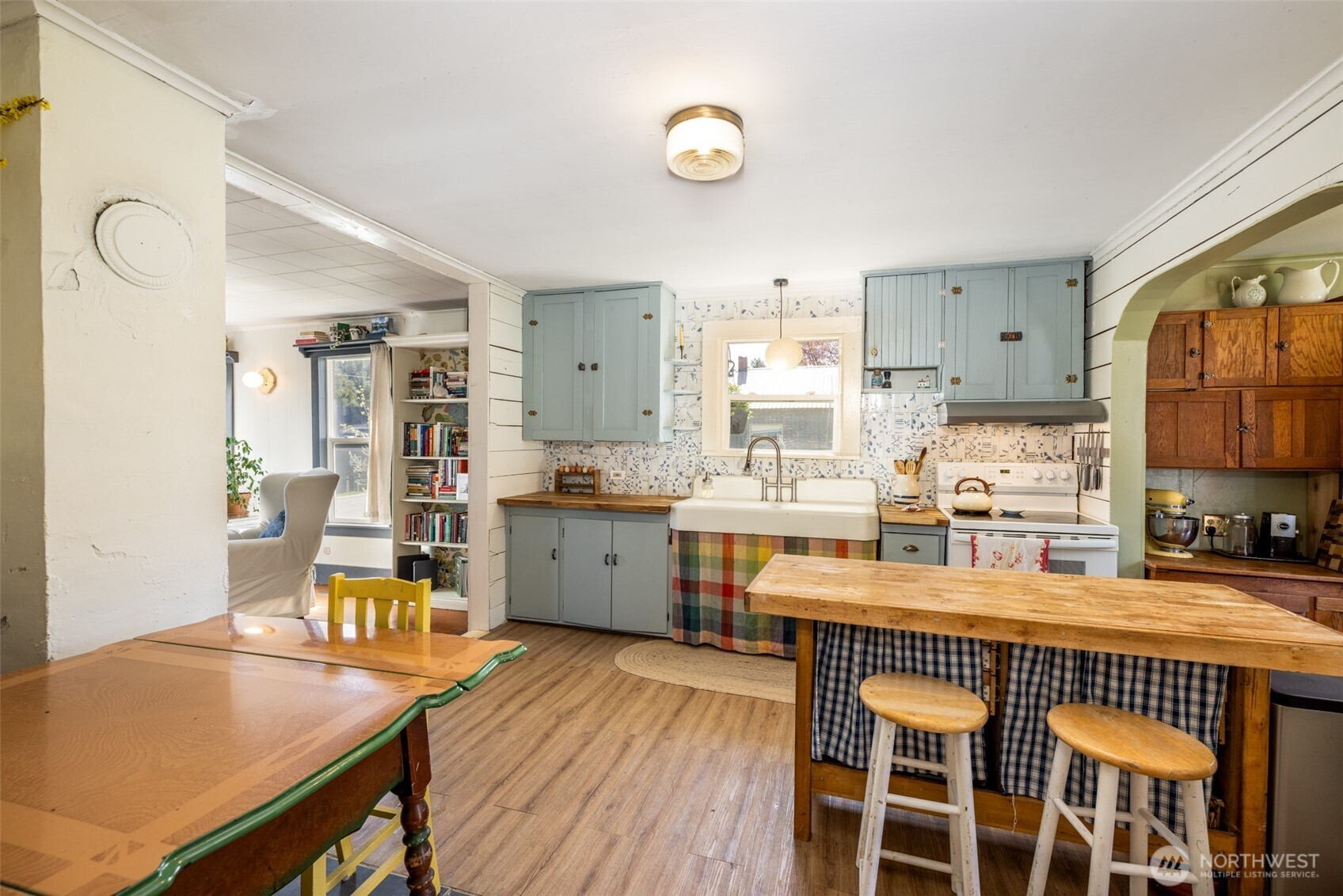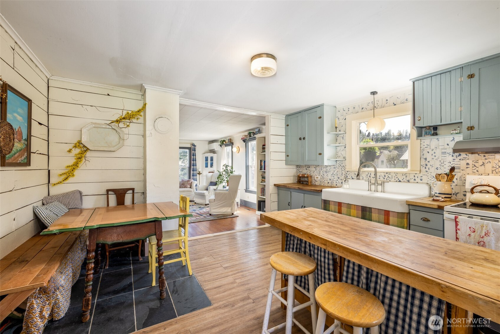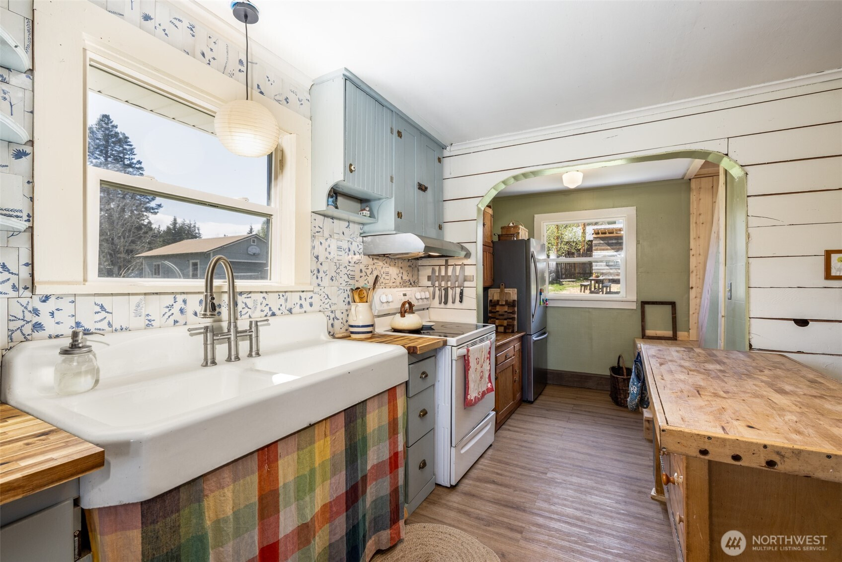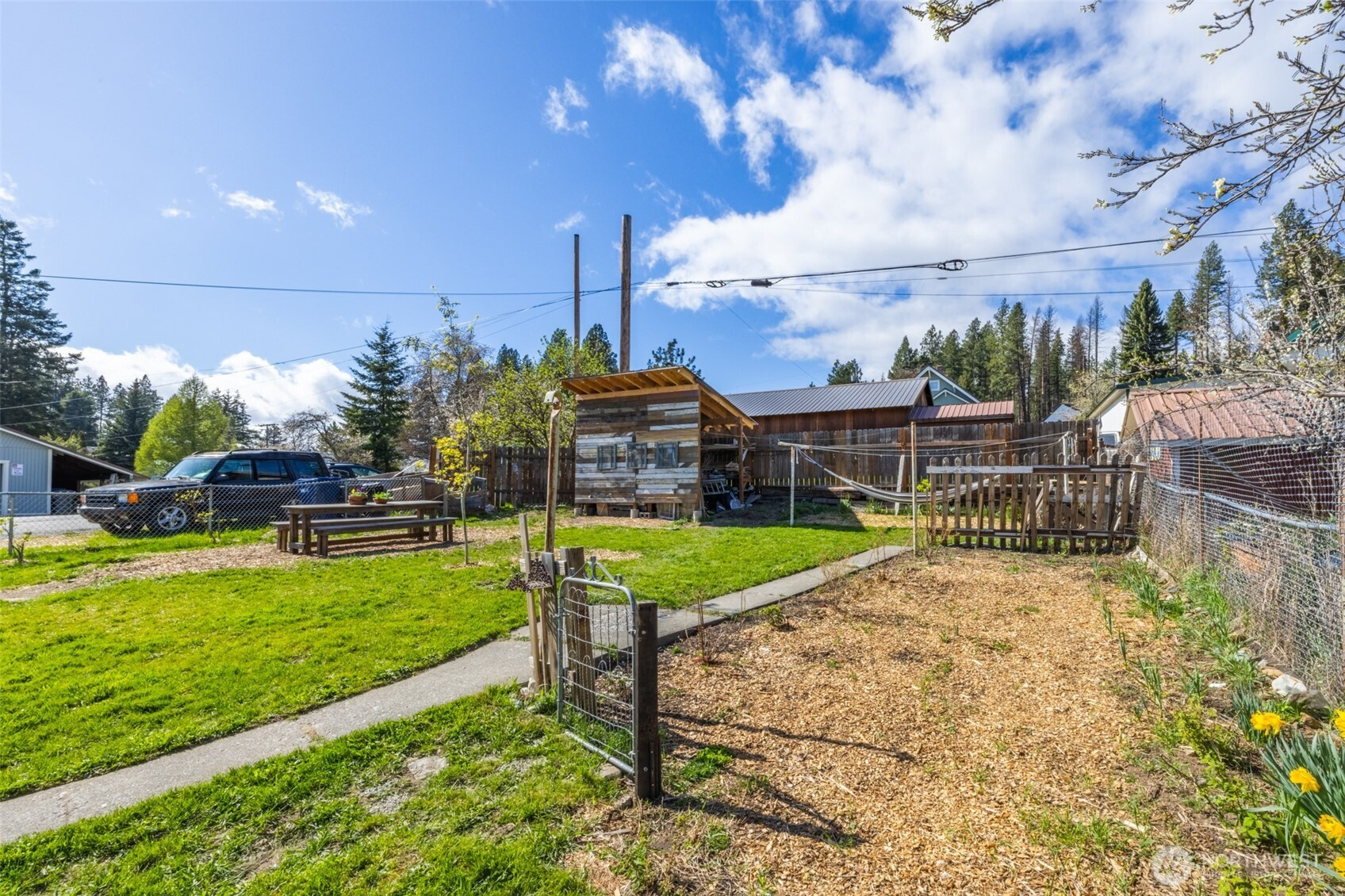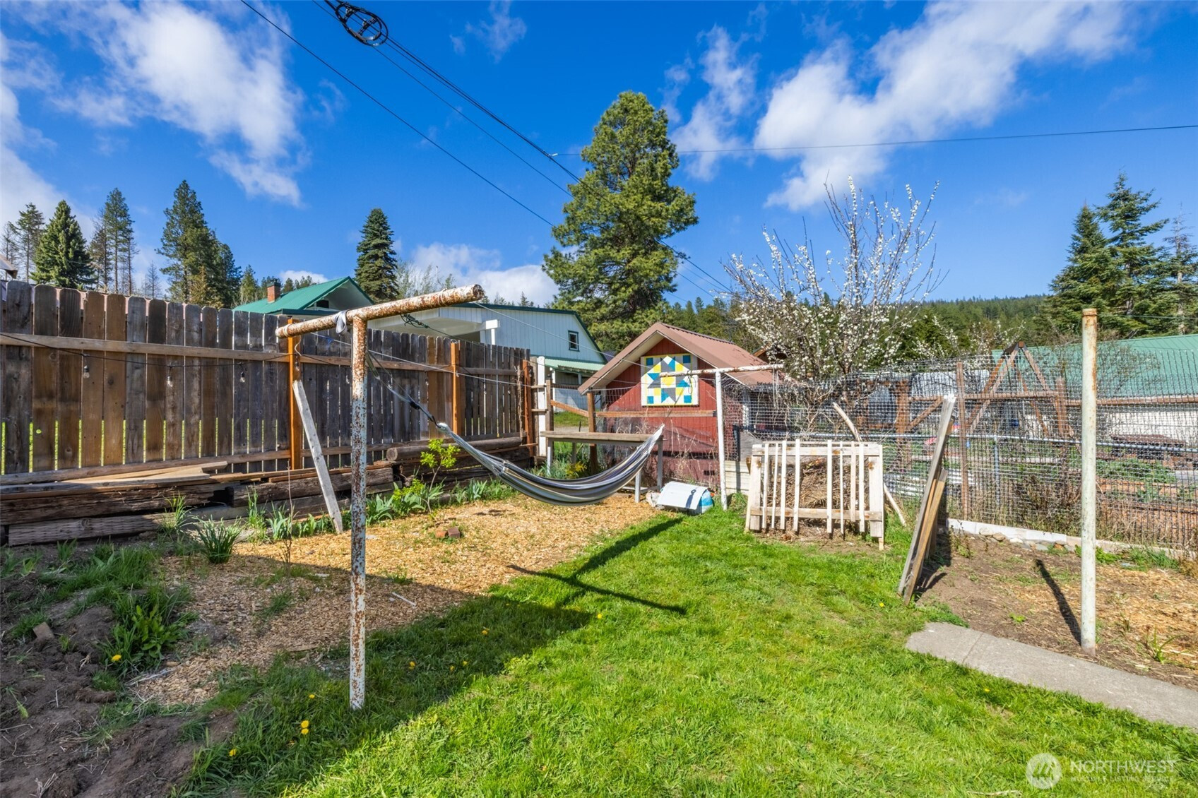 Nestled in a sunny corner of Roslyn, this inviting home offers the perfect blend of small-town charm and outdoor access. Enjoy nearby trails right out your back door and Pioneer Park just below, along with scenic views of Peoh Point and Roslyn Ridge. Located in town, you're close to historic amenities while still just a short drive to Lake Cle Elum, Salmon La Sac, and Cooper Lake. This thoughtfully updated two-bedroom, one-bath home features main-floor living designed for comfort and ease. Inside, you'll find a spacious living room and a warm, welcoming atmosphere where country-inspired updates blend seamlessly with timeless character—no detail overlooked. Set on an oversized, fully fenced corner lot, the property provides ample space for gardening, chickens, and future expansion. The large yard also includes multiple storage sheds with easy access. Efficient and cozy year-round, the home stays cool in the summer and warm in the winter. With its prime location near parks, trails, and town amenities, this property offers a rare opportunity to enjoy country charm with in-town convenience.