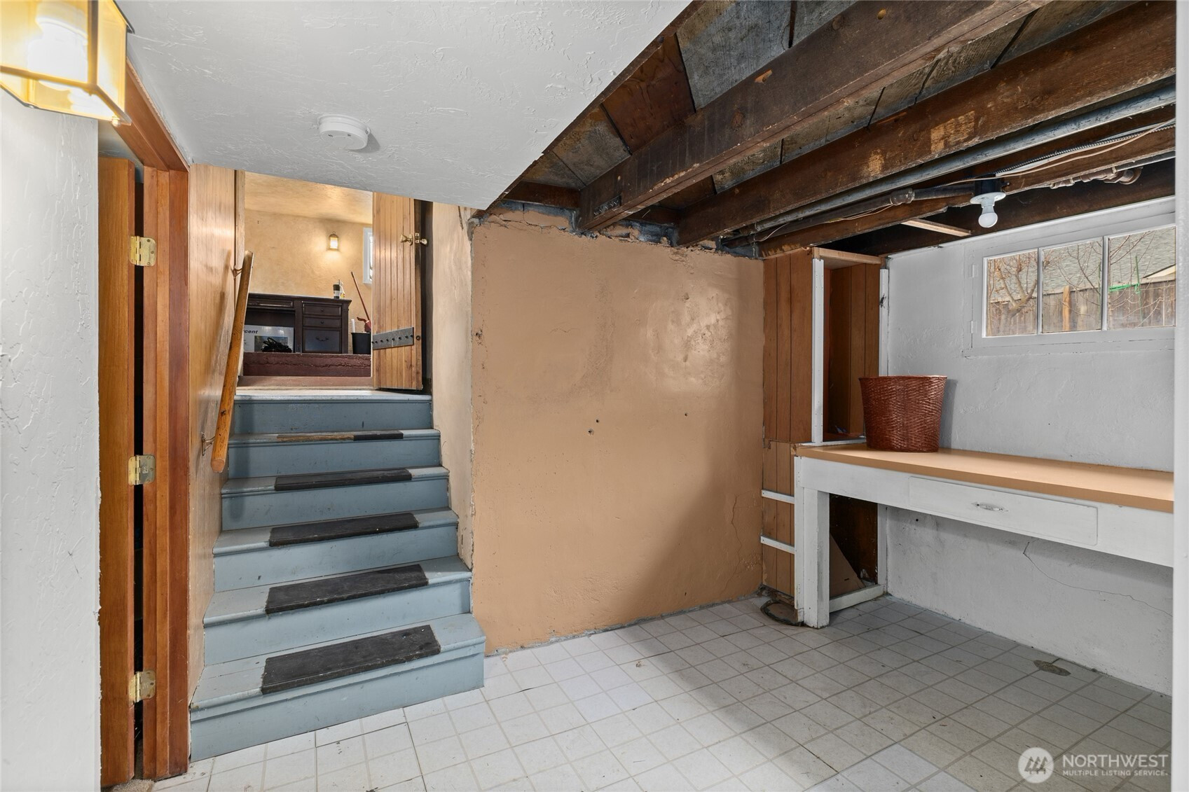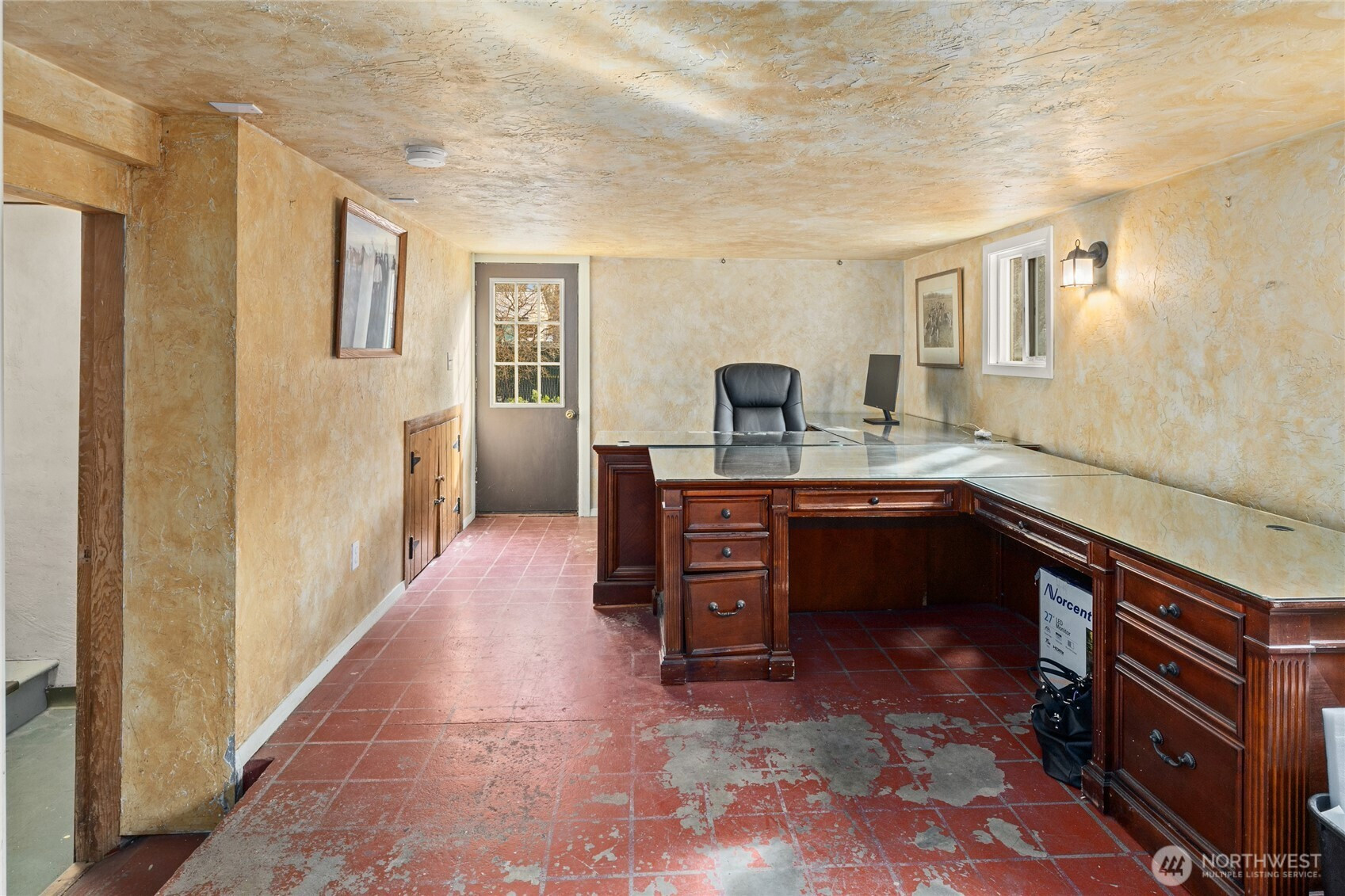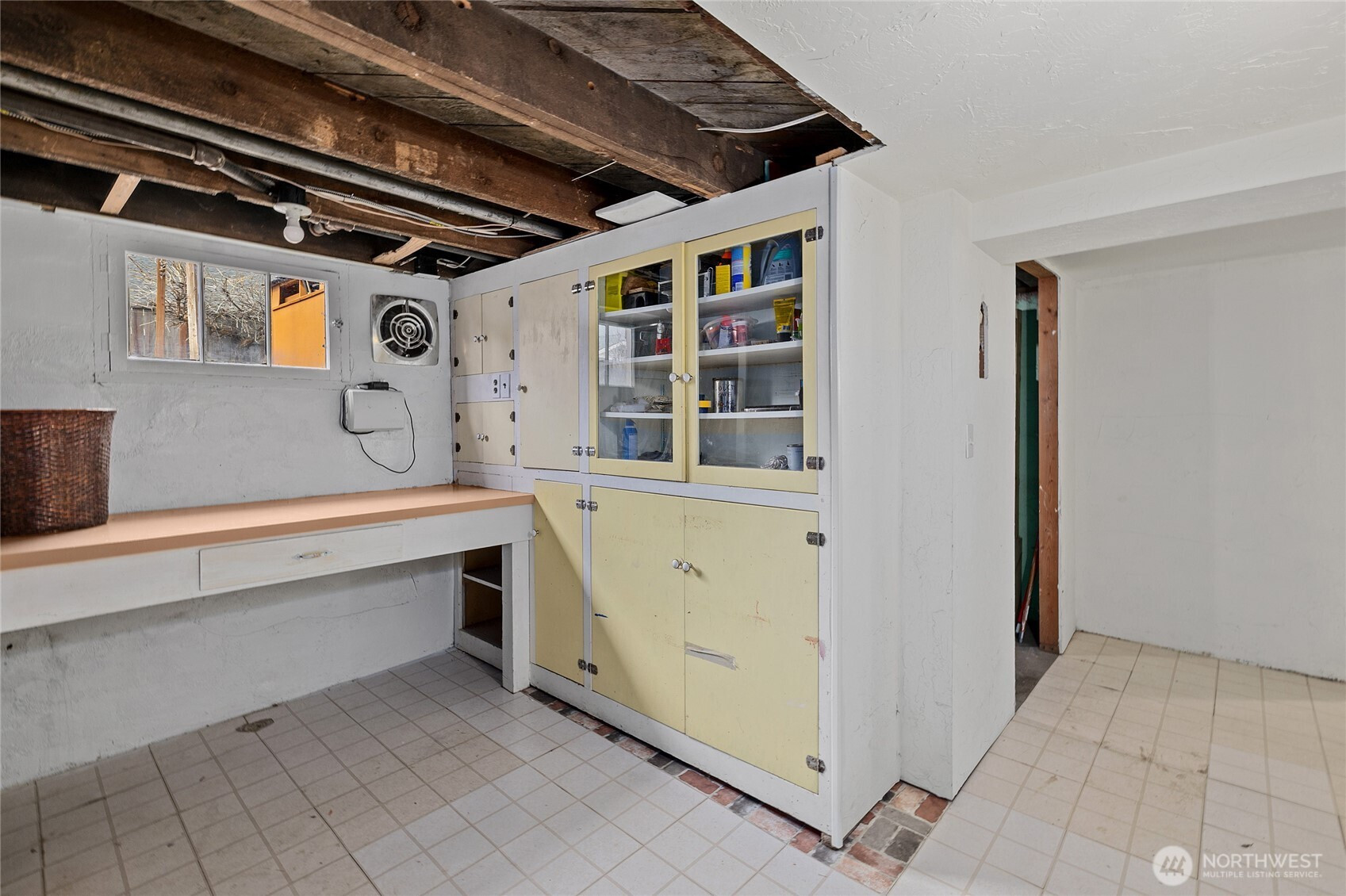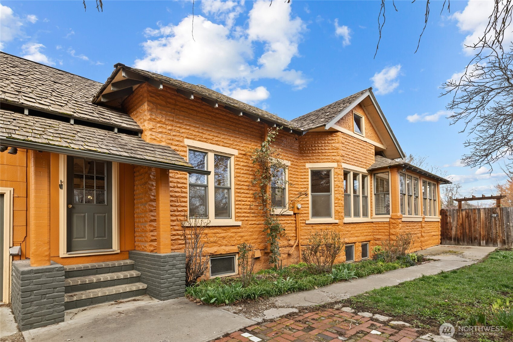 Historic charm and craftsmanship shine in this charming home located in the original Ellensburg Fruitlands District, built by the Farrell Brothers and rich with character. Distinctive rusticated concrete block—believed to have been created using a Sears Triumph Wizard block machine—adds architectural intrigue, while the unique curved enclosed front porch creates a welcoming first impression. Inside, original woodwork and hardwood floors span the main level, showcasing timeless quality. The home features 3 bedrooms and 2 full baths, plus two additional finished rooms in the basement—ideal for guests, hobbies, or flexible living space. Major updates include newer windows, fully updated electrical, and replaced plumbing waste lines. Situated on an extra-large lot with mature landscaping, the outdoor space is truly special. Enjoy established fruit trees, a graceful corkscrew willow, colorful perennials, a private patio for relaxing or entertaining, and even a bocce ball court. A large carport and additional off-street parking provide convenience and flexibility. Zoned Office Residential, the property also offers dedicated access to a back office space—perfect for working from home, a small business, or creative studio. Located just minutes from schools, parks, and downtown Ellensburg, this unique property blends historic charm, thoughtful updates, and versatile living.