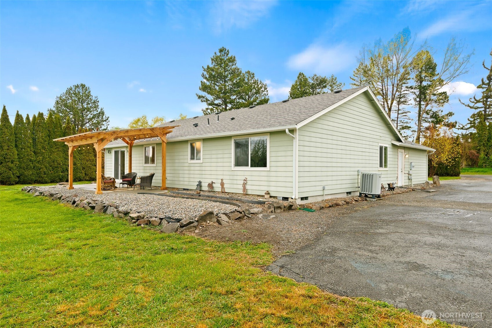 This beautifully refreshed single-level, 3 bedroom, 1.75 bath retreat sits on 1.53 acres just east of historic downtown Ellensburg. Pull into the circular drive off the private lane and step inside to a vaulted great room filled with natural light, now complemented by newer flooring, interior paint and blinds that create a clean, modern feel throughout. The open-concept kitchen remains the heart of the home—perfect for entertaining with its island seating and abundant cabinet storage. Start your mornings with coffee or unwind in the evenings under the newly added pergola, where the protected back patio invites you to relax and take in views of the fenced pasture. The 1.53 acres offers that ideal balance of space and manageability, complete with room for projects, animals, or hobbies thanks to the versatile shop/barn. Mature landscaping ties it all together, creating a setting that feels both private and welcoming. A move-in ready property with thoughtful upgrades, offering the lifestyle you’ve been waiting for.