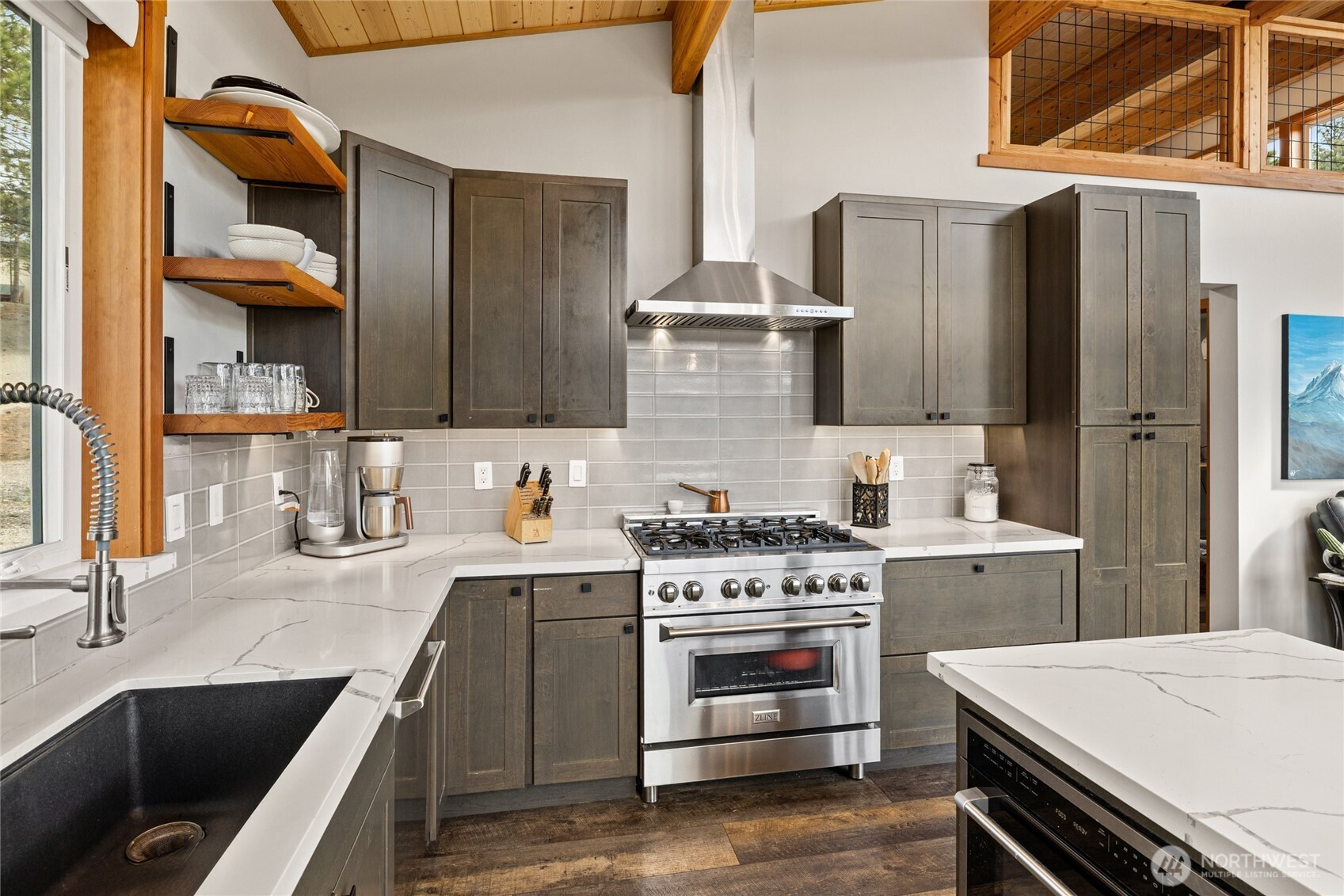 Set above the Peoh Valley with sweeping, unobstructed views across the tree canopy, this mountain luxury compound offers a total of 2,271sqft w/ a blend of privacy, craftsmanship & infrastructure—just minutes from Cle Elum yet a world away.The 2022 built 1,148 sq ft Lindal cedar main home showcases floor to ceiling windows, exposed glulam beams & pine tongue-&-groove ceilings, creating a warm, architectural interior that embraces its natural surroundings. The quartz kitchen with ZLINE appliances anchors the living space, complemented by a wood stove & a generous view deck perfect for relaxing or entertaining. Two additional living spaces provide exceptional flexibility: a 762 sq ft log cabin with loft bedroom, kitchen, bath & laundry, plus a 361 sq ft custom guest cabin w/ kitchenette & bath—ideal for guests, multi-generational living, or income potential while maintaining privacy. Fully finished 60x40 shop with it's own 200A panel, slab floors, heating/cooling & 16-ft ceilings offers outstanding utility for work, recreation/vehicles, & useful storage.The property also features a state of the art solar system with battery storage & generator backup for seamless, reliable energy day to day & in emergencies. Additional highlights include a deer-fenced orchard, raised garden beds, chicken coop, multiple outbuildings, extra water tank, & open acreage for expansion. A truly unique opportunity to own a turnkey mountain retreat with modern systems, independence, & endless potential.