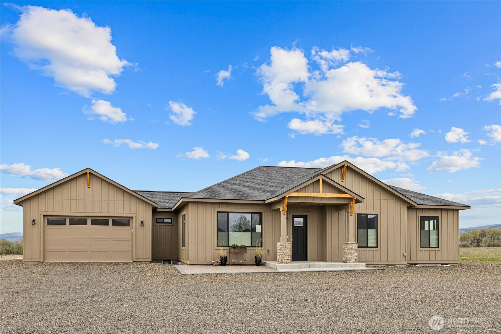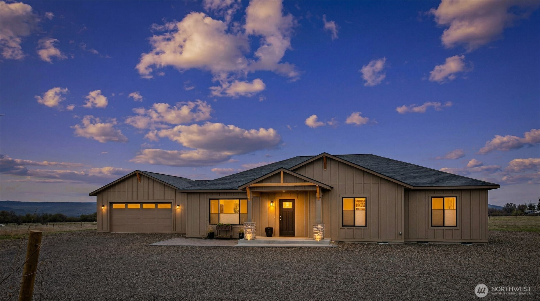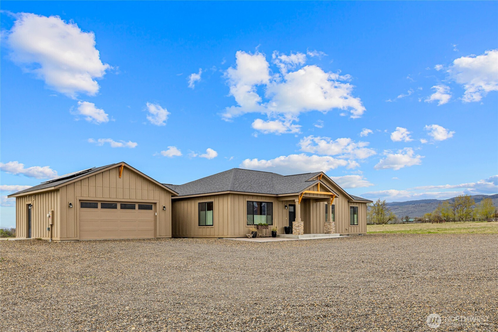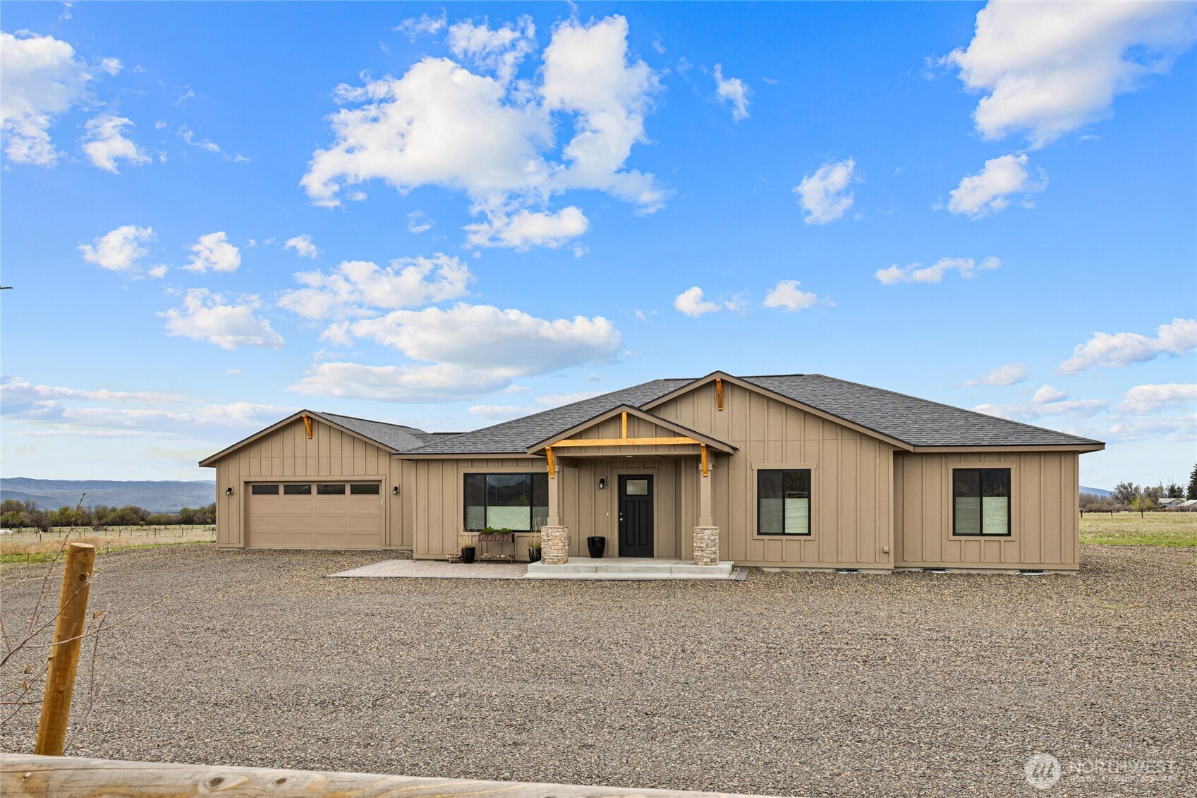 Discover this captivating, move-in ready horse property built in 2023, nestled on 3 serene acres in a peaceful East County setting, surrounded by sweeping views and natural beauty. This 1,860 sq. ft. Lexar home features 3 bedrooms and 2.5 baths, with a light-filled open-concept layout, quartz countertops, soft-close cabinetry, and stylish laminate wood and tile flooring throughout. French doors open to inviting covered front and back patios—perfect for soaking in quiet mornings, golden sunsets, and the tranquil landscape that surrounds you. Thoughtful upgrades like custom top-down/bottom-up blinds, an auto-light front porch, and a dining space with a warm dawn-to-dusk dimmer add comfort and charm. Built for both efficiency and lifestyle, the home includes forced-air HVAC and a two-car garage with solar panels. Outside, enjoy an enclosed space for horses or other animals (close to an acre) with a 5-foot, four-rail custom fence, a Palouse Ranch metal-framed shed, and drip irrigation for nine beautiful birch trees. A strong 300-ft well (12 GPM) provides reliable water for home and livestock, complemented by two frost-free spigots. The extensive High Country French drain system ensures excellent drainage, while the septic system is designed for up to a 5-bedroom home—offering room to grow. Where modern living meets wide-open space, scenic vistas, and peaceful surroundings, this property is ready to welcome your animals, your dreams, and your next adventure.