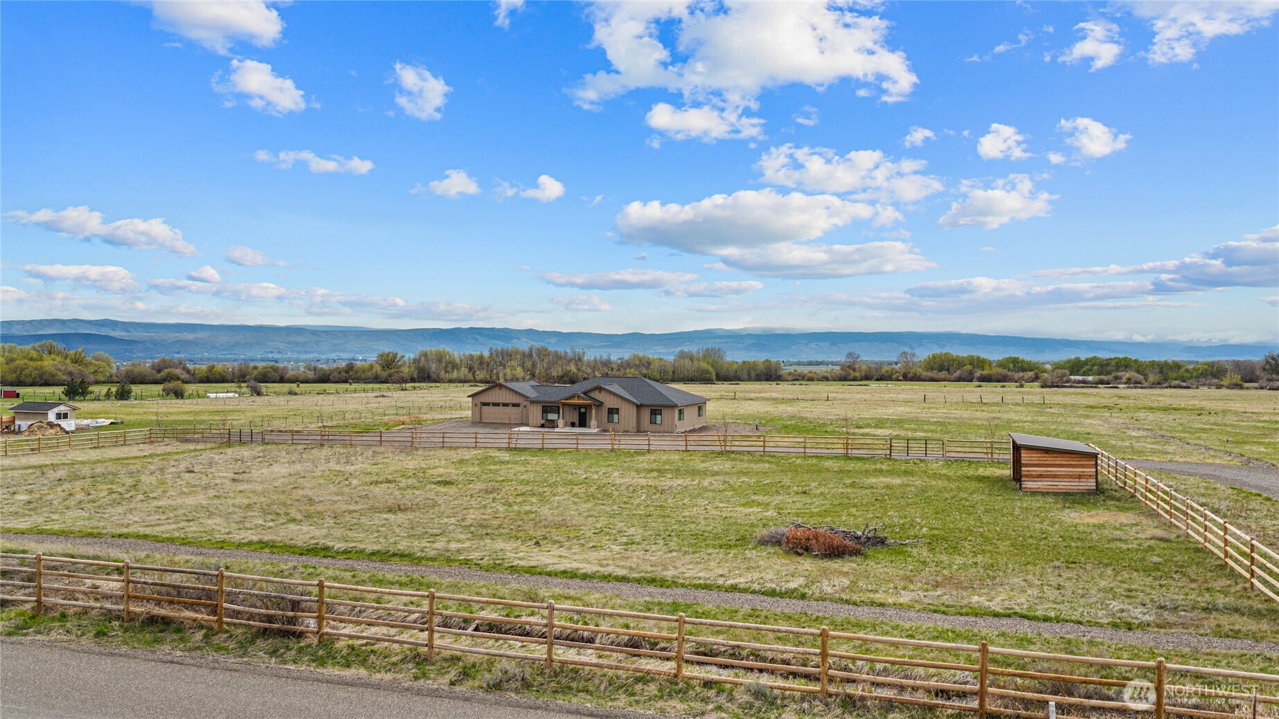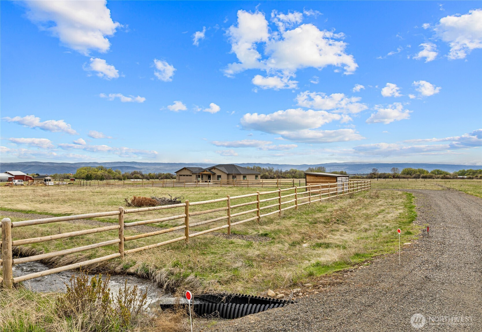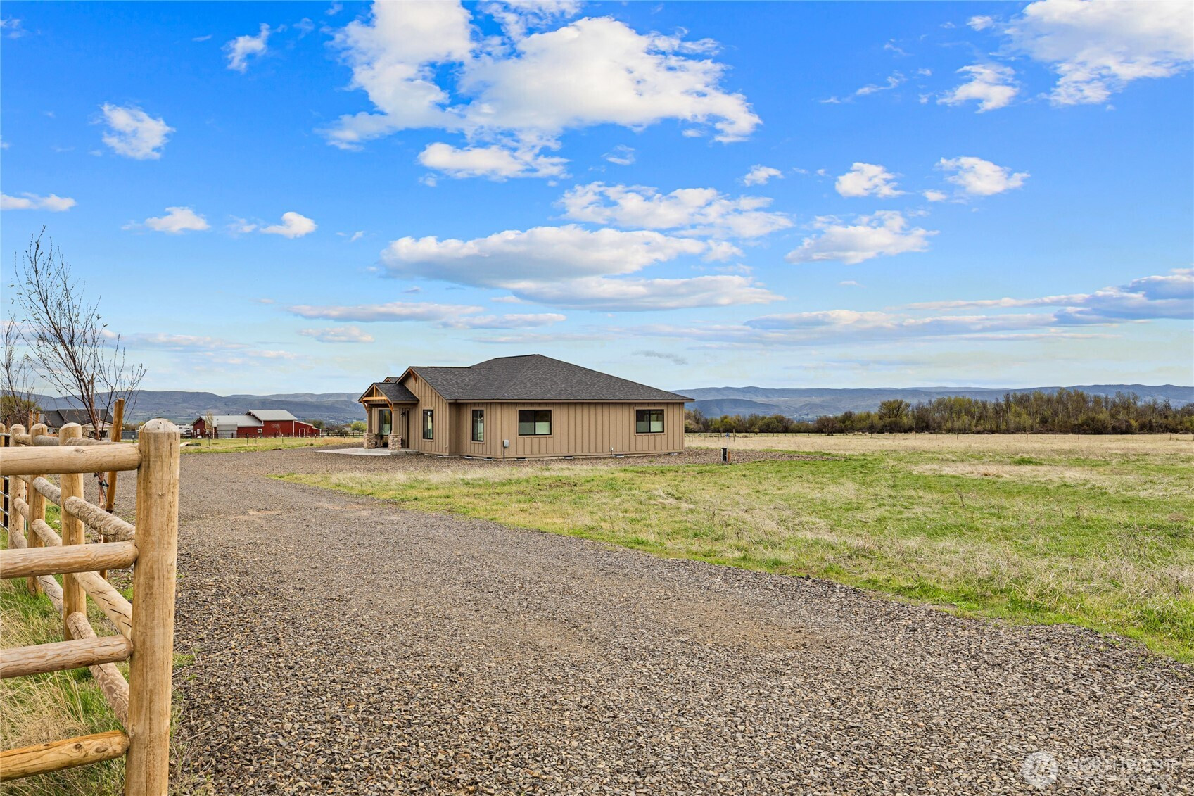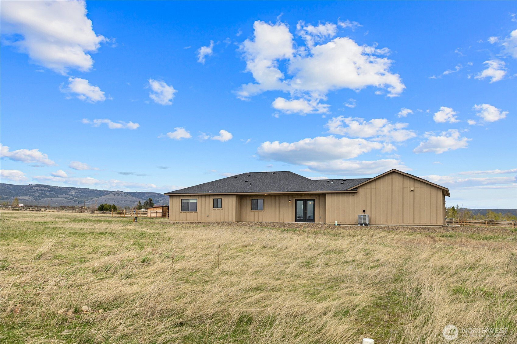 Discover this captivating, move-in ready horse property built in 2023, nestled on 3 serene acres in a peaceful East County setting, surrounded by sweeping views and natural beauty. This 1,860 sq. ft. Lexar home features 3 bedrooms and 2.5 baths, with a light-filled open-concept layout, quartz countertops, soft-close cabinetry, and stylish laminate wood and tile flooring throughout. French doors open to inviting covered front and back patios—perfect for soaking in quiet mornings, golden sunsets, and the tranquil landscape that surrounds you. Thoughtful upgrades like custom top-down/bottom-up blinds, an auto-light front porch, and a dining space with a warm dawn-to-dusk dimmer add comfort and charm. Built for both efficiency and lifestyle, the home includes forced-air HVAC and a two-car garage with solar panels. Outside, enjoy an enclosed space for horses or other animals (close to an acre) with a 5-foot, four-rail custom fence, a Palouse Ranch metal-framed shed, and drip irrigation for nine beautiful birch trees. A strong 300-ft well (12 GPM) provides reliable water for home and livestock, complemented by two frost-free spigots. The extensive High Country French drain system ensures excellent drainage, while the septic system is designed for up to a 5-bedroom home—offering room to grow. Where modern living meets wide-open space, scenic vistas, and peaceful surroundings, this property is ready to welcome your animals, your dreams, and your next adventure.
