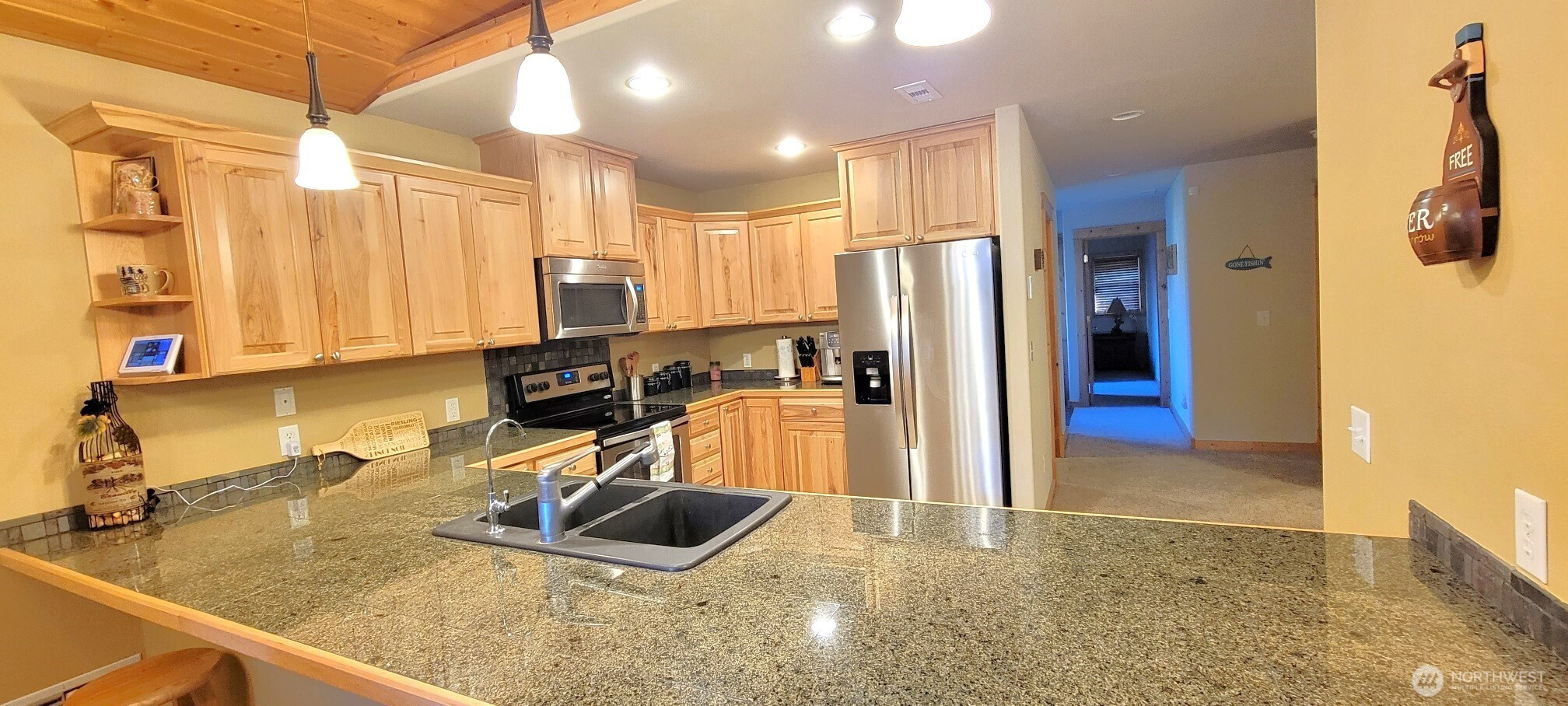 Discover this well maintained 3bedroom + 2 bath home with beautiful finishes and large attached 3 car garage with drive thru for snowmobiles. Distinct features include solid wood doors & millwork, hickory cabinets, stone fireplace, soaring ceilings, Central A/C, radiant heat floors, large master bedroom w/door to sunroom & two walk-in closets and master bath with jetted tub. Great opportunity to own your sanctuary in the woods, go fishing, hiking, situated on wooded 11.64 acres with 282' of Yakima River frontage. Home offers easy year-round access convenient location to I-90, just 20 minutes to Snoqualmie slopes and about 1 hour from Seattle.