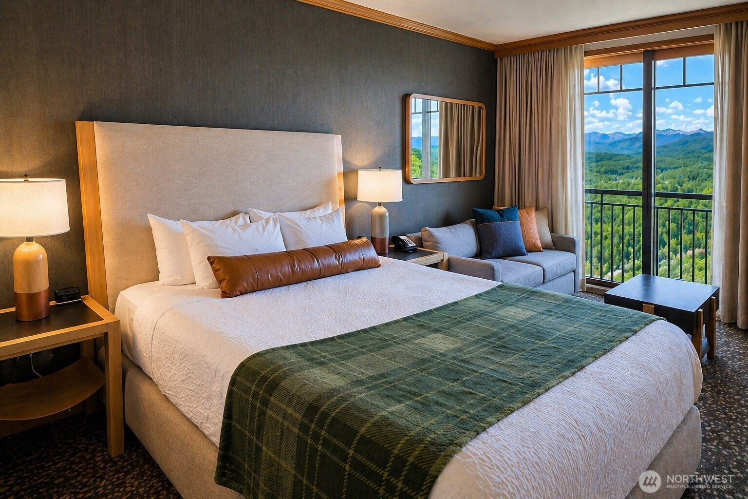 Life doesn’t get easier—or more connected—than the Lodge Condos at Suncadia Lodge. This turnkey, fully furnished studio offers dramatic Cascade sunset views and a true lock-and-leave lifestyle in the heart of Suncadia. Step outside to newly expanded dining, retail, and gathering spaces at Suncadia Social, or unwind at the newly renovated Glade Spring Spa—all just moments from your door. Enjoy the ease of in-room dining, coffee shop, bar, and restaurant within the Lodge, paired with valet, concierge, and front-desk service. Owners and guests have access to the Lodge pool and hot tub, plus miles of trailheads leading to the Cle Elum River and the 1,200-acre river conservancy—perfect for morning walks, biking, or sunset strolls. The studio features a natural gas fireplace, stocked kitchenette, and has recently been updated to Hyatt’s required standards (approx. $26,000 value). Currently enrolled in the Suncadia/Hyatt rental program, with owner discounts available at onsite restaurants and retail. Whether you’re here to relax, recharge, or stay active, this is a simple and stylish home base for everything Suncadia and Eastern Washington have to offer. Dip your toes into the Suncadia lifestyle and discover why this sunny-side-of-the-Cascades resort community continues to draw so much buzz.