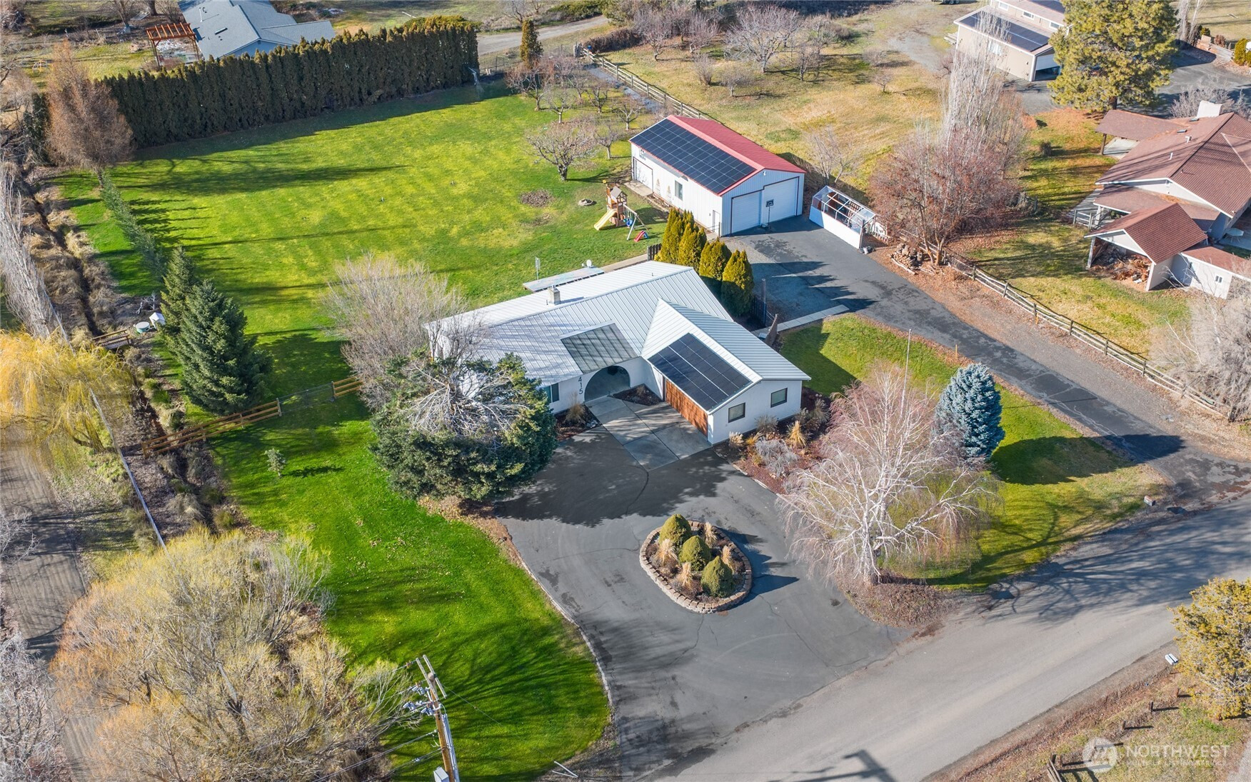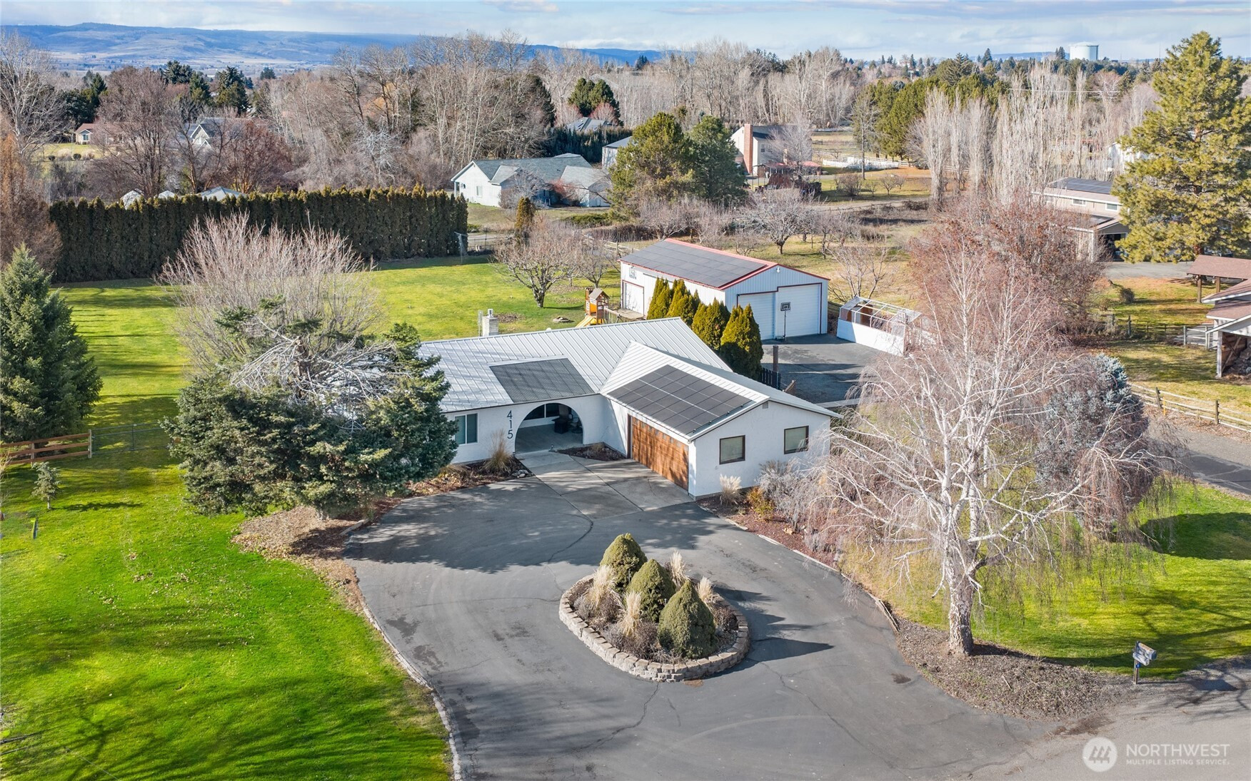 Located in the highly sought-after Grasslands neighborhood, this 1,592 sq ft rambler offers 3 bedrooms, 1.75 baths, and sits on a spacious 1.38-acre lot just minutes from town. The home features a vaulted living room with wood-covered ceiling and cozy fireplace, plus an updated kitchen with quartz countertops and an attached 2-car garage. A standout 28’x44’ shop with three roll-up doors and a loft adds incredible versatility. Outside, enjoy a fully fenced backyard, in-ground sprinklers throughout, fruit trees, two paved driveways, and a concrete covered patio. Newer solar panels add efficiency and long-term value!
