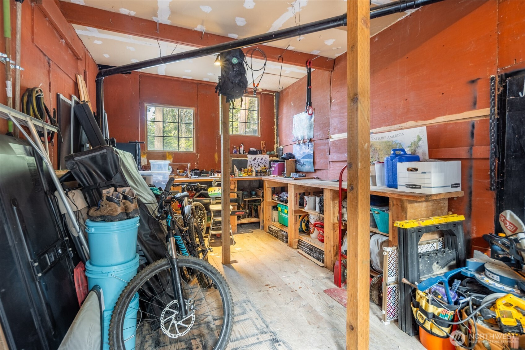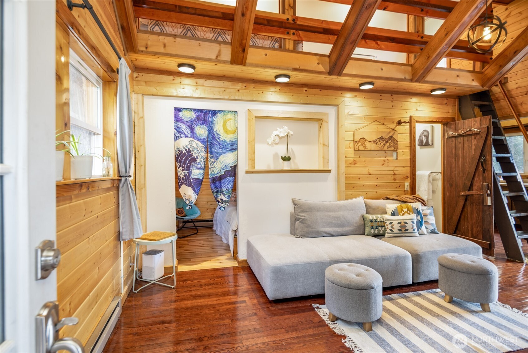 Sky Meadows Cabin! Discover the perfect blend of comfort, adventure and relaxation in this 1.68-acre getaway. Featuring a main cabin with one bedroom and loft, plus two additional sleeping cabins, this property offers both space and charm. Two spacious decks invite outdoor living. The hardwood floors throughout add warmth while the functional design ensures comfort and practicality. Partially finished basement allows room for storage/expansion. Bordering the 100,000-acre L.T. Murray Wildlife Recreation Area, enjoy miles of scenic trails for motorized and non-motorized recreation. The community pool and clubhouse are conveniently located within walking distance. Updates include new roof, plumbing, flooring, exterior paint and Firewising.