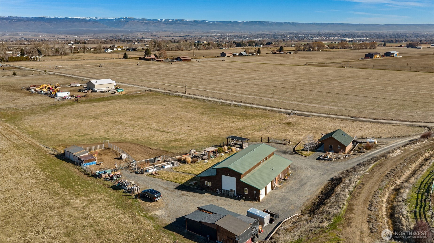 You won't want to leave the setting of this custom owner-built home on 4.73 irrigated acres with stunning valley & mountain views in a desirable west side location. The 4 bedrooms/3 bath home offers 2,570 sq ft with a primary & 2nd bedroom on the main floor for convenient living. Wood accent walls & T&G ceilings, & a rock-surround fireplace adorn the main living areas creating a feel of the NW country. Durable tile and vinyl plank flooring throughout provide both style and easy maintenance. The 2nd level reveals a bonus room, 2 large bedrooms, & full bath. A very useful separate 560 sq ft fully-oufitted studio with a bathroom & laundry offers excellent potential for guests, rental income, home office, or creative space. The property is well suited for animals or hobby farming with pasture, outbuildings, and animal shelters. So if you want a place where you can pause & take in deep breath of that fresh country air while overlooking the open valley & surrounding hills, then welcome home! Enjoy the peaceful country living with room to spread out on this dead-end-road location, while still being close to town.
