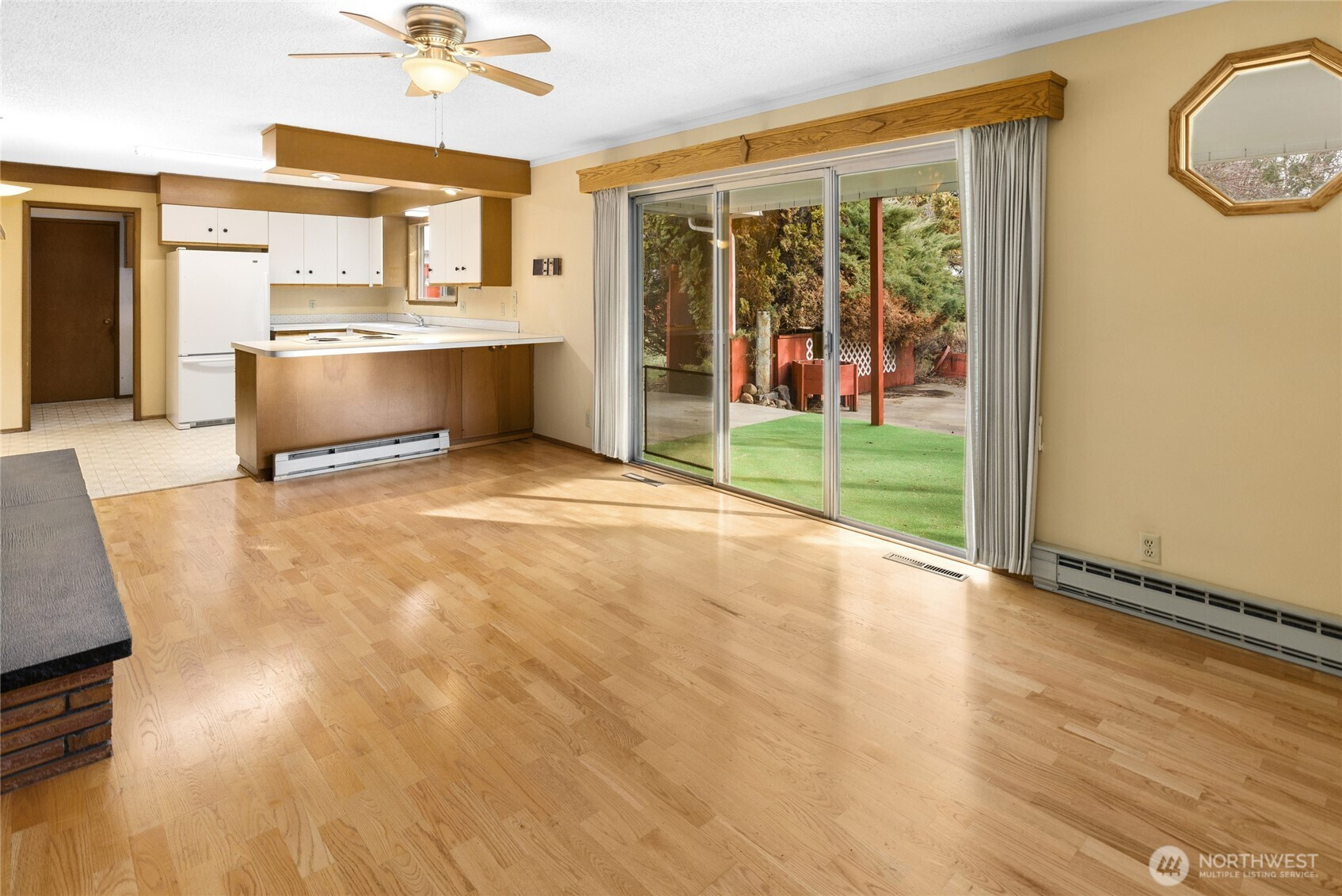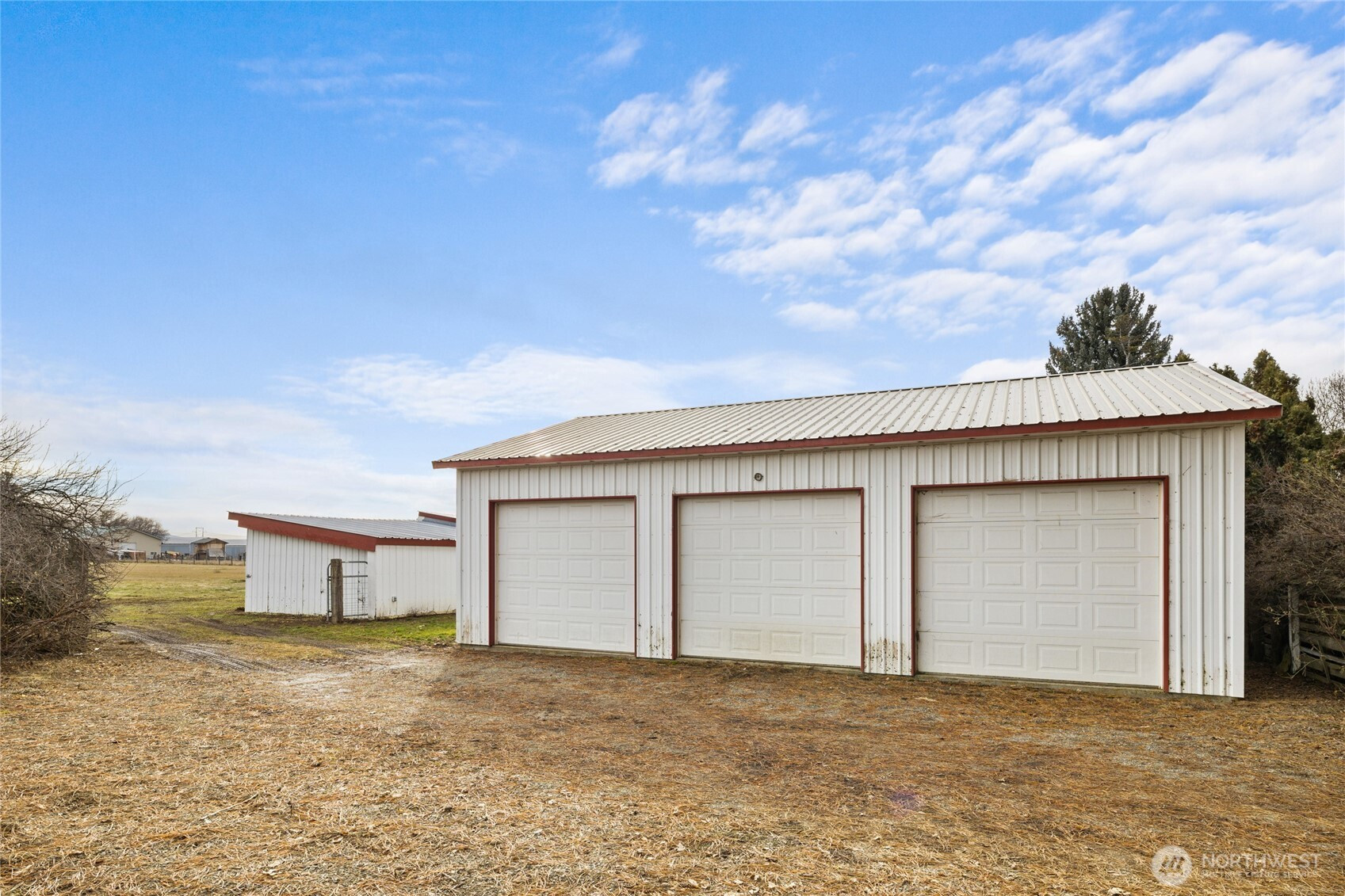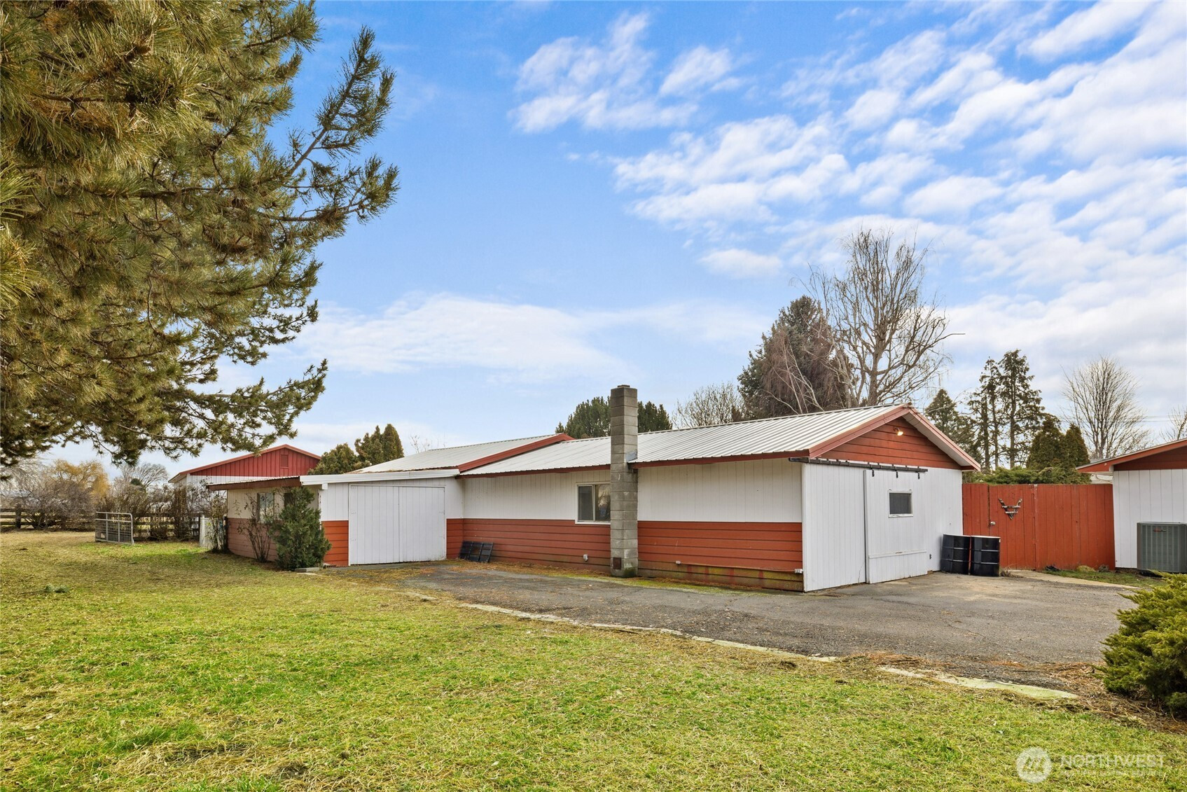 Opportunity to buy into a neighborhood where people move in and stay! This desirable country setting features small acreage properties-ideal for modern homesteading, animals, gardens, fruit trees, or simply enjoying privacy & open space! Situated on 3.4 irrigated acres with fenced fields, this 1,889 sq ft single-level home offers 3 bedrooms and 1.75 baths. Inside you’ll find two spacious living areas — each with a fireplace creating warm and inviting spaces year-round. Hardwood flooring highlights the dining room and great room, and a lovely patio just off the great room extends your living space outdoors. The primary bedroom includes a private ¾ bath, and all bedrooms are generously sized. A dedicated laundry room offers additional storage and connects to the attached garage, which includes a work/storage room housing the mechanical systems. Newer HVAC for heat and cooling throughout the home. Well pump new in 2025. Outbuildings add tremendous value and flexibility: Heated workshop/garage with multiple spaces that has extra storage with garage door access. Newer 28x36 garage/shop with concrete floor and electricity. Fenced field with a shelter barn that's perfect for a horse, cows & 4H animals. Garden areas, fruit trees, sprinkler system! Mature landscaping, minutes from town, and easy freeway access complete this rare small acreage opportunity!