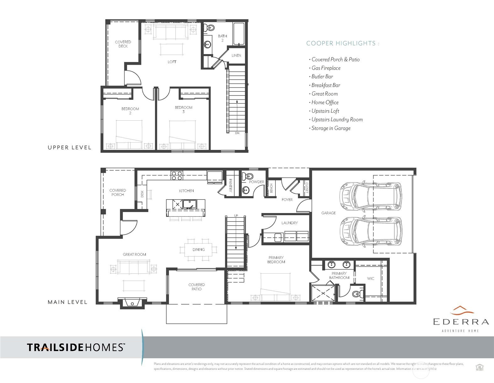 Featuring The Cooper by Trailside Homes, Lot 23 in Ederra offers a sought-after main-floor primary suite and refined contemporary design. This 3-bedroom plus loft home showcases an open-concept layout with abundant natural light, a covered patio, upper-level deck, and a generous garage with room for gear and storage. The front of the home fronts permanent open space with paved trails just steps away, creating a rare sense of privacy and connection to nature. Thoughtfully curated finishes, modern detailing, and effortless indoor-outdoor living elevate the experience. Enjoy access to over 200 acres of open space, trail networks, and the Coal Trax Bike Park—all in sunny Cle Elum, just 90 minutes from Seattle.
