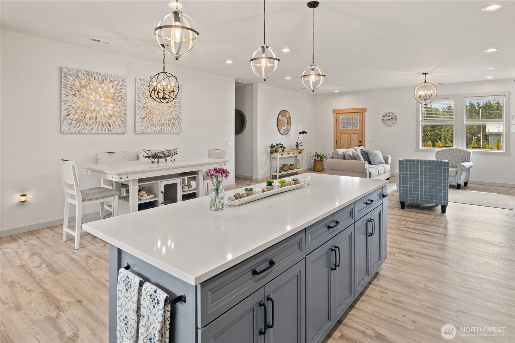 Set in the heart of the Lake Cle Elum recreation corridor, this custom-built home in Pineloch Sun III offers a refined take on mountain living with access to a private beach club, swimming pool, pickleball courts, and Lake Cle Elum just moments away. With 2 bedrooms plus an office/den and 1,795 sq ft, the home sits on a generous 1/3-acre lot, blending comfort, quality, and effortless access to the outdoors. Built by a custom home builder, the efficient layout is both functional and elevated, featuring LVP flooring throughout and a warm living room centered around a fireplace. The kitchen is designed for gathering, with quartz countertops, stainless applainces, subway tile, and a dedicated coffee/wine bar for a touch of everyday luxury.The primary suite is a peaceful retreat, highlighted by a designer board-and-batten accent wall. Outdoor living stands out with three separate seating areas for dining, entertaining, and relaxing, including a covered media space. A custom concrete patio, expansive cedar privacy fencing, and a landscaped yard with sprinkler system and solar lighting create a polished, low-maintenance setting. Additional features include a whole-house water filtration system and recirculating pump for near-instant hot water. Whether a full-time residence or weekend escape, this is where lifestyle and location come together.