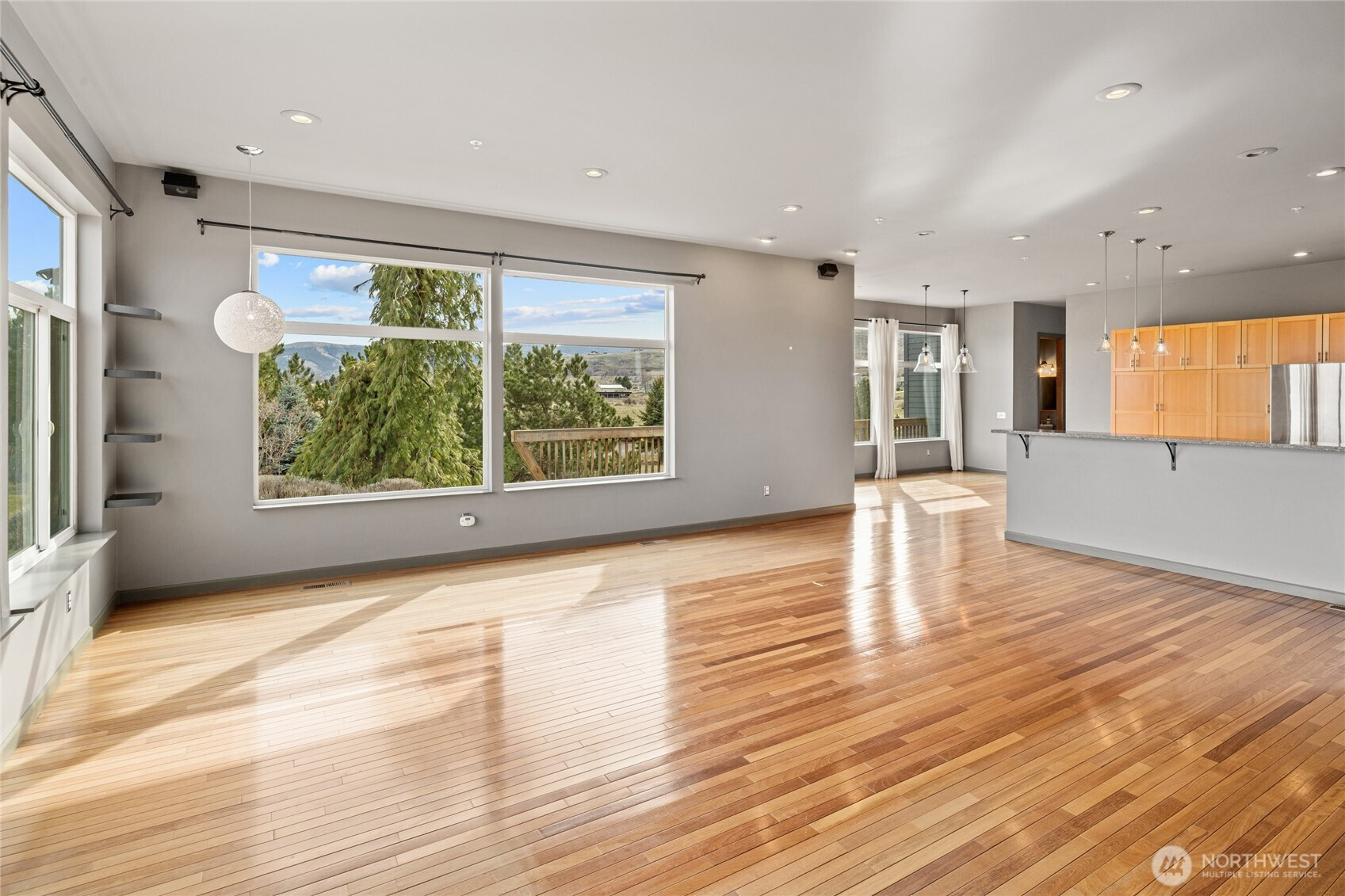 This 3-bedroom, 2.5-bath home showcases dramatic mountain and valley views through expansive picture windows that frame the landscape like living art. Warm Brazilian cherry hardwood floors flow throughout the open-concept design, creating a welcoming and refined atmosphere. The spacious kitchen is designed for both function and style, featuring abundant cabinetry, a gas cooktop, and beautiful solid-surface countertops. The generous primary suite is a true retreat, offering breathtaking views, a spa-inspired bath with tiled shower and soaking tub, and a large walk-in closet. With 2,707 square feet of living space, the home also includes a versatile family/media room, a wind-protected deck perfect for outdoor enjoyment, and a 2-car attached garage. An interior fire suppression system adds peace of mind. Situated on a private 3.5-acre parcel with mature landscaping, underground sprinklers, and slate stone walkways, this property offers space and flexibility for recreational vehicles, animals, or a future shop or outbuilding. Enjoy peaceful country living just a short drive to Ellensburg and minutes from I-90 for convenient commuting.