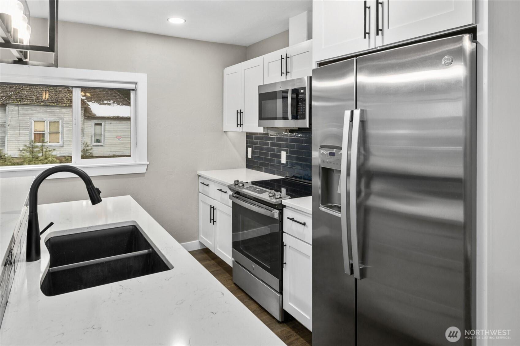 Beautifully remodeled 3-bedroom, 2.5-bath home with a bonus room, ideally located near the City Park and Coal Mine Trail in Cle Elum. Thoughtfully updated in 2024, this light-filled home features new wiring, plumbing, heating, and insulation, offering modern comfort and peace of mind. The open main level is filled with natural light and showcases stainless steel appliances, quartz countertops throughout, and an island with an eating bar—perfect for everyday living and entertaining. The primary suite is conveniently located on the main level, while two cozy bedrooms and a 3/4 bath are tucked away on the basement level, providing privacy and flexibility. Step outside to a small, fenced backyard ideal for pets or relaxing outdoors. A perfect blend of modern upgrades, functional layout, and an unbeatable location close to trails and town amenities.