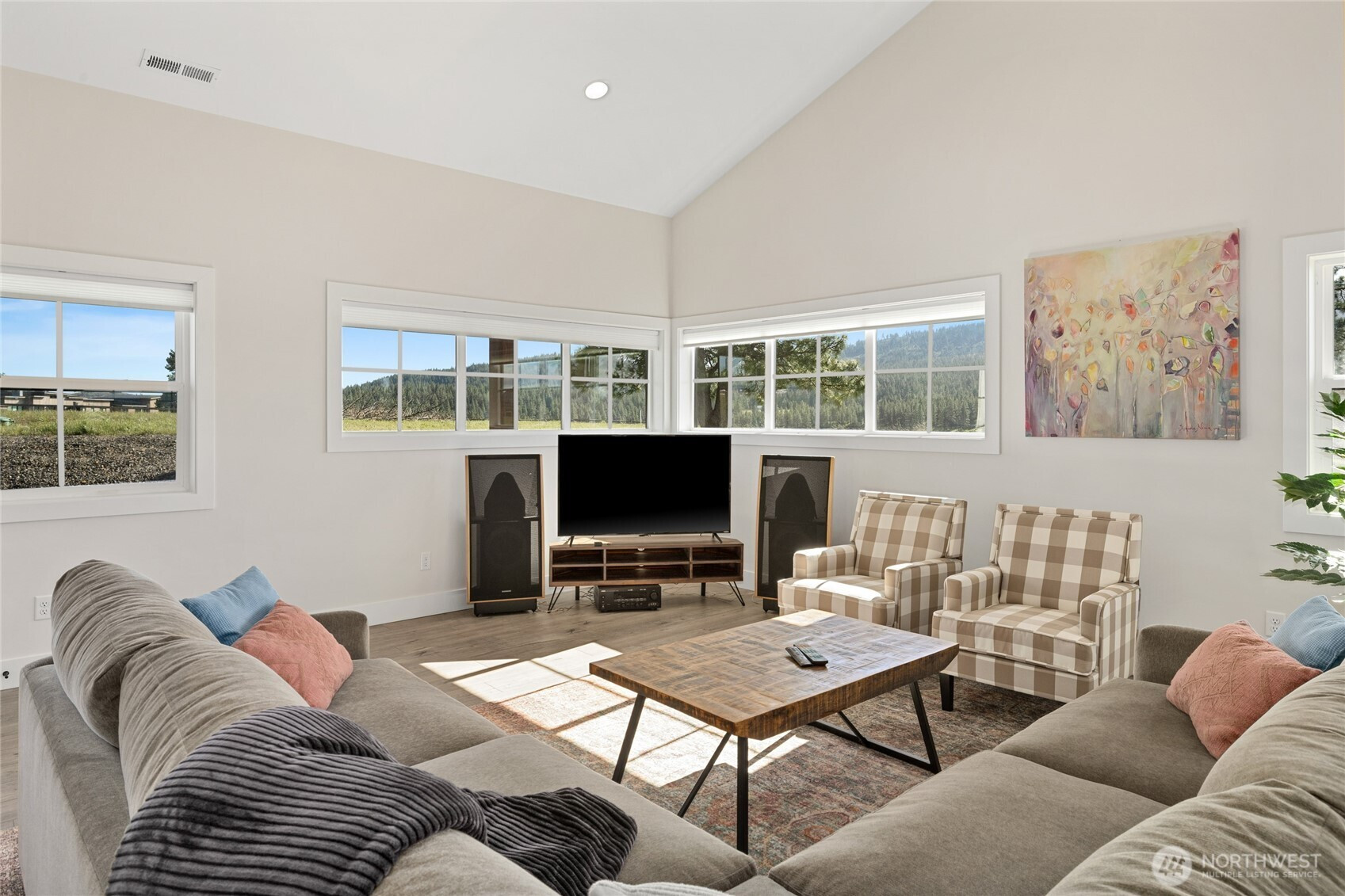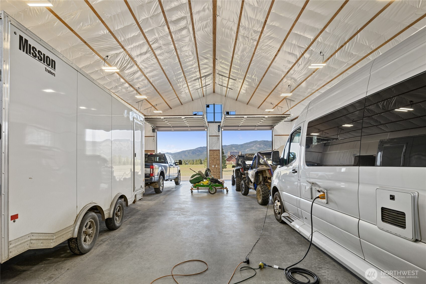 Built for Your Passions in desirable Kittitas County! This exceptional 3-acre Hidden Valley property offers the perfect blend of comfort, space & functionality—ideal for full-time living, a recreational retreat, or a basecamp near Ellensburg and Cle Elum.Enjoy single-level living in this 1,760 sq ft, 2 bed, 1.5 bath home featuring an open floor plan, vaulted ceilings & expansive picture windows capturing sweeping mountain, ridgeline & territorial views. The kitchen shines with quartz countertops, an oversized stainless-steel sink & like-new appliances. Low-maintenance luxury vinyl plank & tile flooring throughout. Sold furnished for turnkey convenience. Relax on covered front & back patios in a peaceful rural setting.The TRUE STANDOUT is the massive 4,752 sq ft insulated & heated shop—a rare find—featuring six 14x14 doors (two pull-through), a half bath, bright LED lighting with reflective white mylar & RV-ready power (50-amp, 30-amp & 120-volt). Room for at least 10 vehicles, RVs, boats, or all your toys. This is a rare find. Additional highlights include a 24KW propane whole-house backup generator with automatic transfer switch for uninterrupted power. A 5-bedroom septic system is already installed, offering flexibility to expand or build your dream home. An ideal basecamp for year-round recreation in Kittitas County with low-maintenance living—perfect for outdoor enthusiasts or serious collectors seeking space, power & versatility.