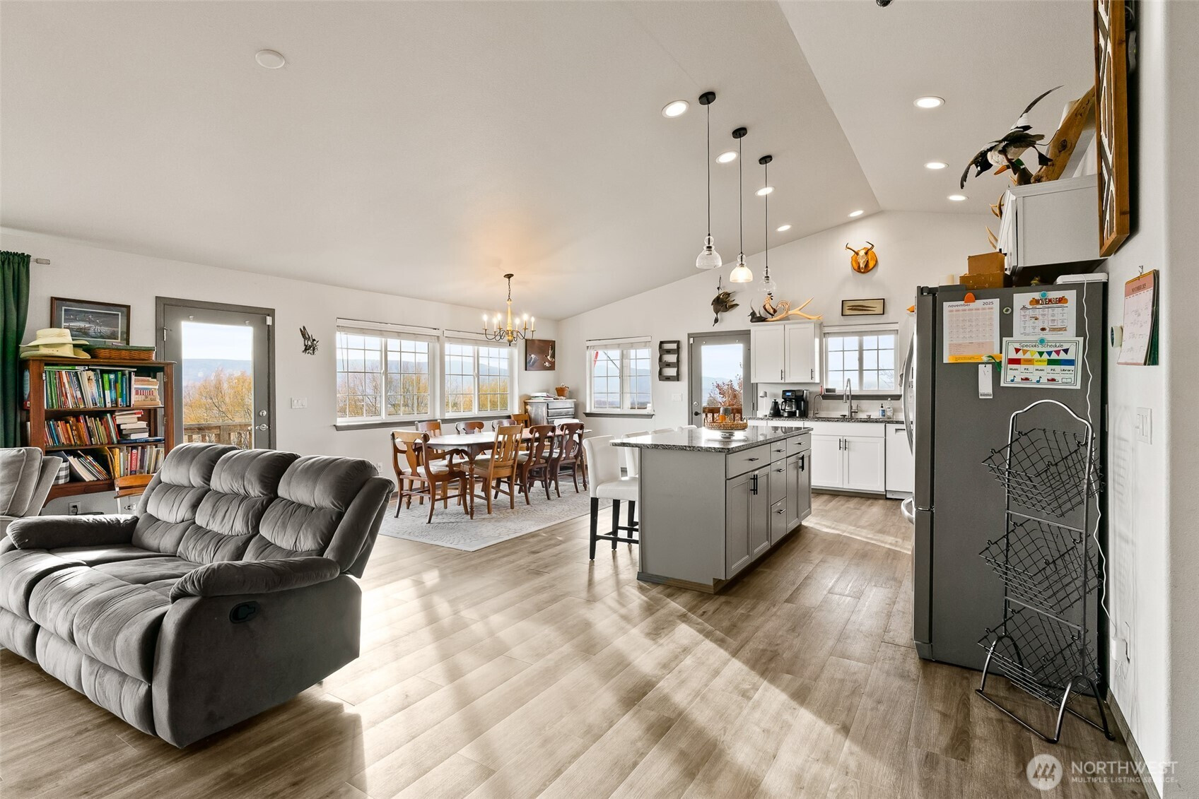 Beautifully updated 4,024 sqft hillside home on 6.43 acres with a valley views and Mt. Rainier! The main level features an open-concept layout with picture windows, vaulted ceilings, and a farmhouse-style kitchen with granite countertops, large island, walk-in pantry, and spacious dining area. The main-floor primary suite offers a private retreat with an en-suite bath and peaceful views. Downstairs includes a secondary living area and 5 en-suite bdrms. A separate 747 sqft, 2-bdrm ADU with full kitchen, 3/4 bath & laundry- provides great flexibility for rental income or multi-generational living. KRD irrigation, mature fruit trees, garden space, and fenced pastures complete this versatile property ready to be your next home or investment!