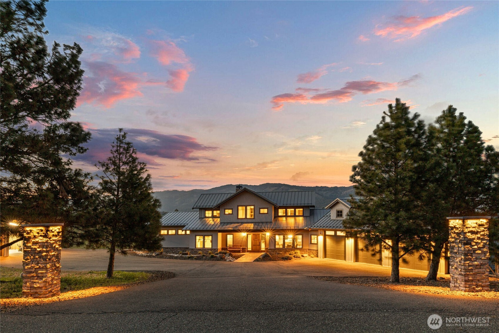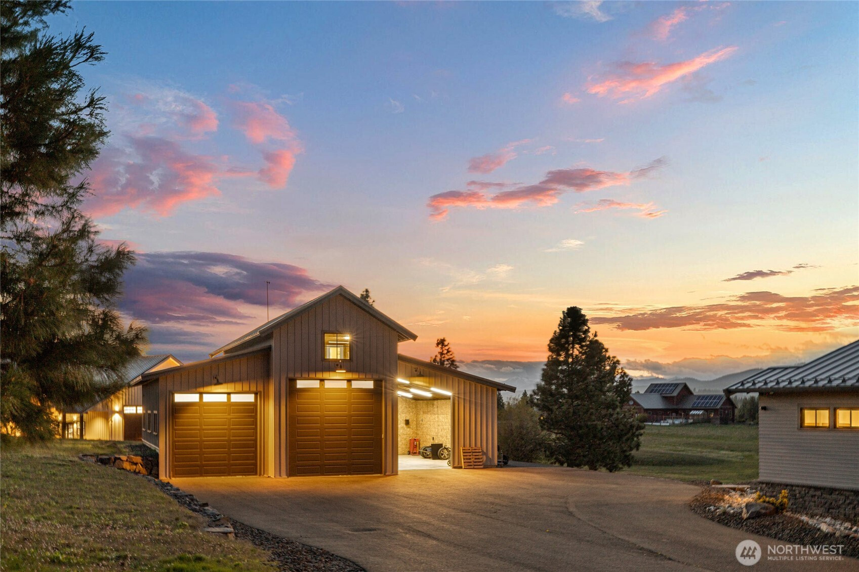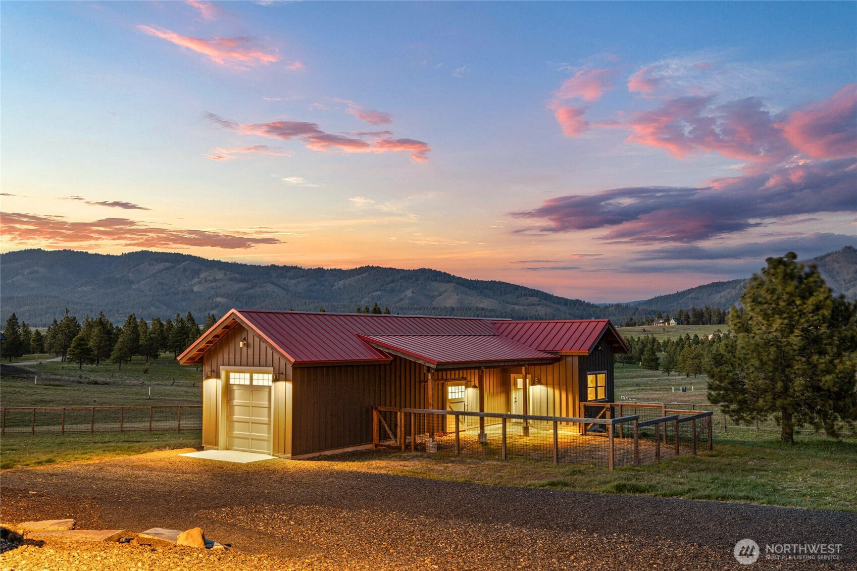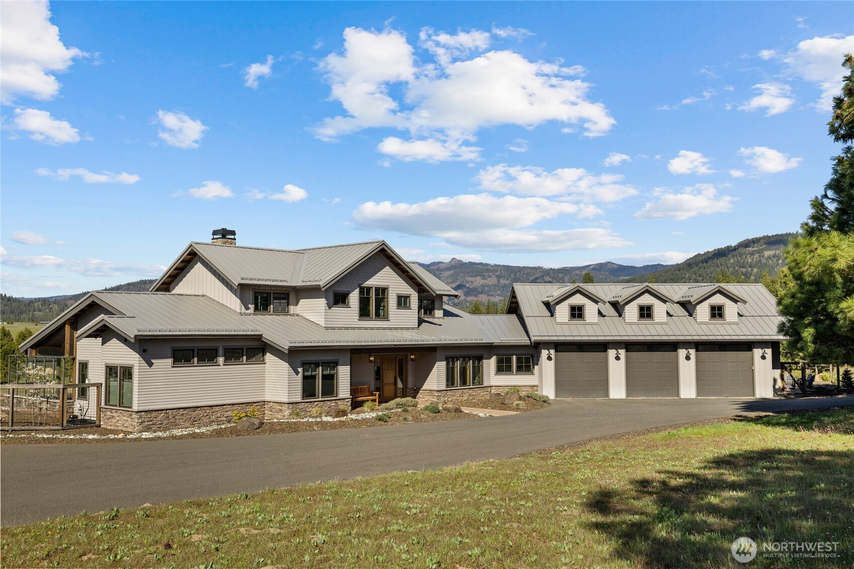 Experience upscale country living in this one-of-a-kind custom home on 6 scenic acres in desirable Hidden Valley, Kittitas County. Enjoy breathtaking mountain, ridge, and valley views from this light-filled home featuring soaring vaulted ceilings, gas fireplace, and French doors. The chef’s kitchen offers premium appliances, custom cabinetry, and quartzite countertops—perfect for entertaining. The inviting great room and dining area create an ideal gathering space. The main-level primary suite offers a spa-like retreat with heated floors, dual shower, soaking tub, and walk-in closet. A spacious second-level office provides excellent work-from-home privacy and flexibility. Two additional bedrooms and full bath accommodate guests with ease. Spacious laundry/mud room is conveniently located off the oversized 3-car garage. Additional features include Generac generator and reverse osmosis system. Thoughtfully designed for expansive indoor-outdoor living with a fully fenced backyard, multiple patios, hot tub, and beautiful views in every direction. Versatile “studio barn” includes sauna, radiant heat, mini split, ½ bath, space for artist/yoga or guests, plus small animal area and garage. Large 1,464 sq ft shop with RV hookups and bonus room completes this rare offering. Peaceful and sophisticated country living at its best - your slice of serenity awaits!