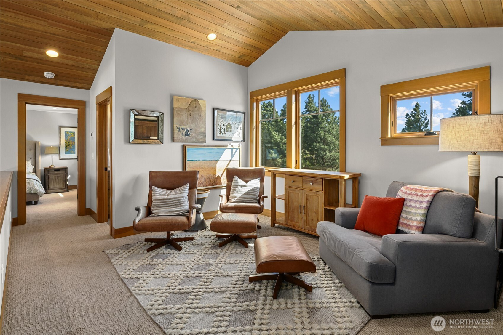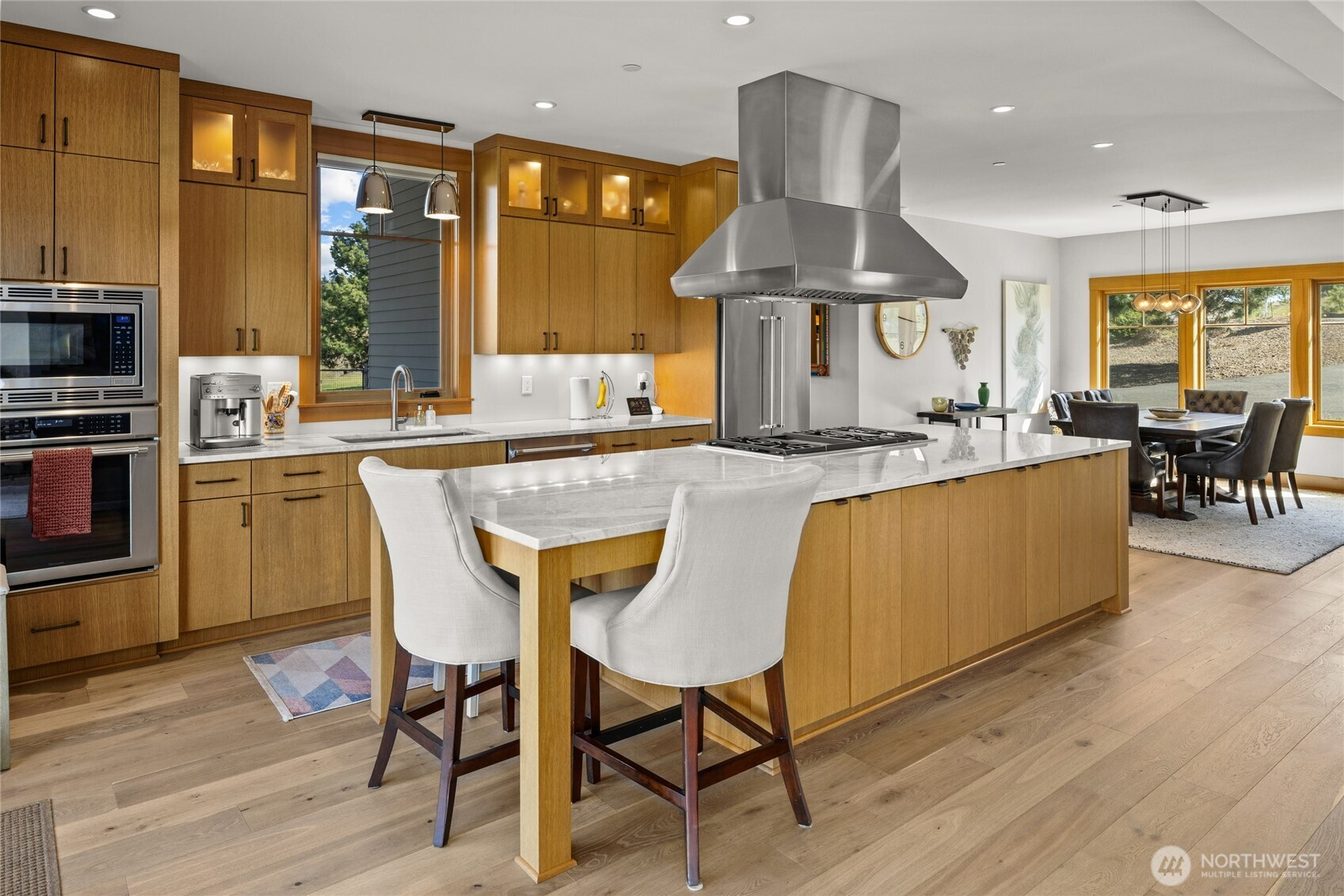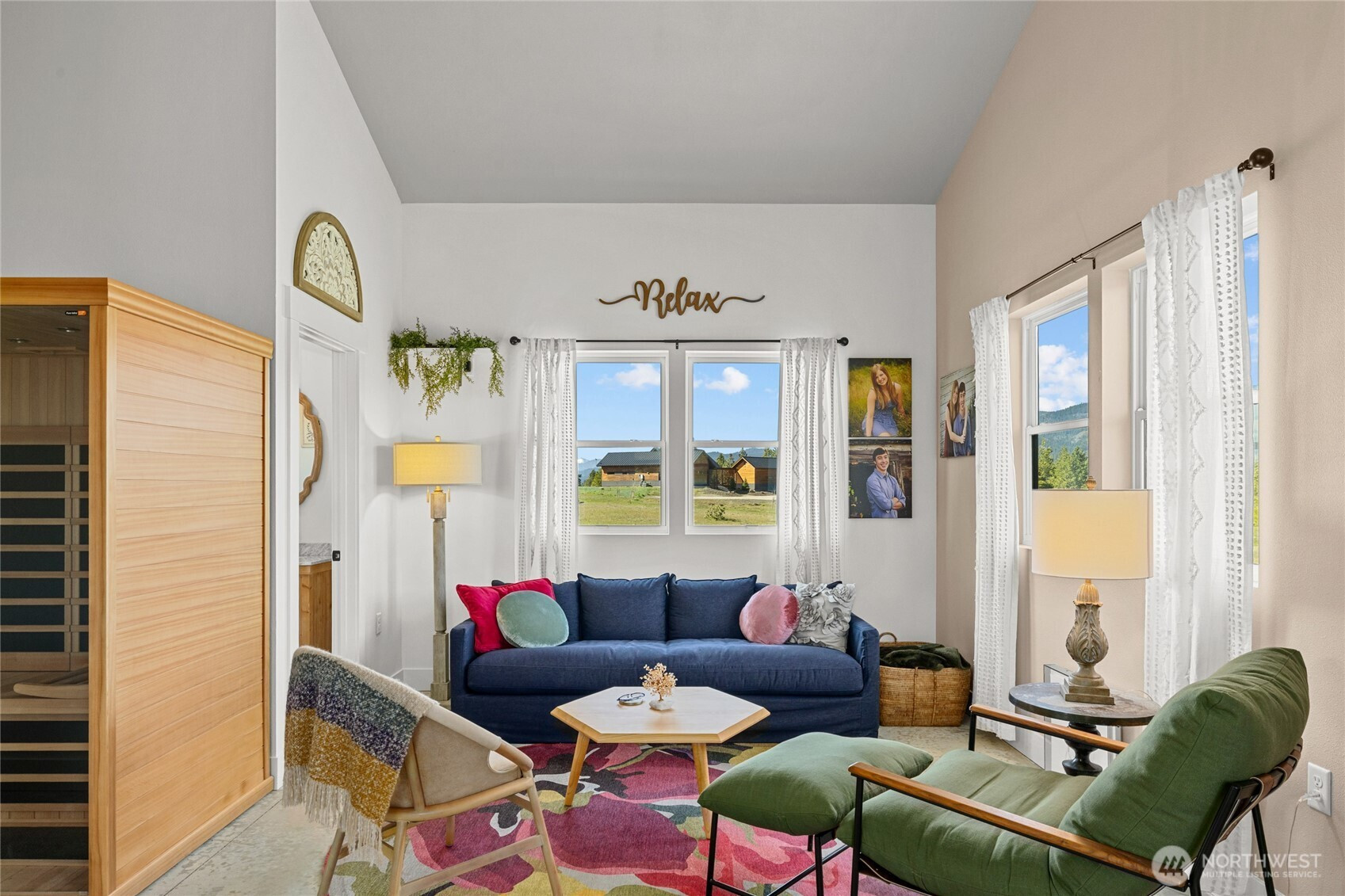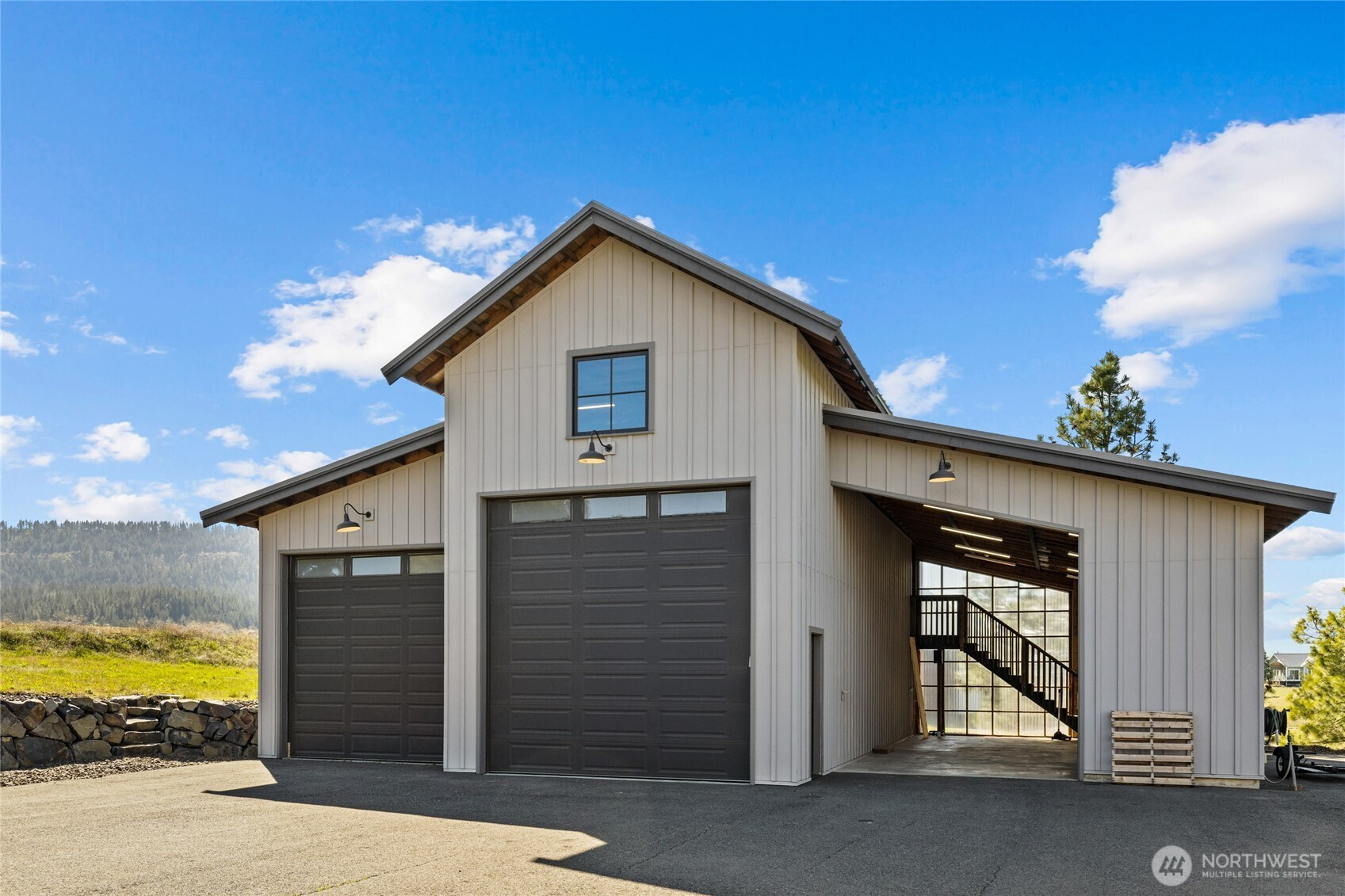 Experience upscale country living in this one-of-a-kind custom home on 6 scenic acres in desirable Hidden Valley, Kittitas County. Enjoy breathtaking mountain, ridge, and valley views from this light-filled home featuring soaring vaulted ceilings, gas fireplace, and French doors. The chef’s kitchen offers premium appliances, custom cabinetry, and quartzite countertops—perfect for entertaining. The inviting great room and dining area create an ideal gathering space. The main-level primary suite offers a spa-like retreat with heated floors, dual shower, soaking tub, and walk-in closet. A spacious second-level office provides excellent work-from-home privacy and flexibility. Two additional bedrooms and full bath accommodate guests with ease. Spacious laundry/mud room is conveniently located off the oversized 3-car garage. Additional features include Generac generator and reverse osmosis system. Thoughtfully designed for expansive indoor-outdoor living with a fully fenced backyard, multiple patios, hot tub, and beautiful views in every direction. Versatile “studio barn” includes sauna, radiant heat, mini split, ½ bath, space for artist/yoga or guests, plus small animal area and garage. Large 1,464 sq ft shop with RV hookups and bonus room completes this rare offering. Peaceful and sophisticated country living at its best - your slice of serenity awaits!